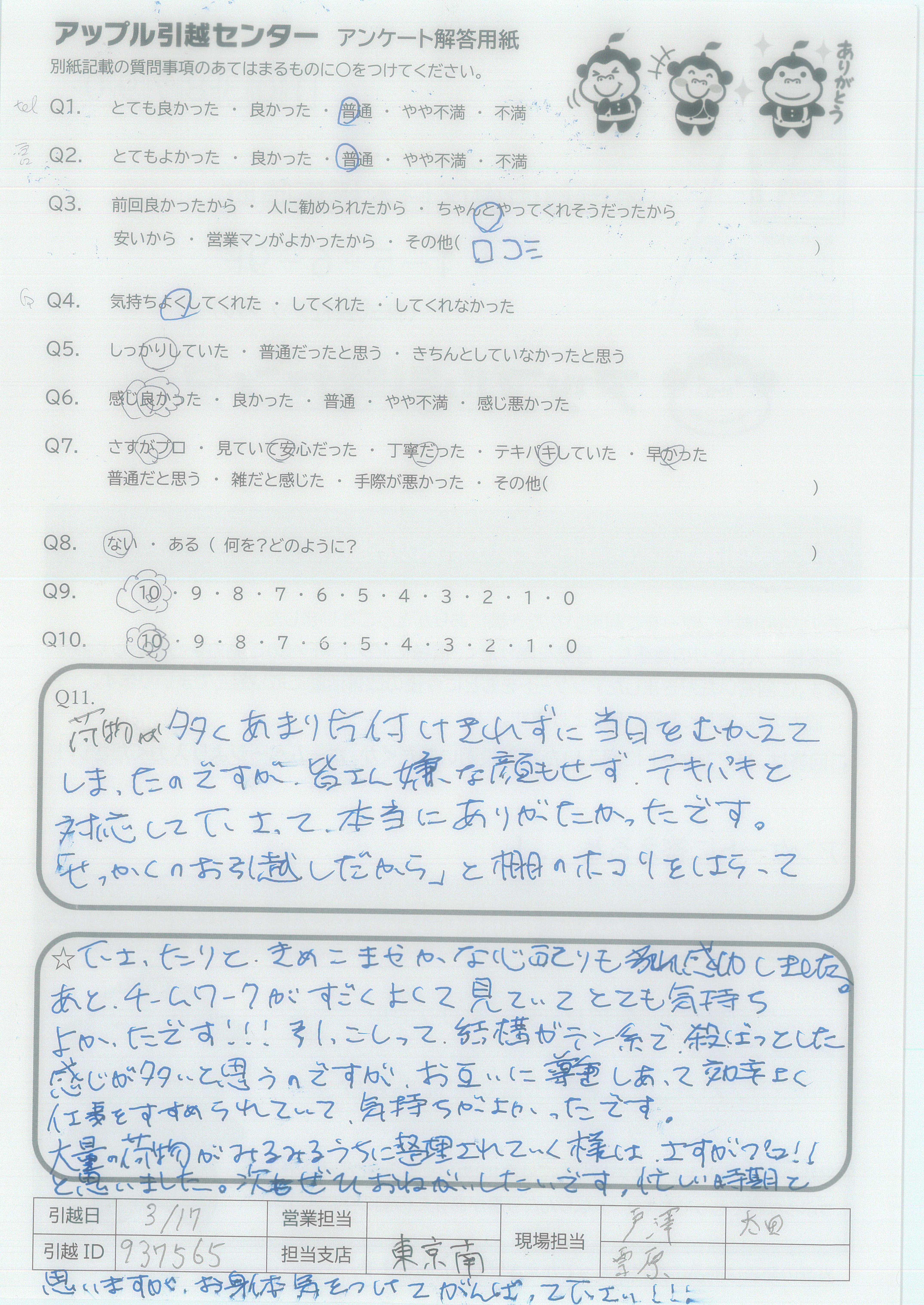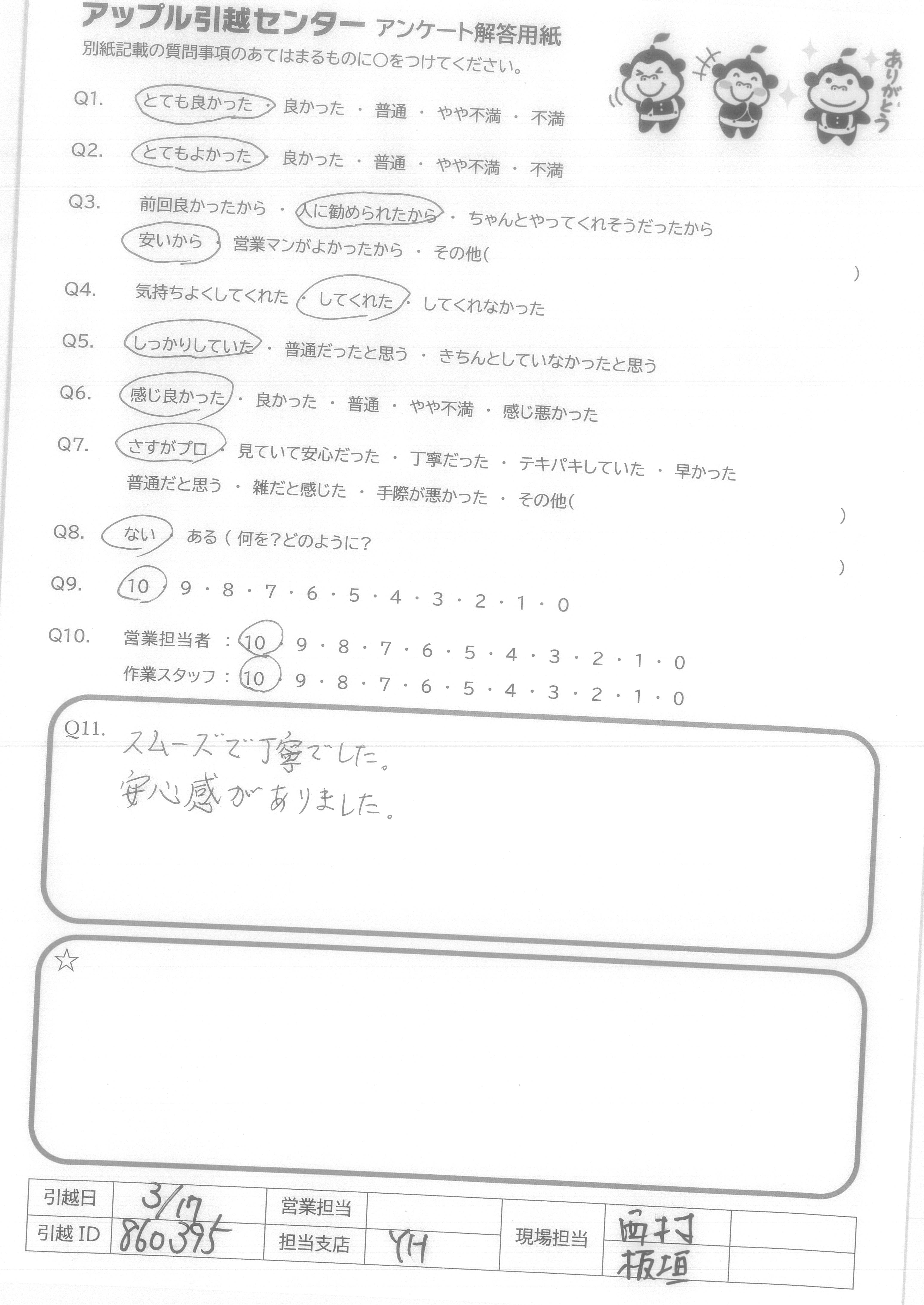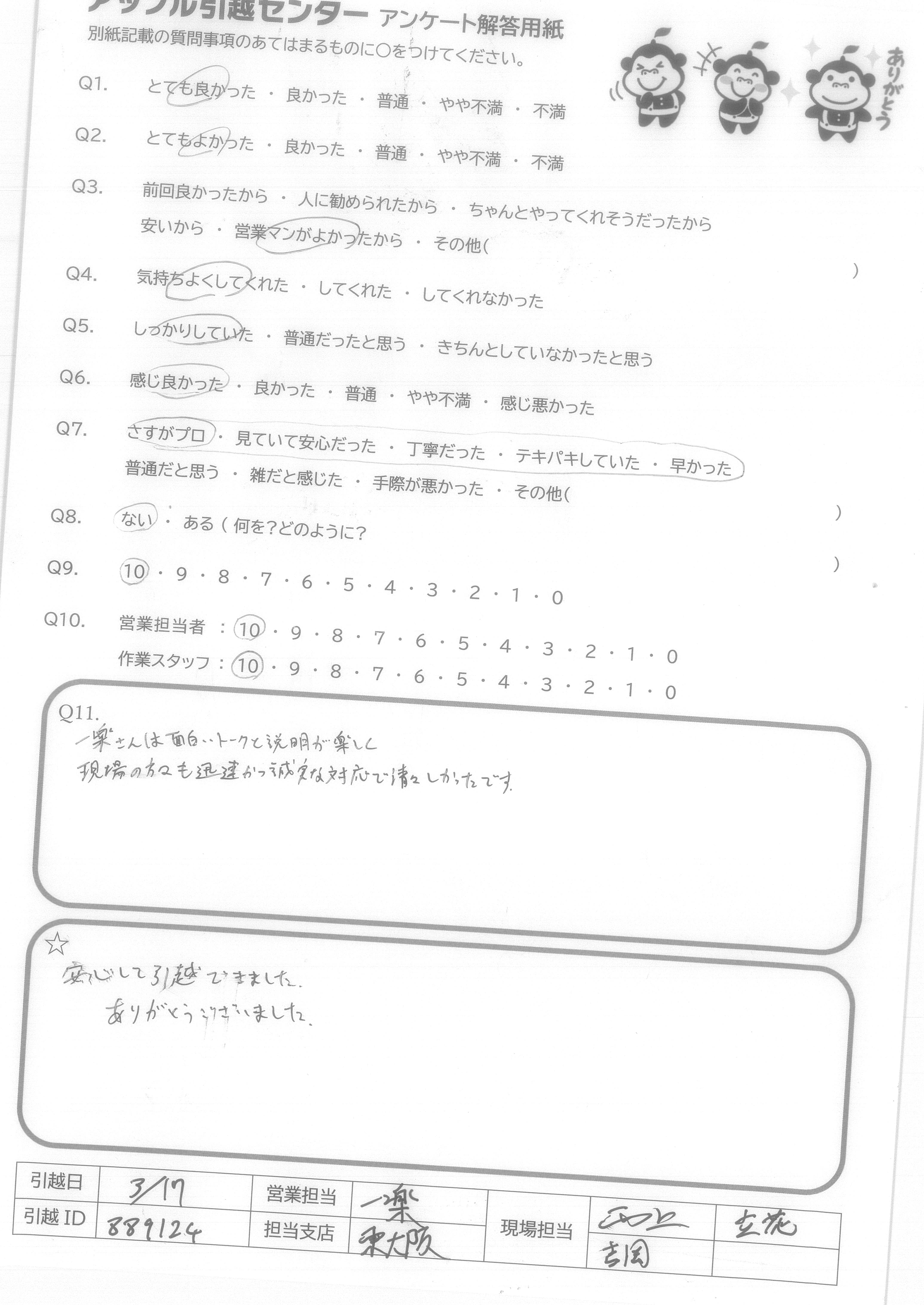 A.安心して引越できました。 ありがとうございました。