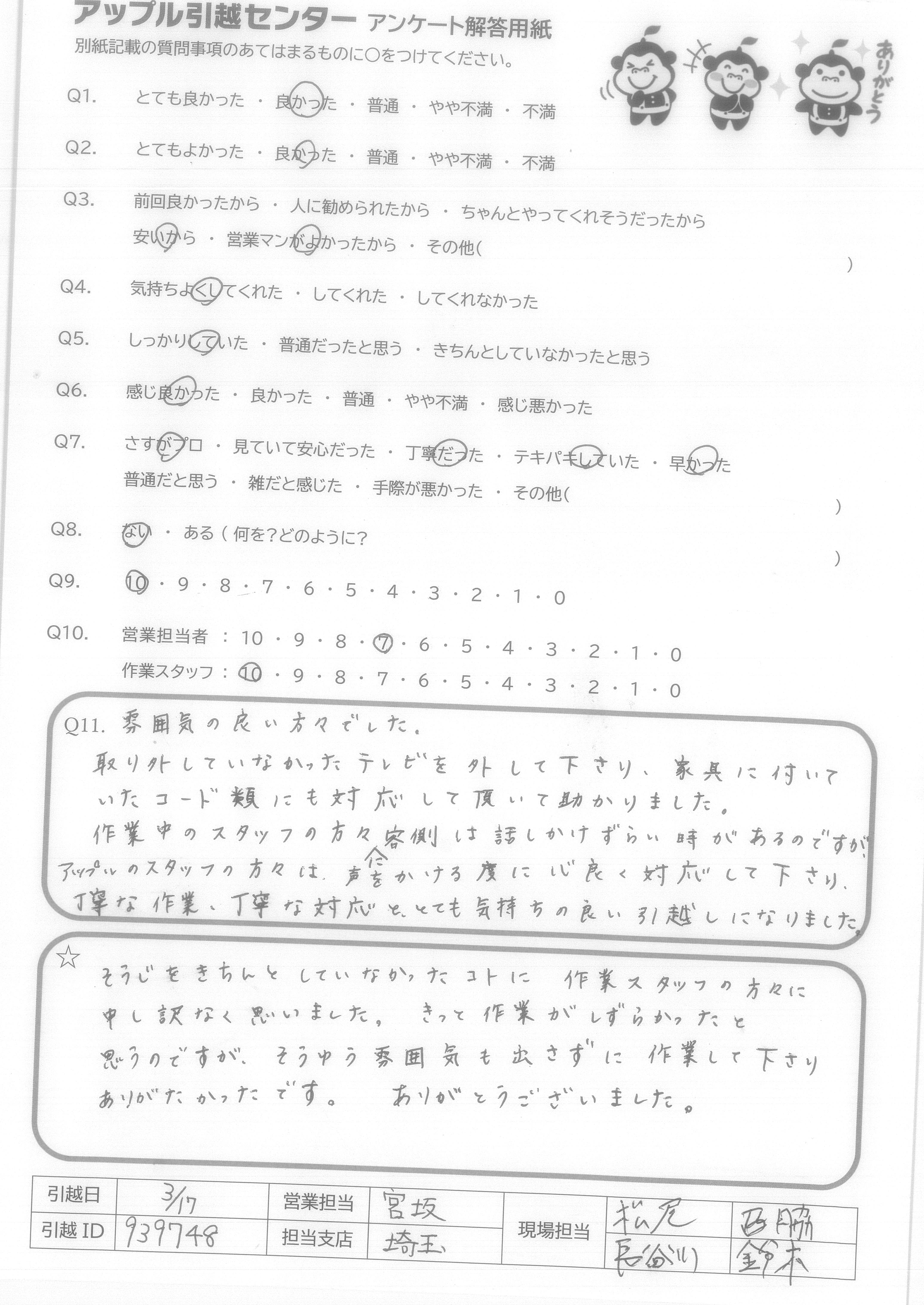 引越し日:2021年03月17日 エリア:埼玉県さいたま市浦和区
