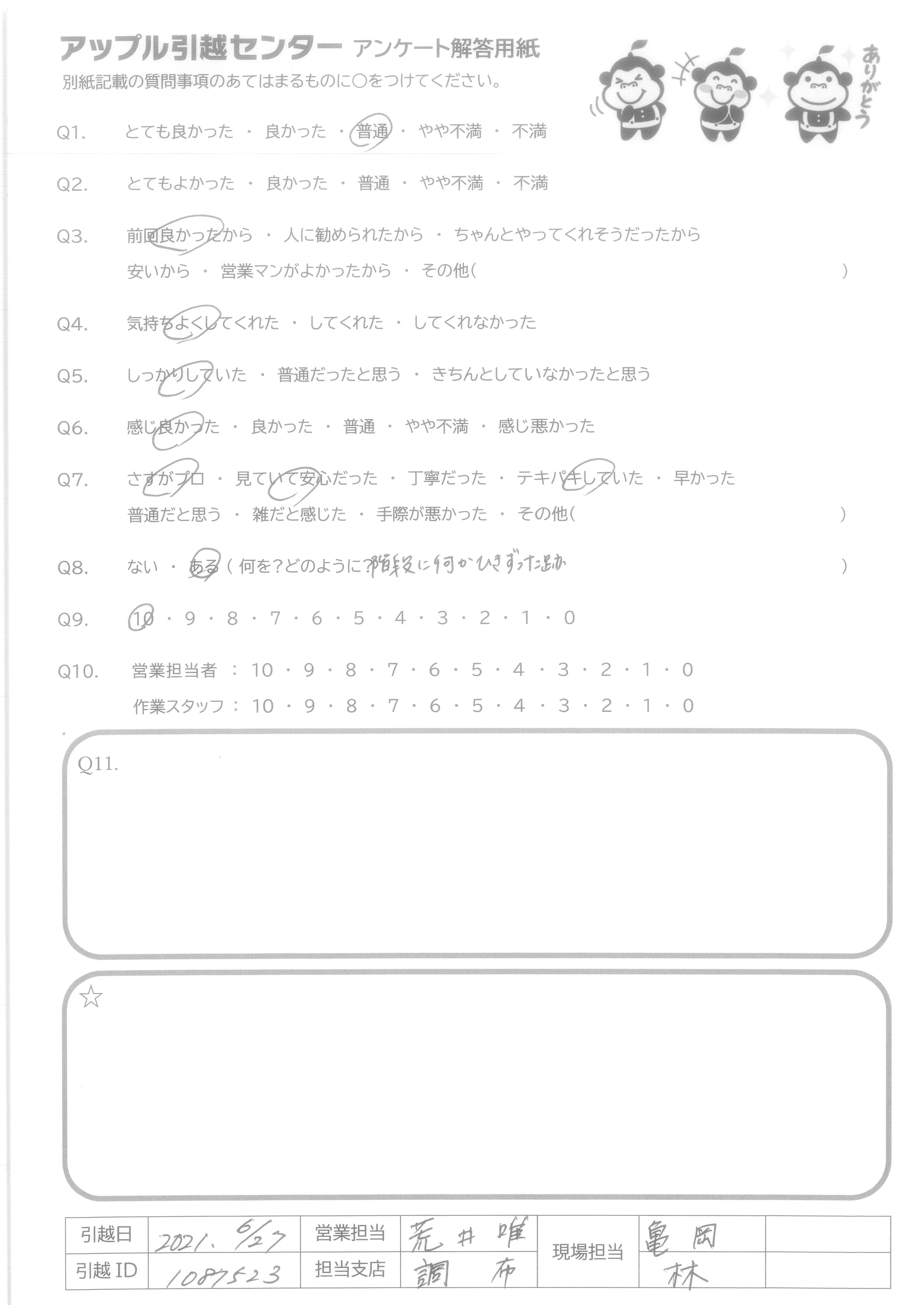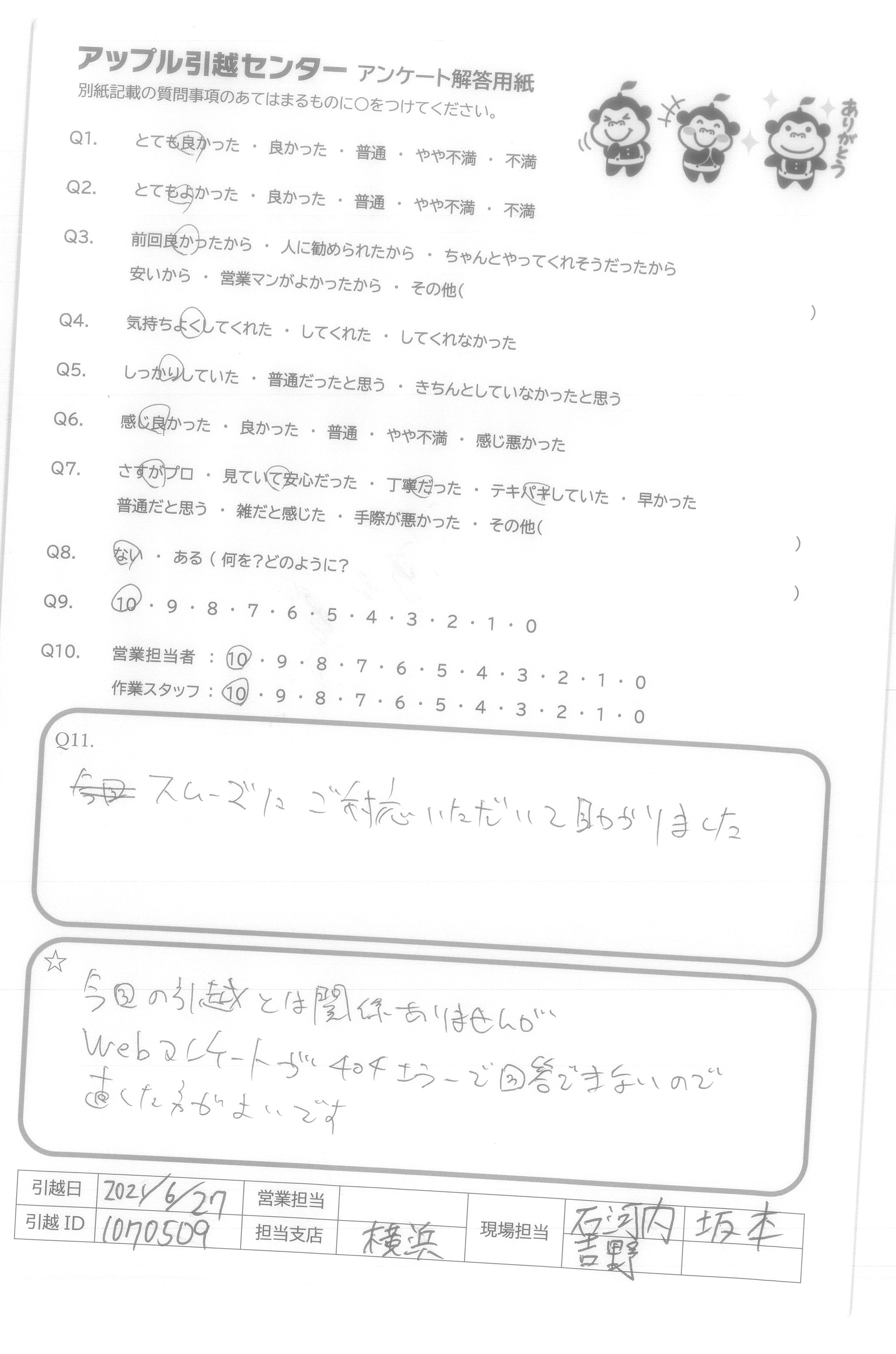 引越し日:2021年06月27日 エリア:神奈川県横浜市港北区