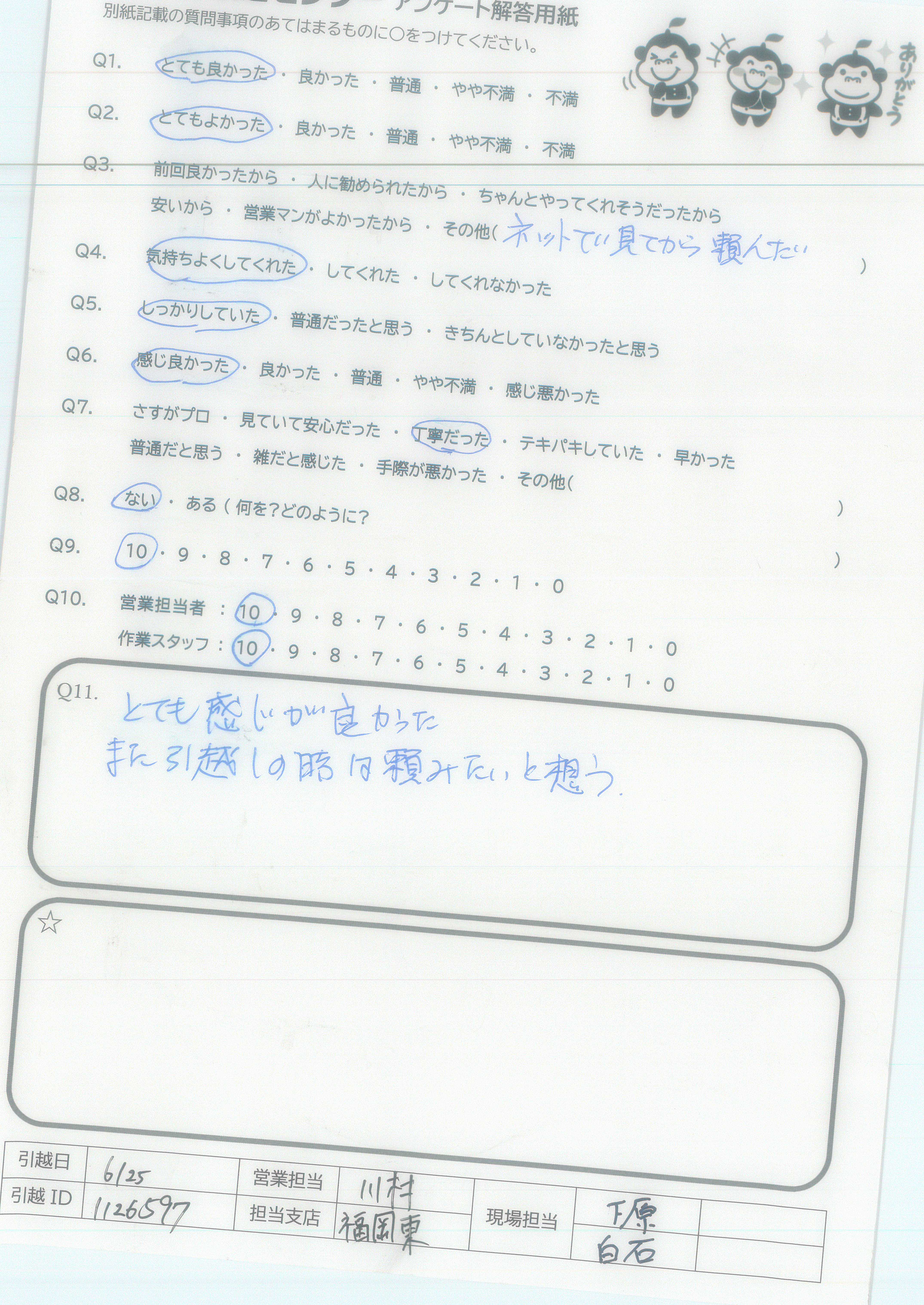 引越し日:2021年06月25日 エリア:福岡県福岡市早良区