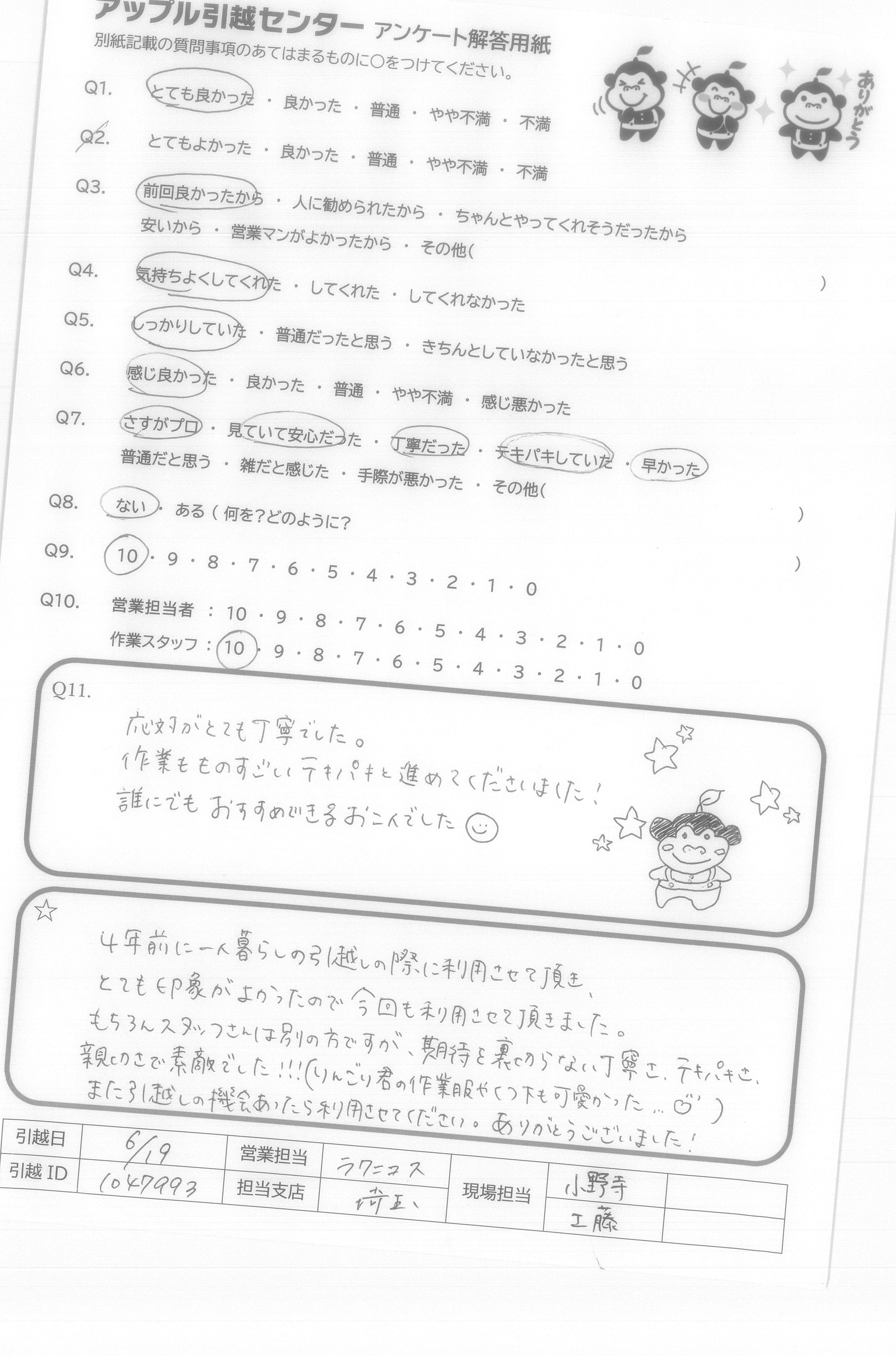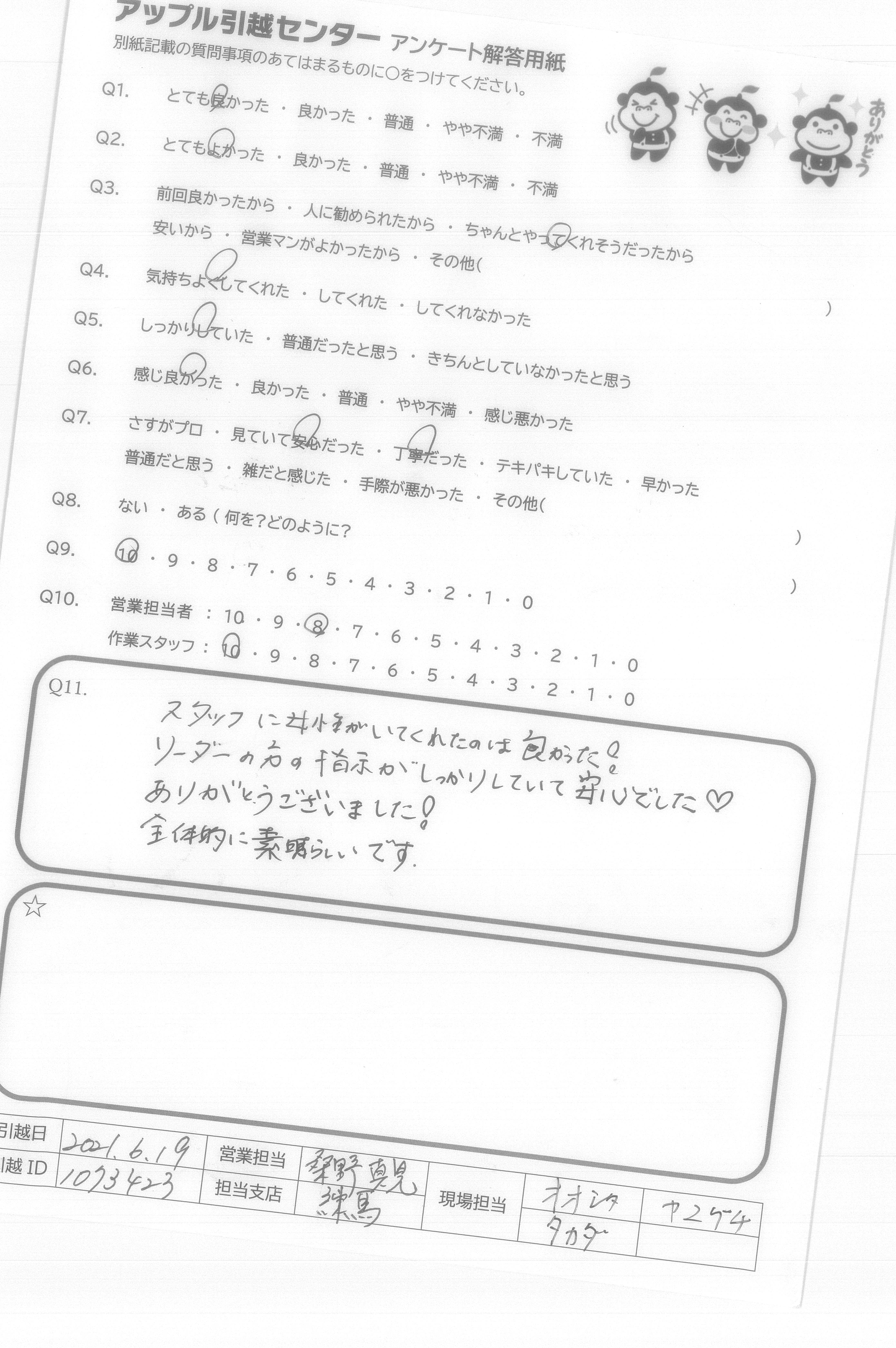 引越し日:2021年06月19日 エリア:神奈川県横浜市港北区