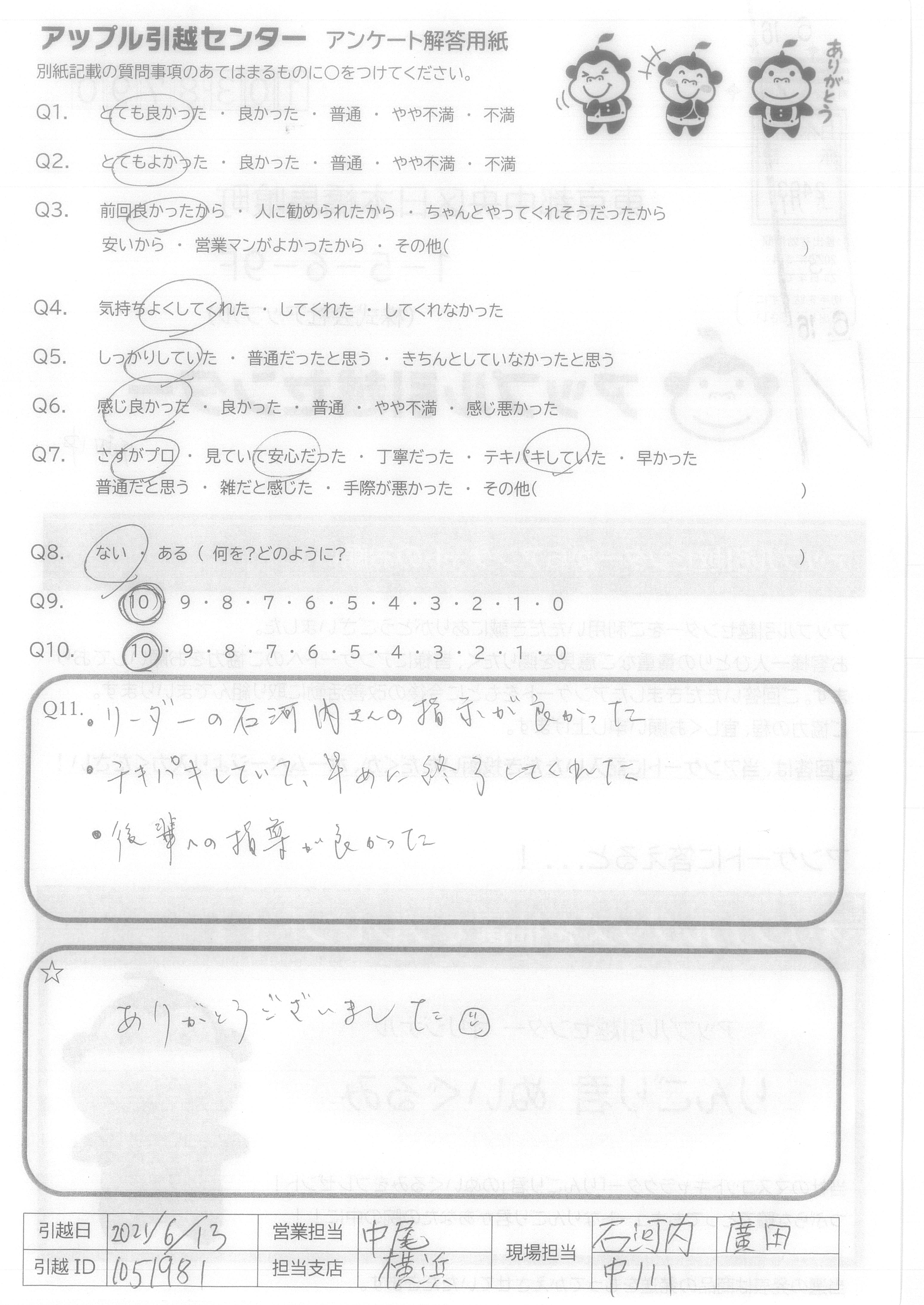 引越し日:2021年06月13日 エリア:神奈川県横浜市西区