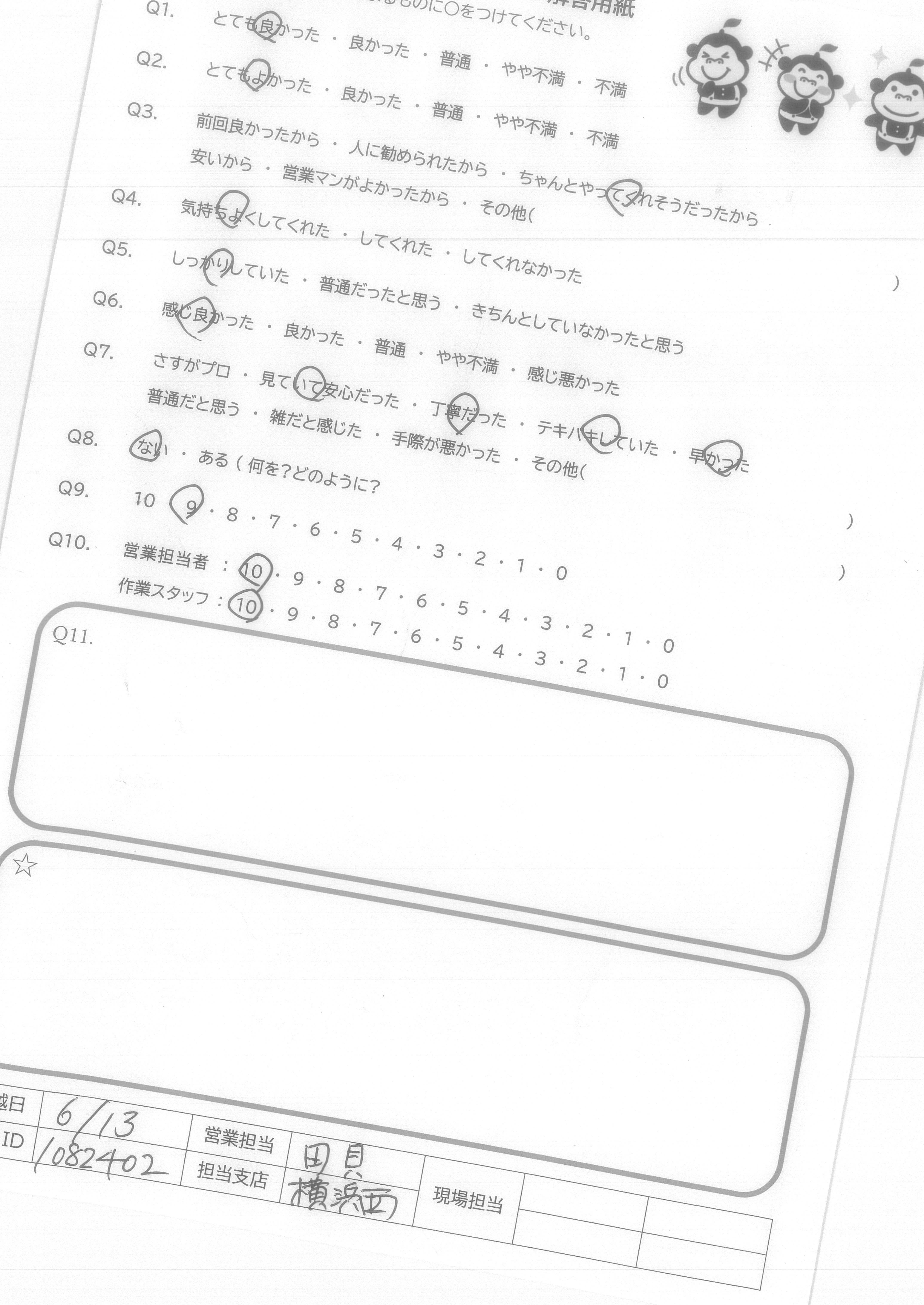 A.とても丁寧でした。また、テキパキと作業していただきました。