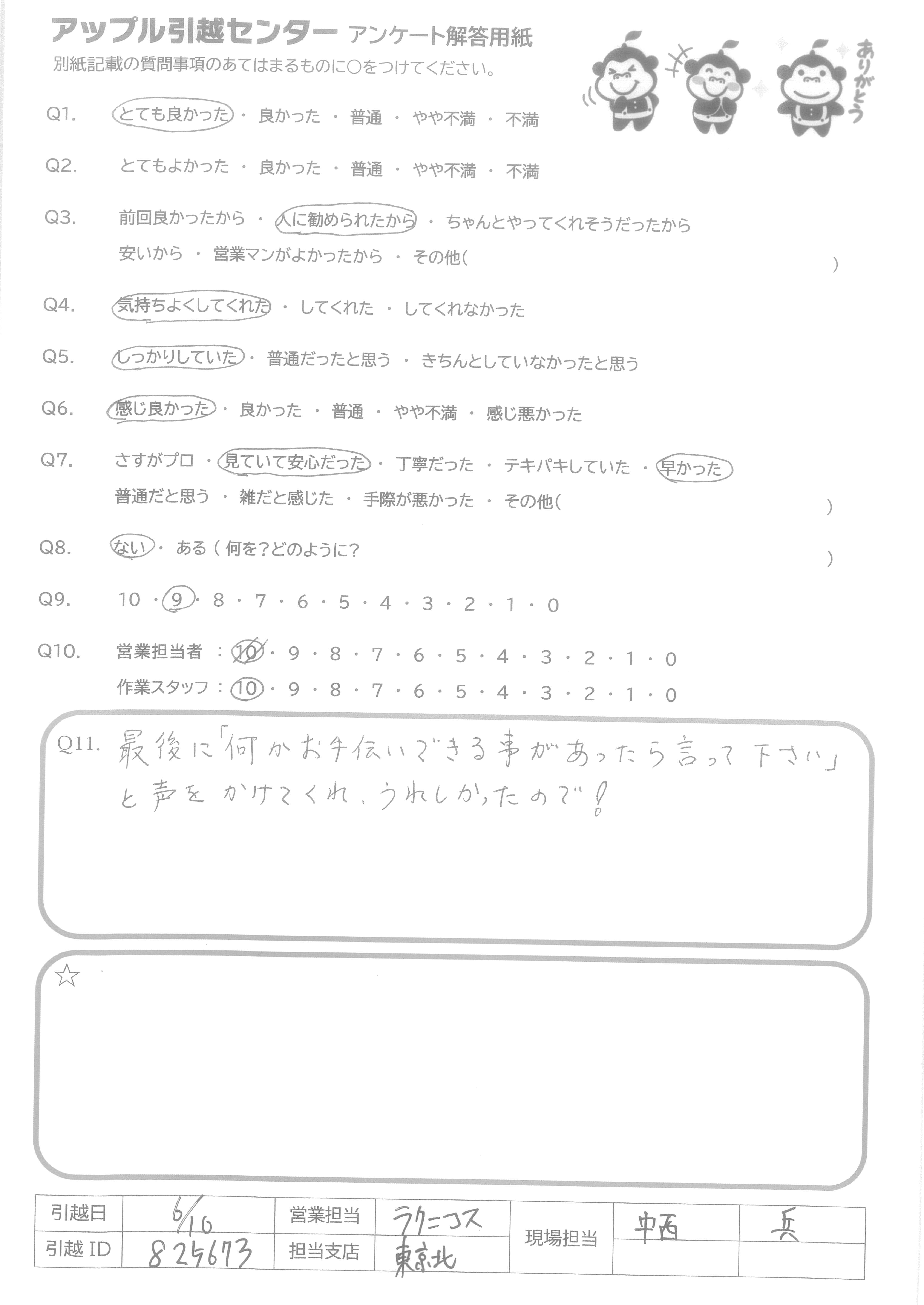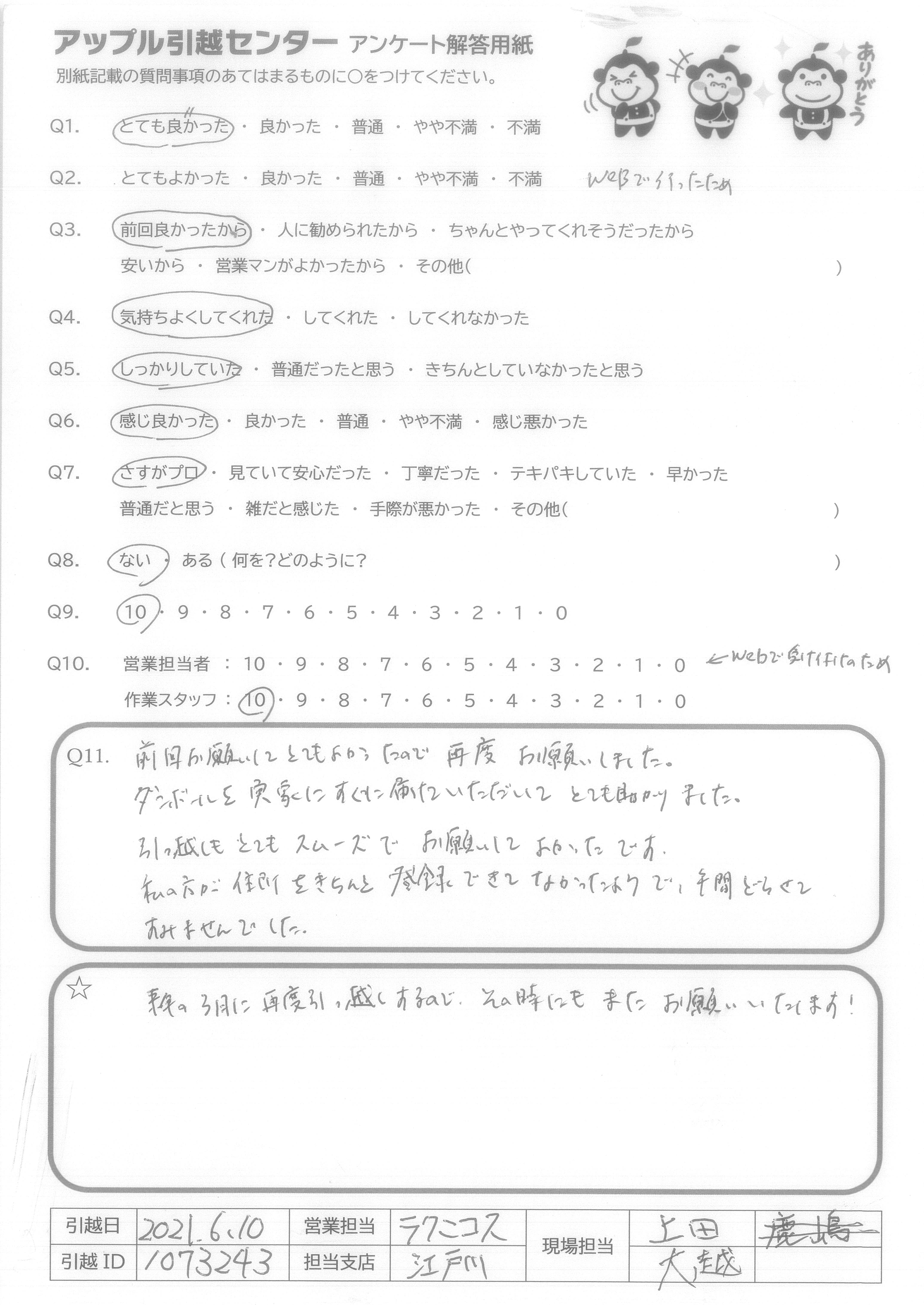 A.また引っ越しすることがあったら、アップルさんにお願いします。 いつもありがとうございます!
