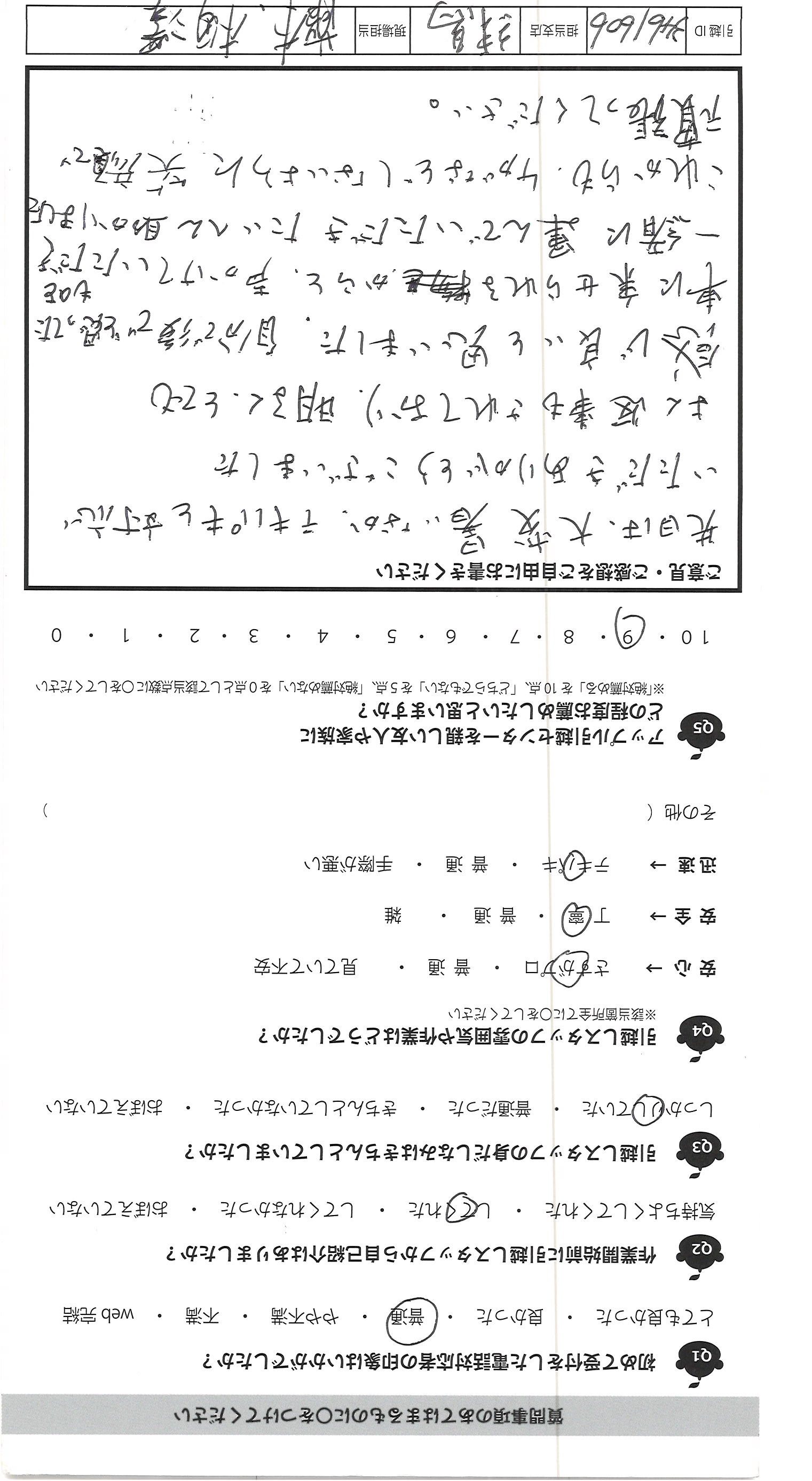A.先日は、大変暑いなか、テキパキと対応 いただきありがとうございました よく返事もされており、明るく、とても 感じ良いと思いました。自分で後でと思ってたものを 車に乗せられるからと、声かけていただき 一緒に運んでいただきたいへん助かりました これからも、ケガなどしないように笑顔で 頑張ってください。