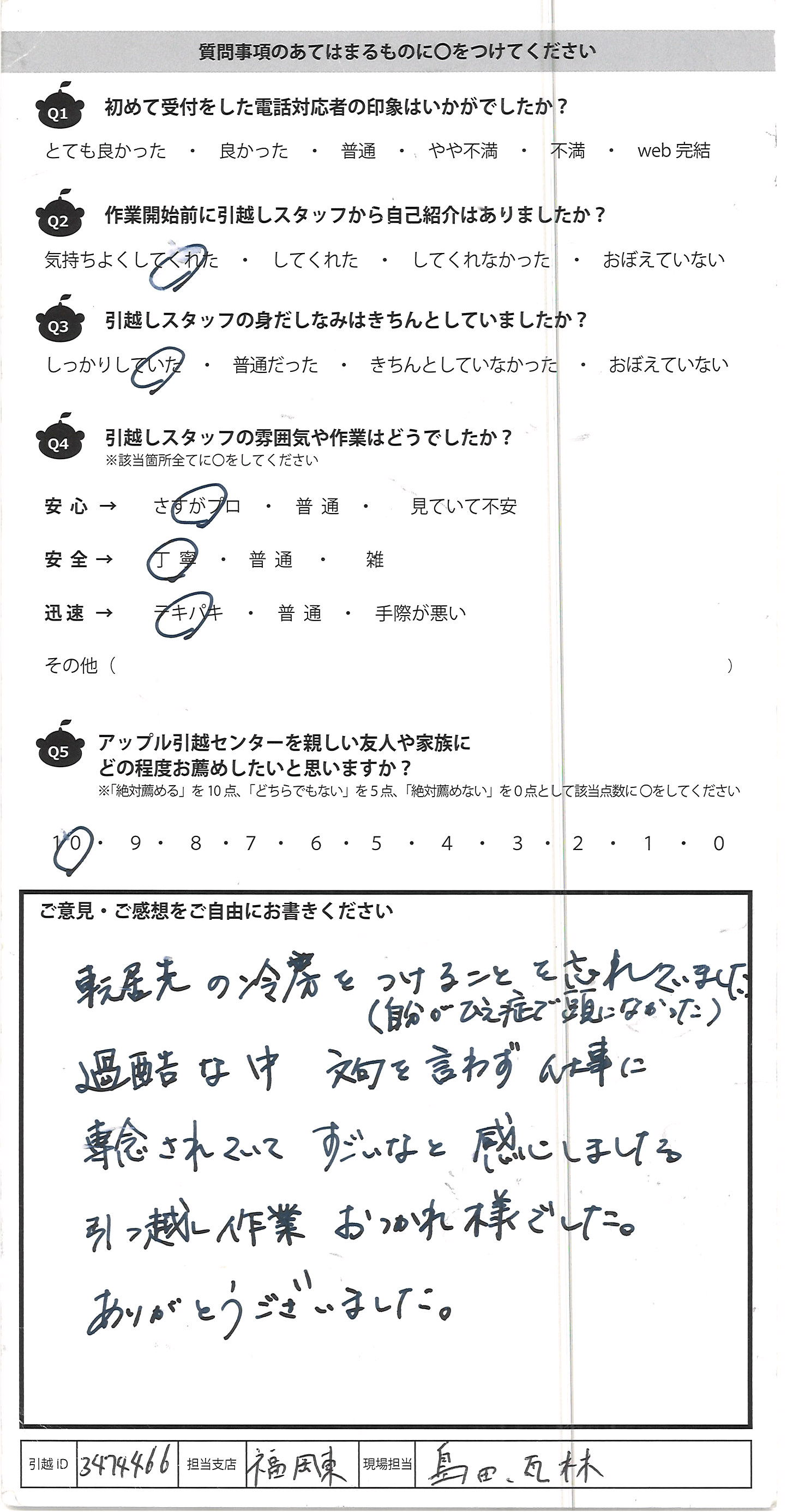 アップル引越センターでは、面映いお褒めの言葉も、胸に突き刺さるお叱りのコメントも、