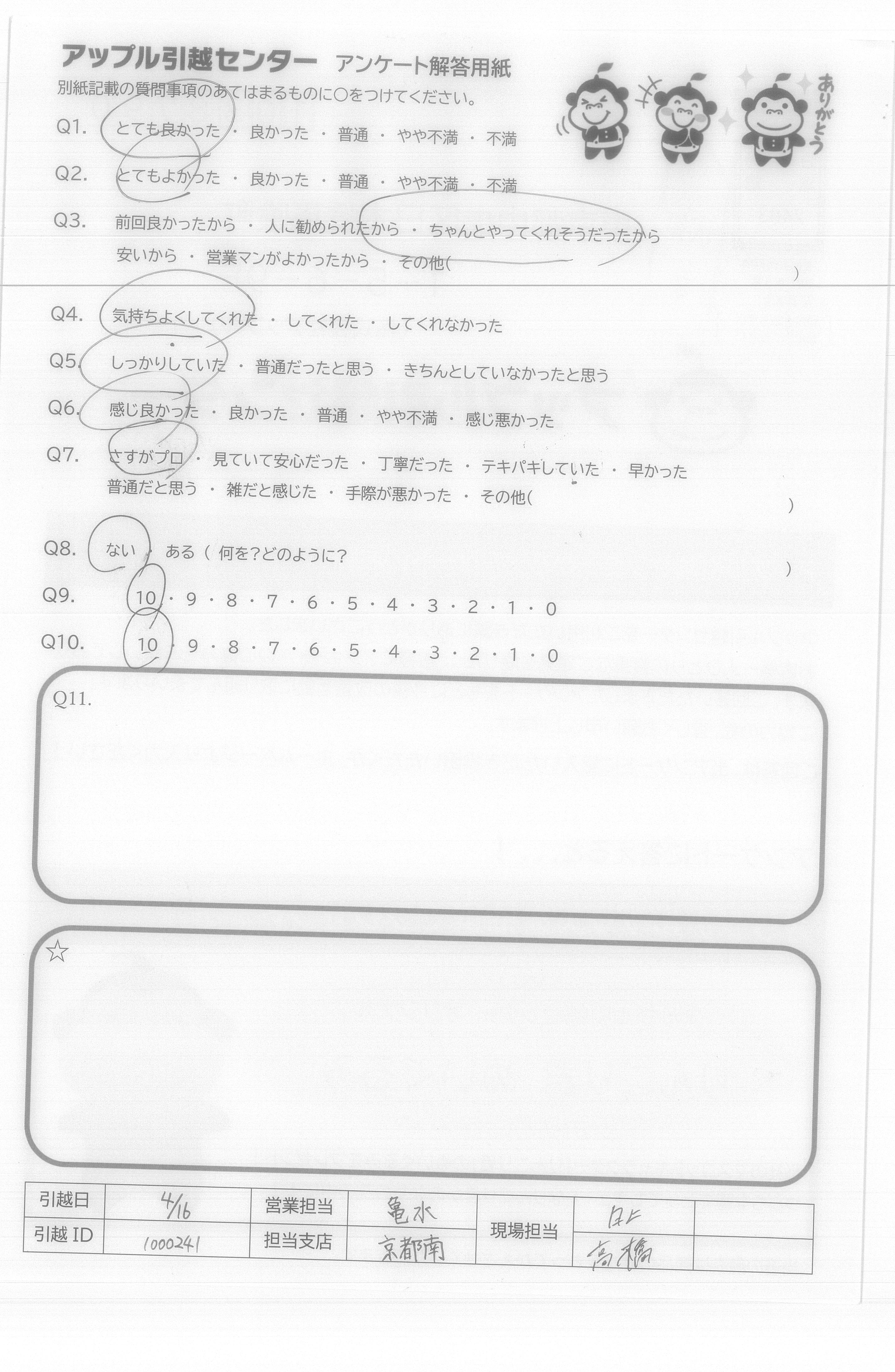 引越し日:2021年04月16日 エリア:京都府京都市西京区