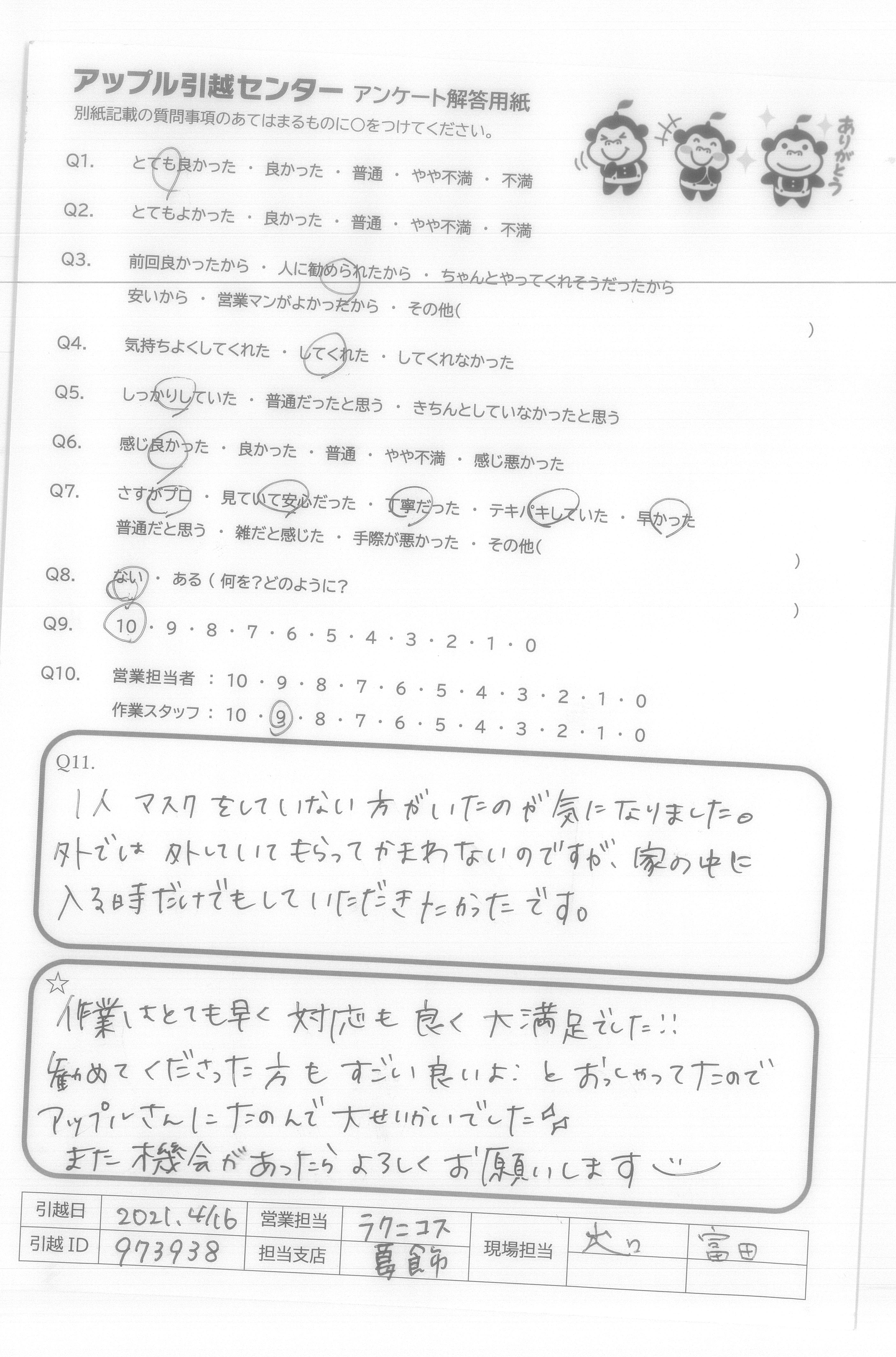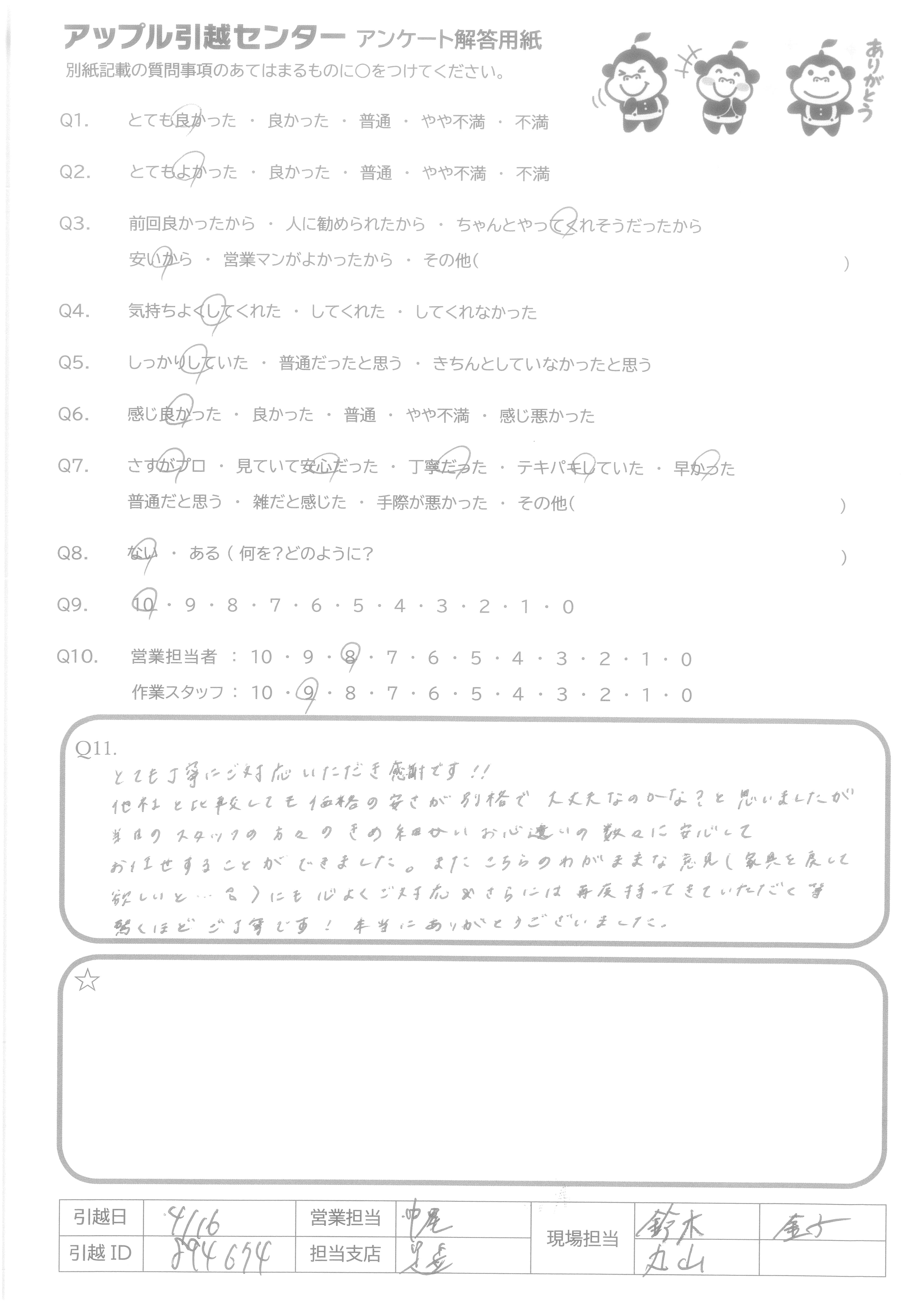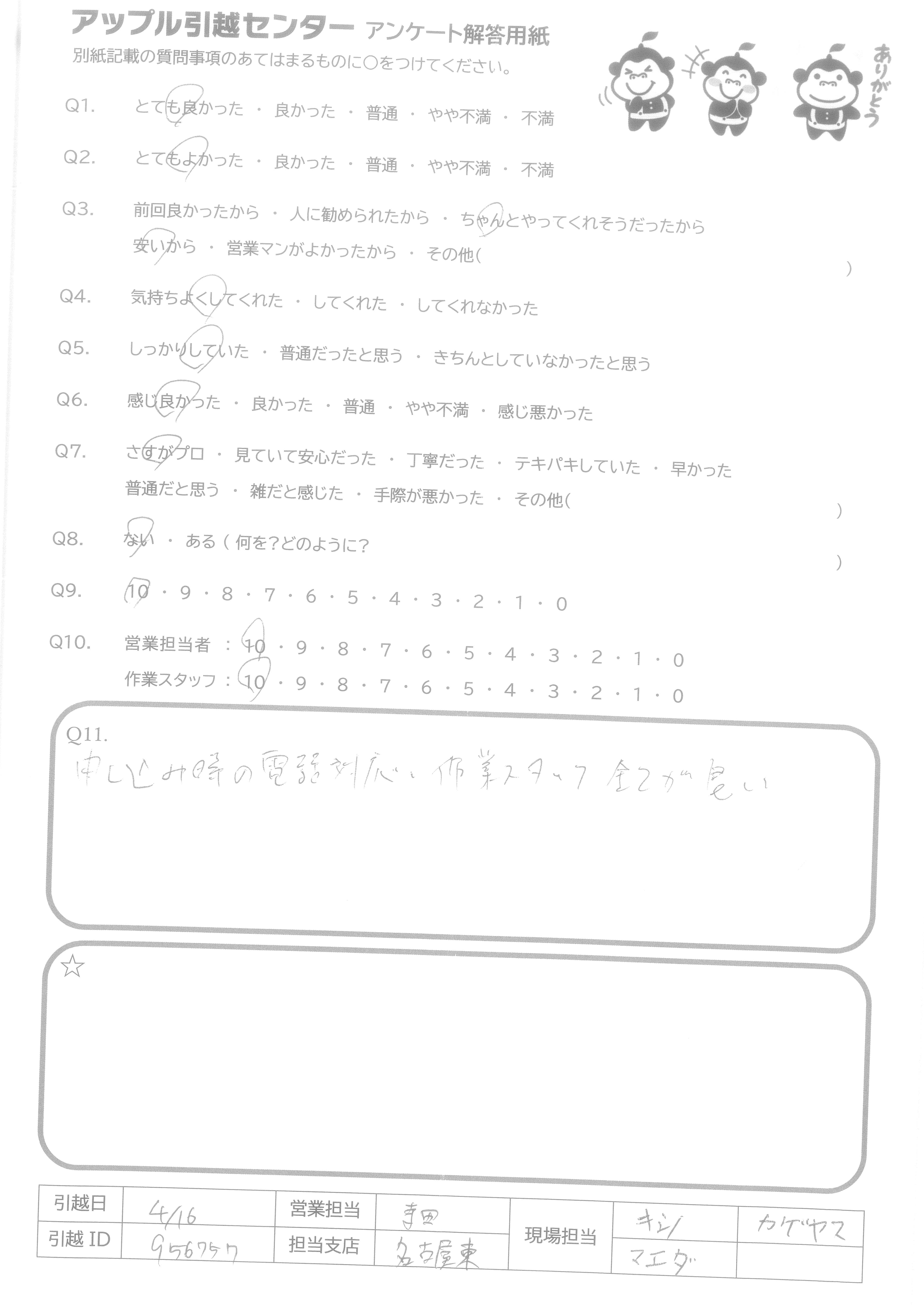 アップル引越センターでは、面映いお褒めの言葉も、胸に突き刺さるお叱りのコメントも、