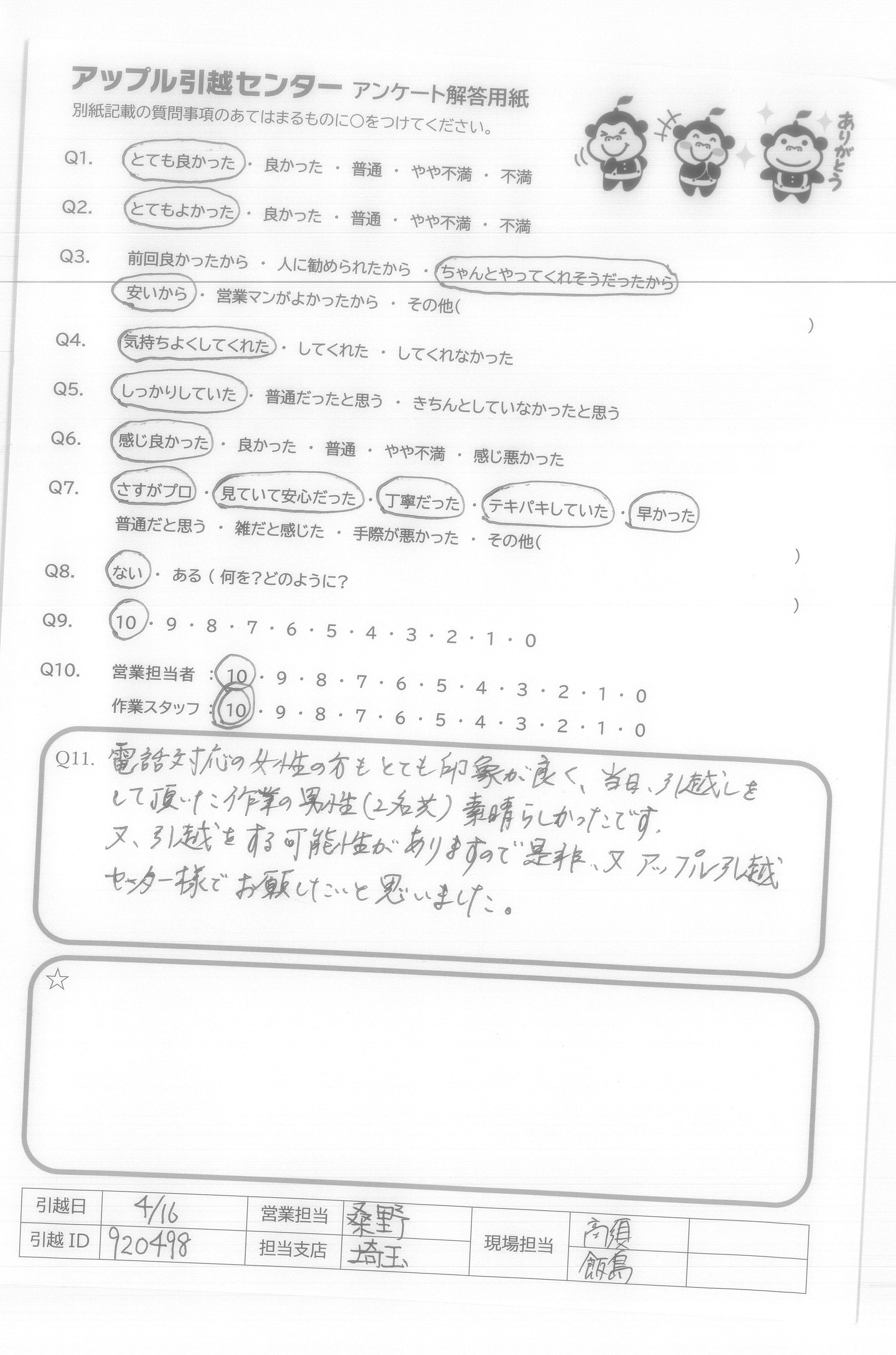 引越し日:2021年04月16日 エリア:埼玉県越谷市