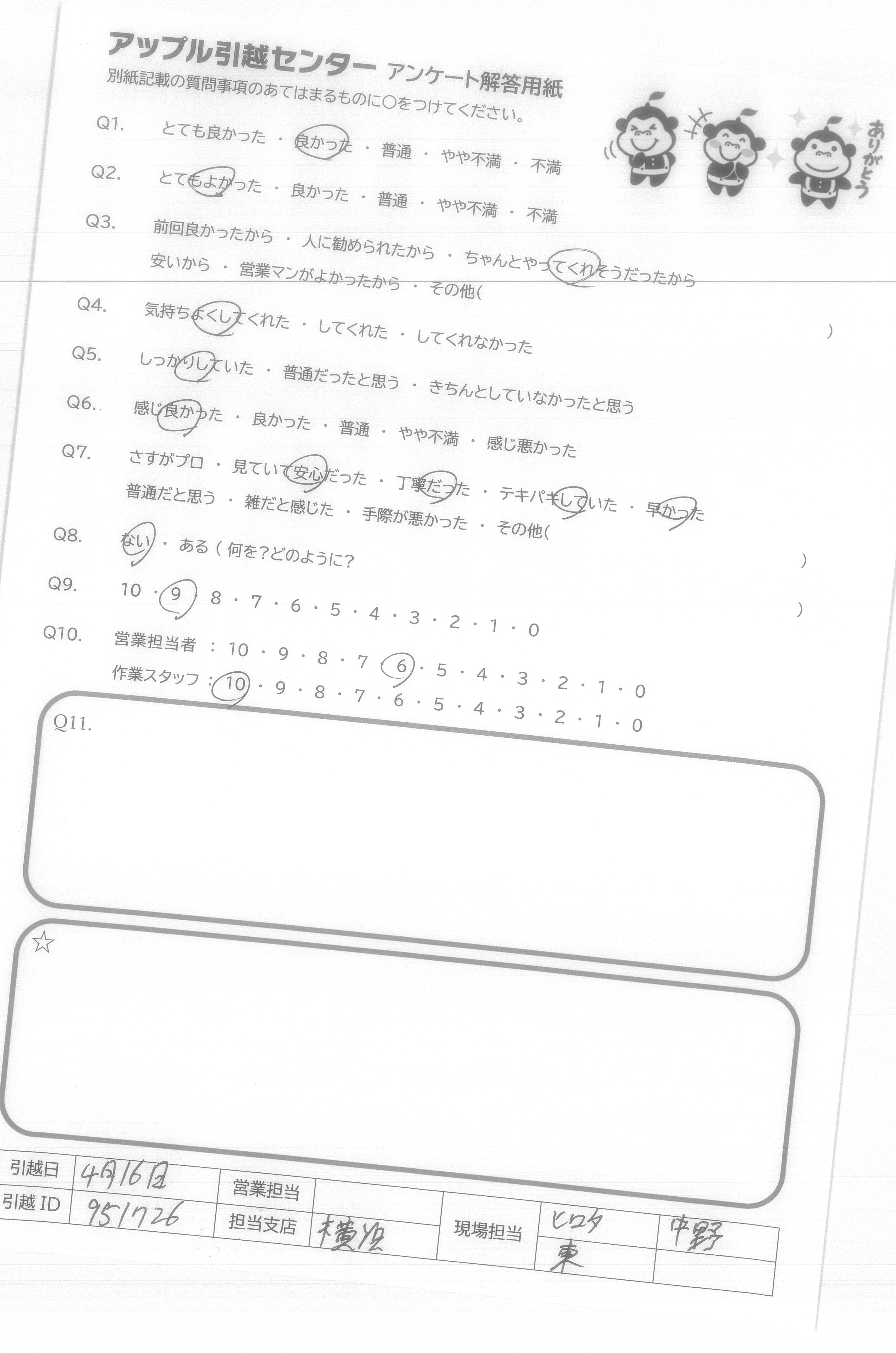 引越し日:2021年04月16日 エリア:神奈川県横浜市旭区