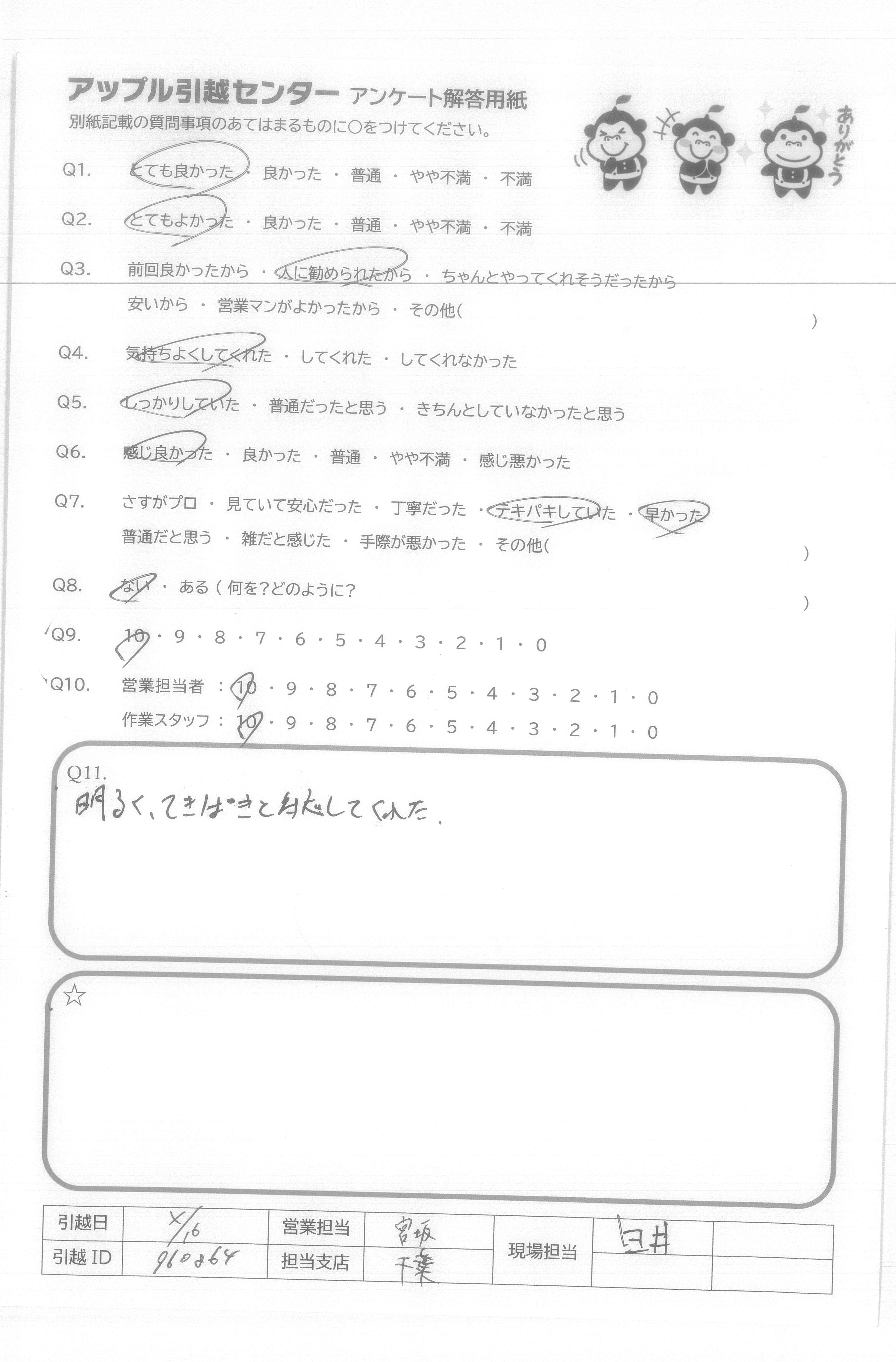 引越し日:2021年04月16日 エリア:大阪府大阪市都島区