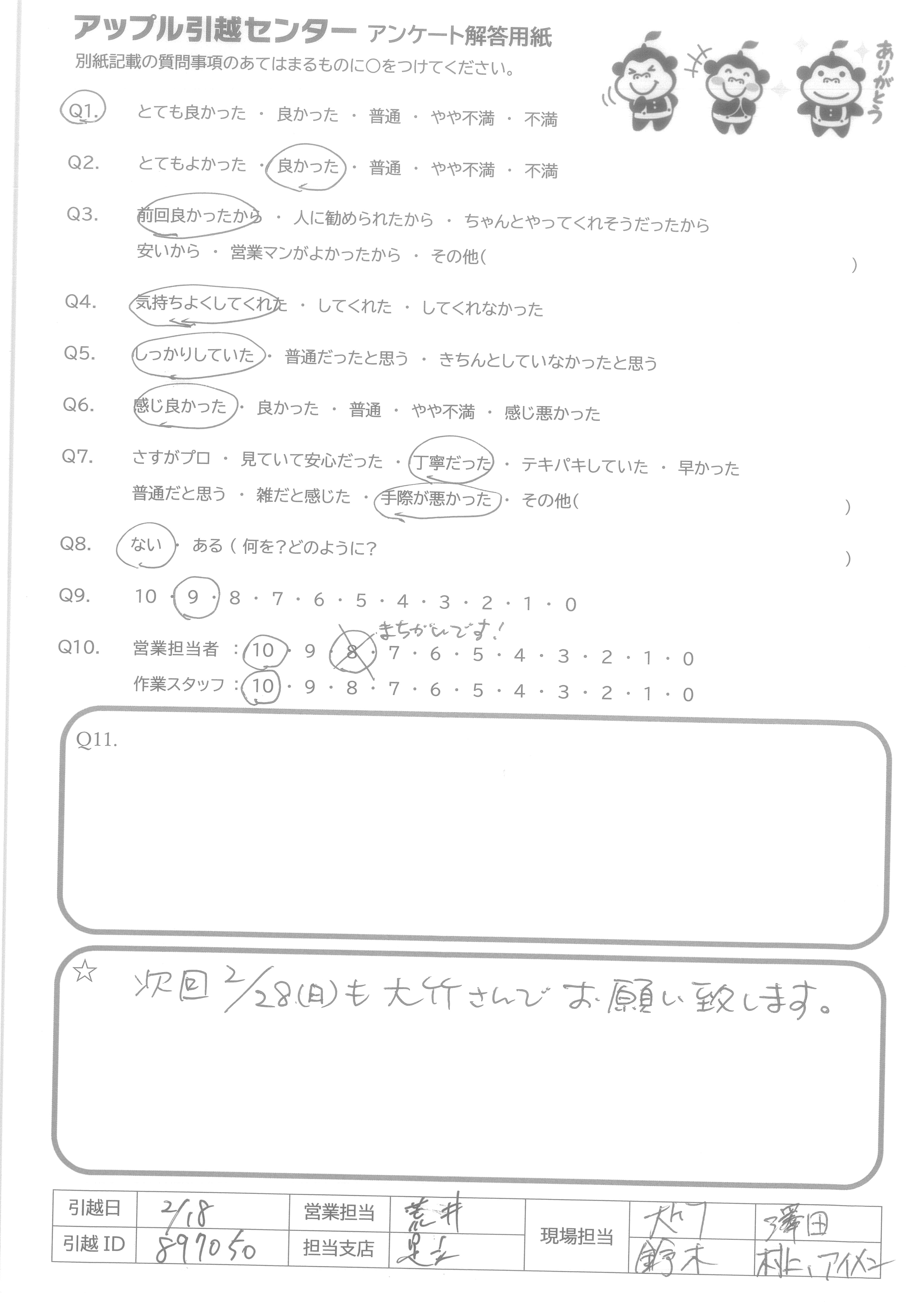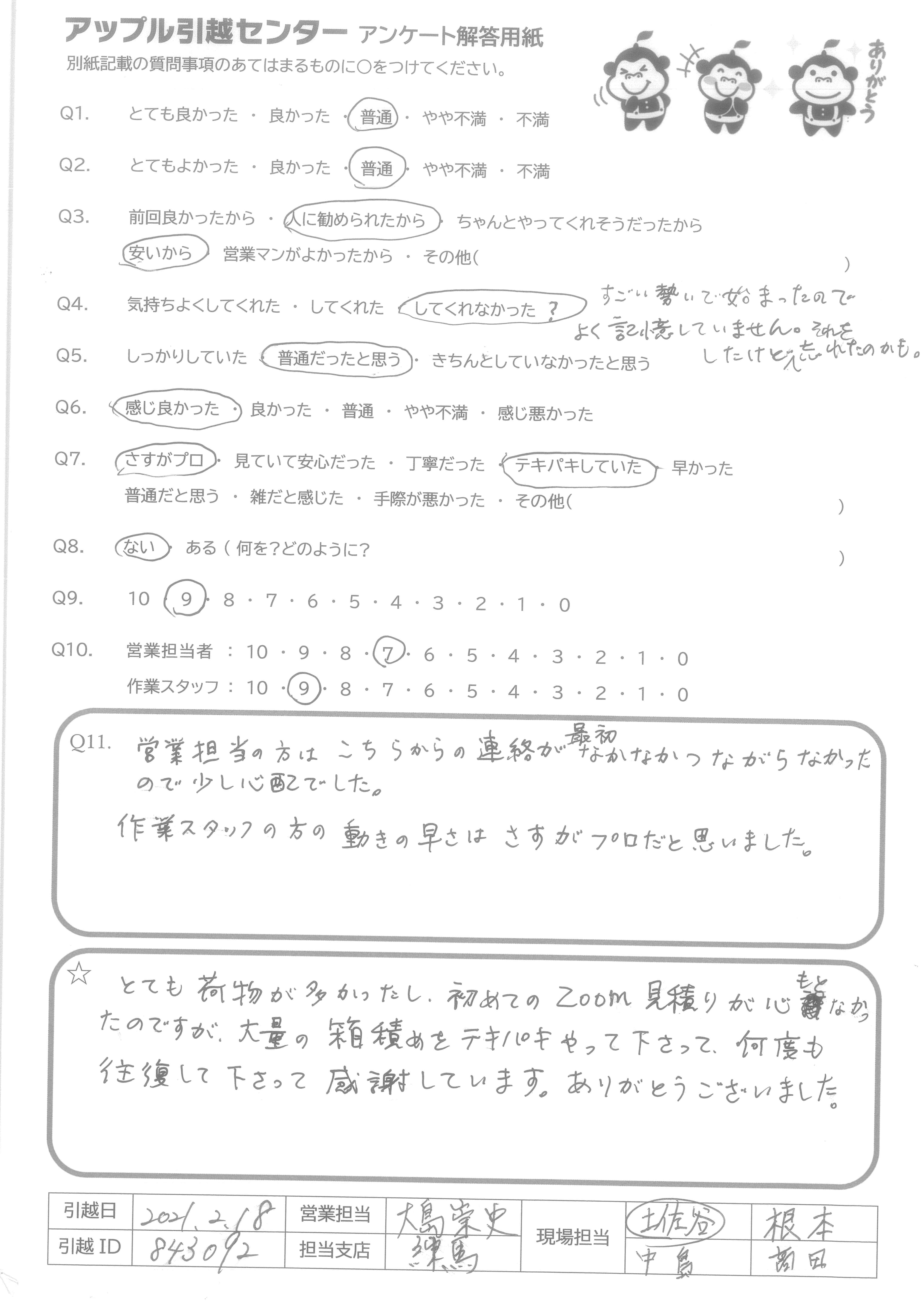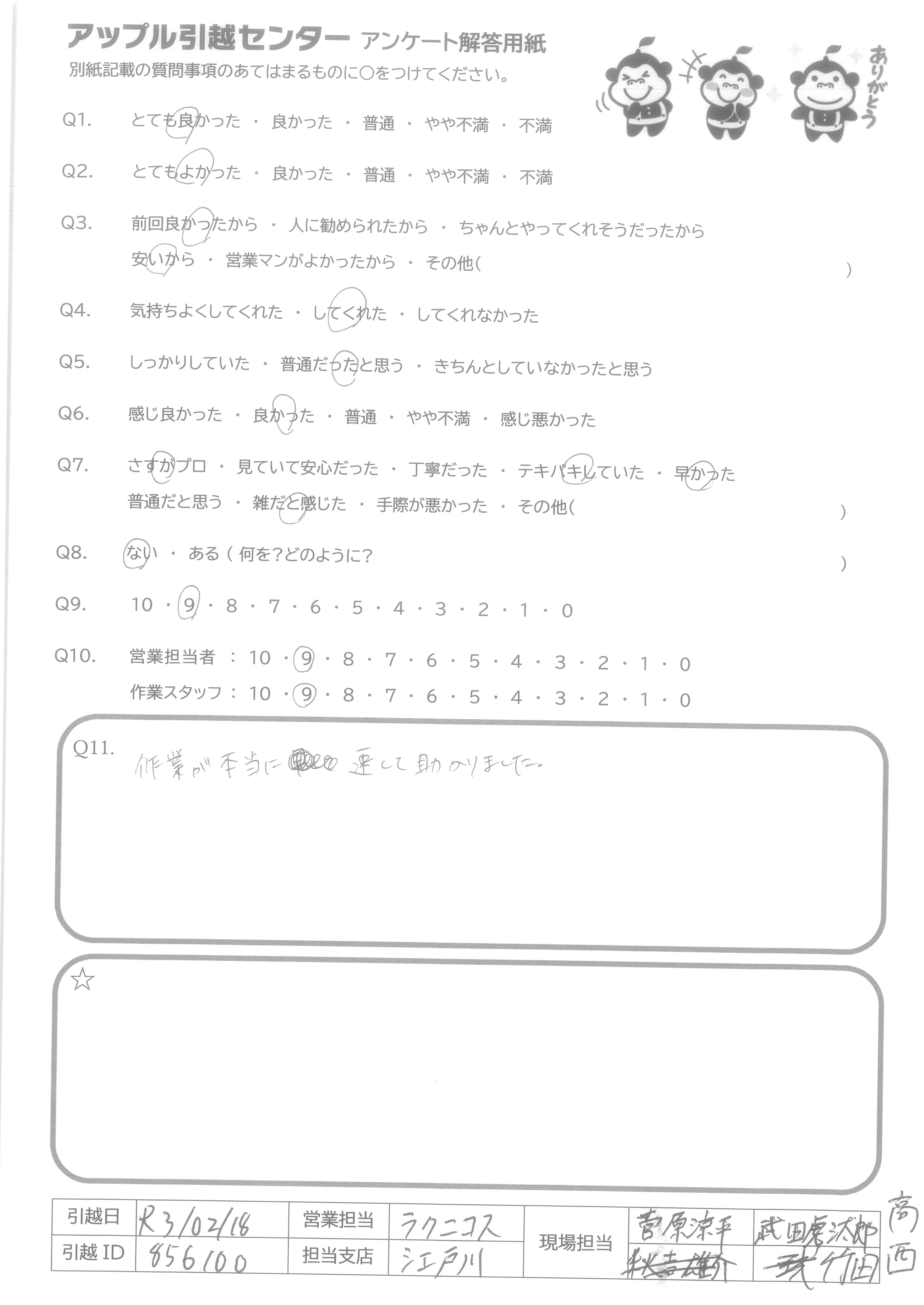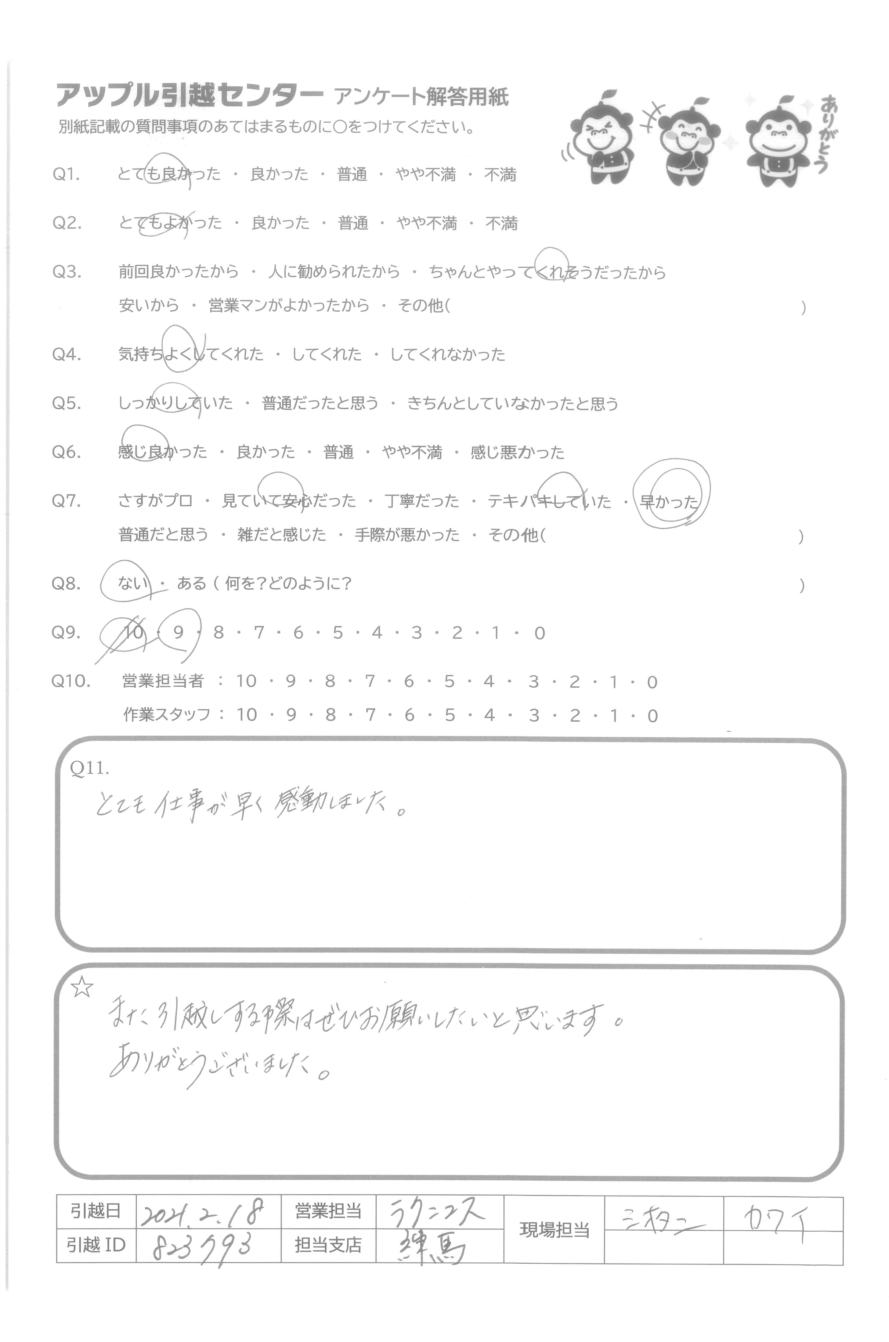A.また引越しする際はぜひお願いしたいと思います。ありがとうございました。