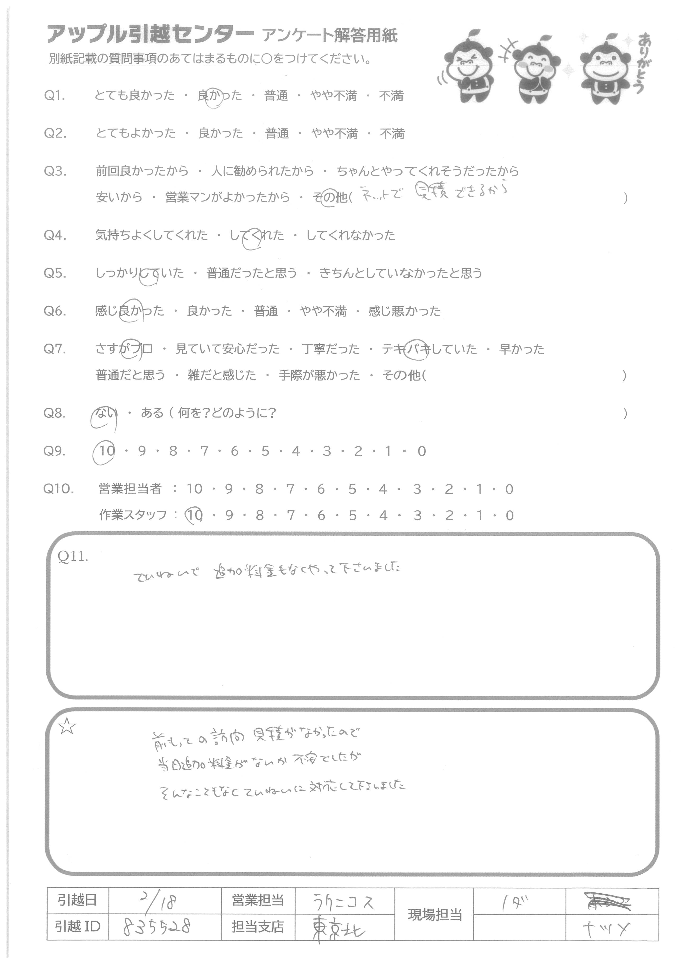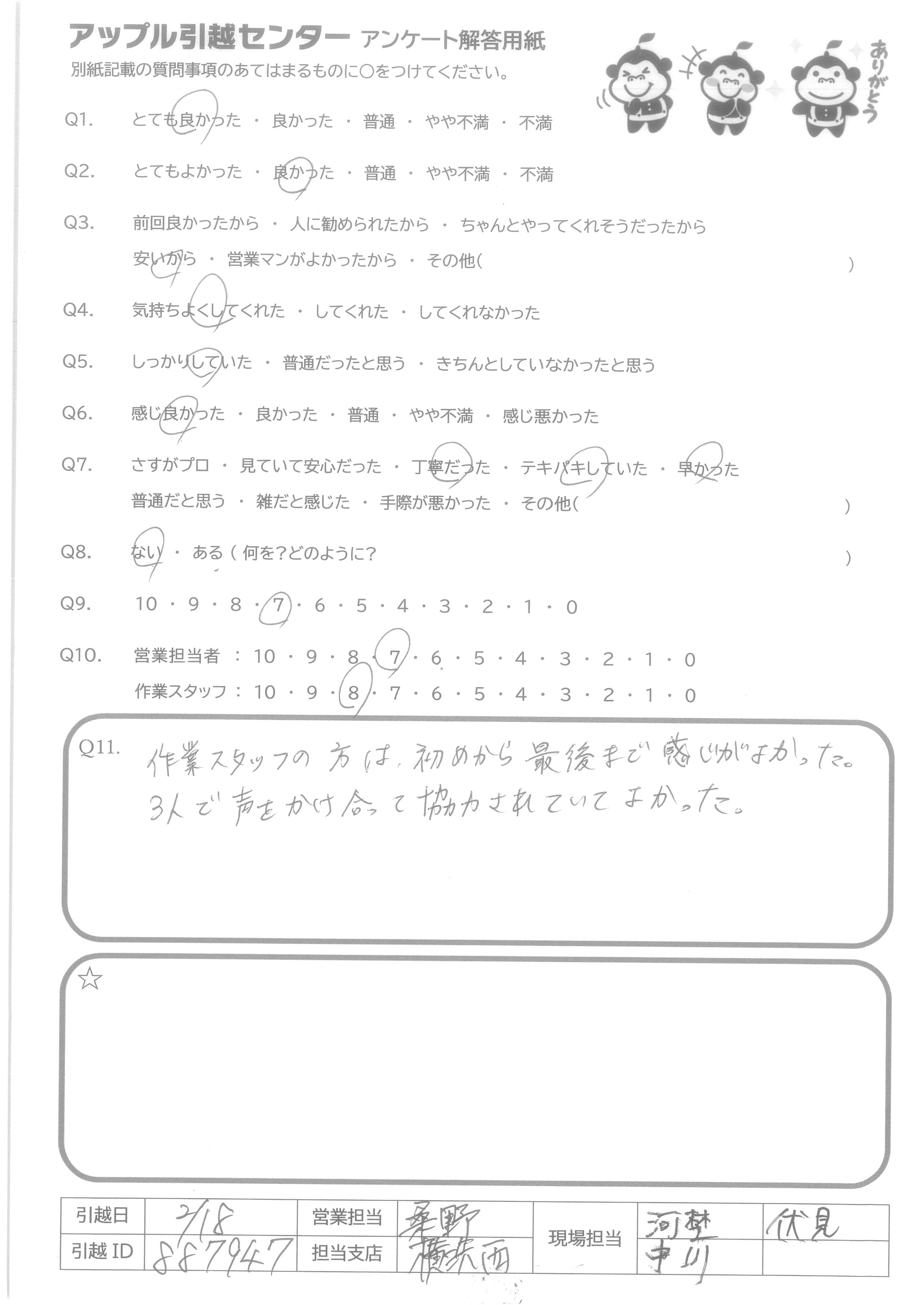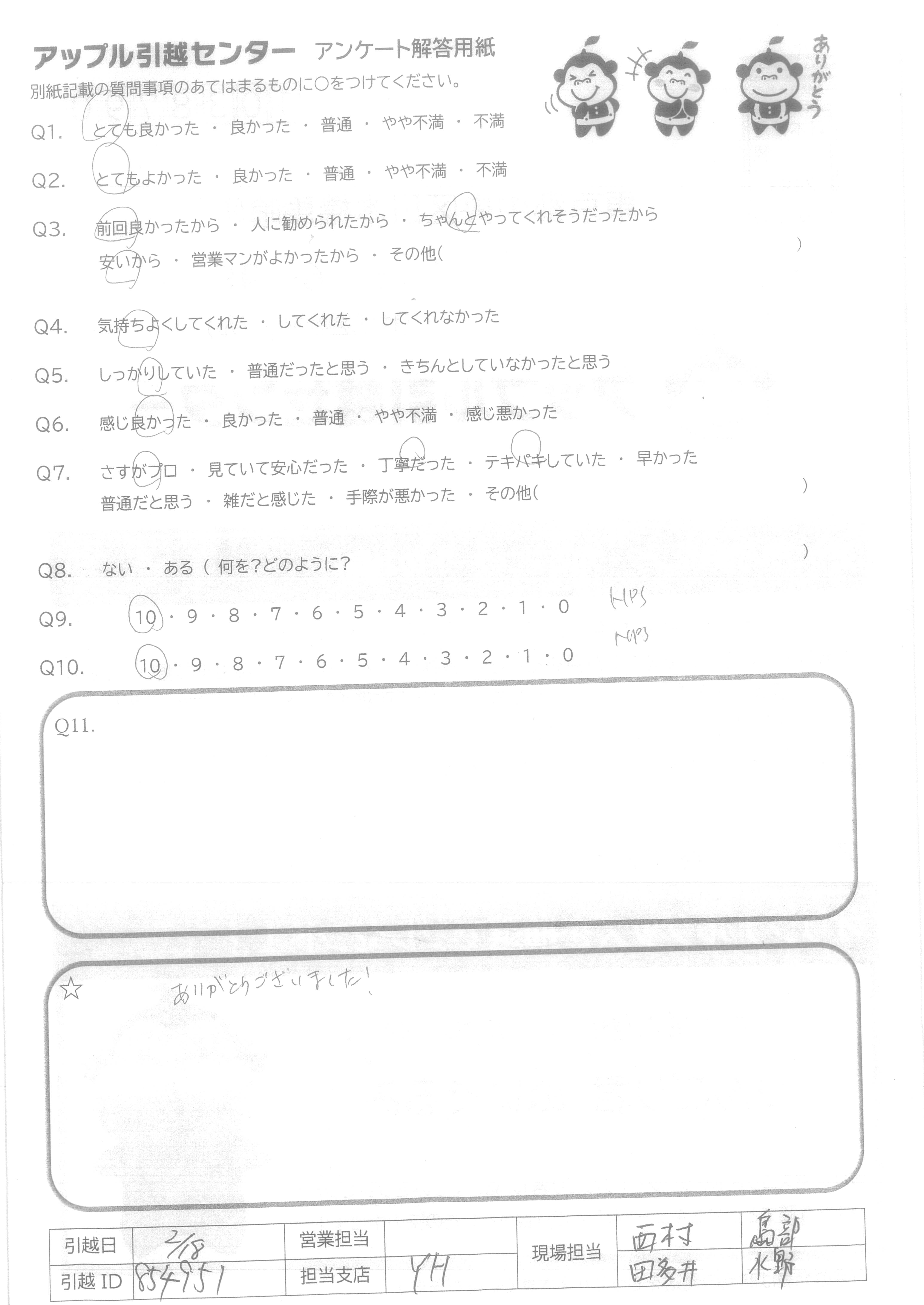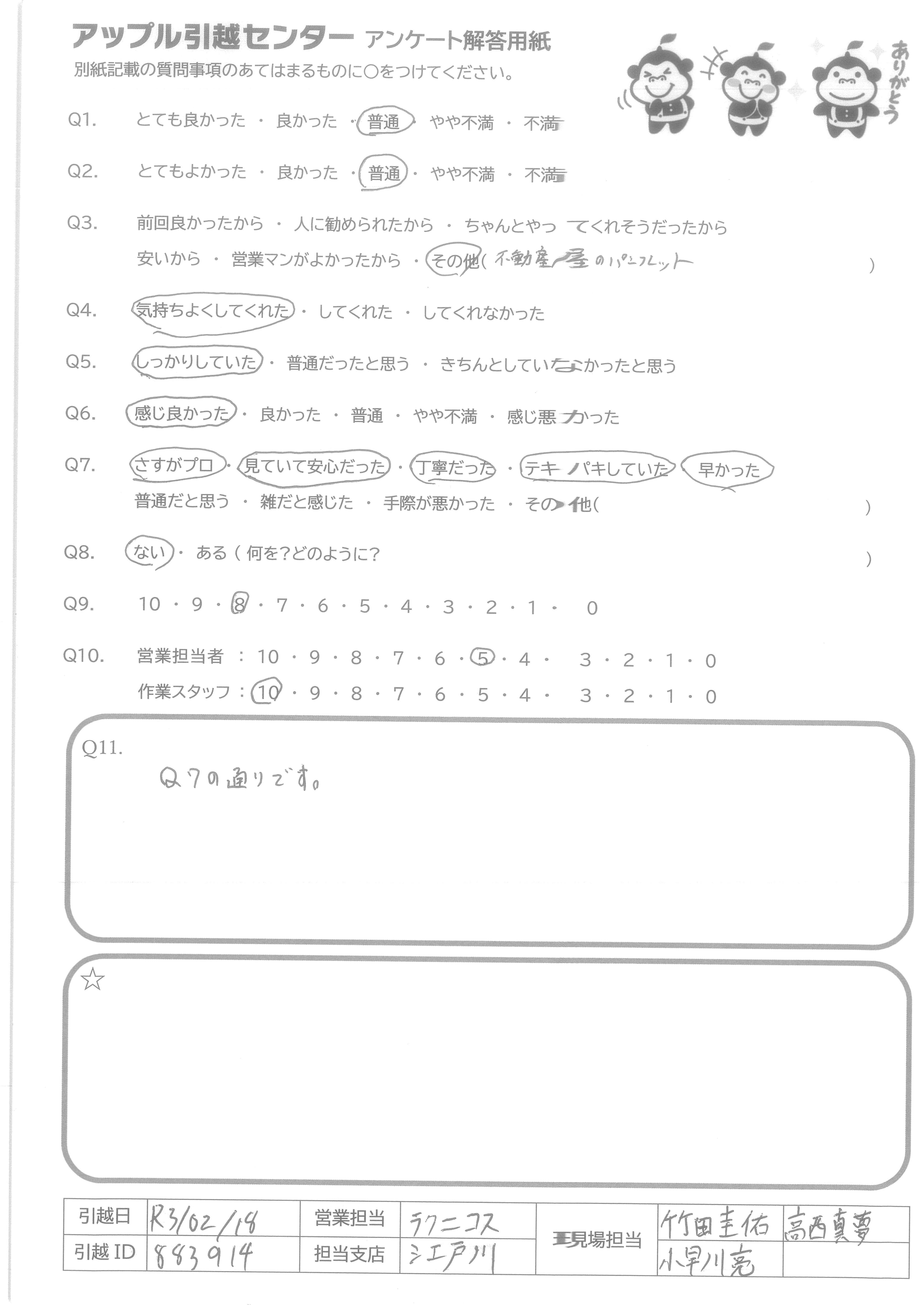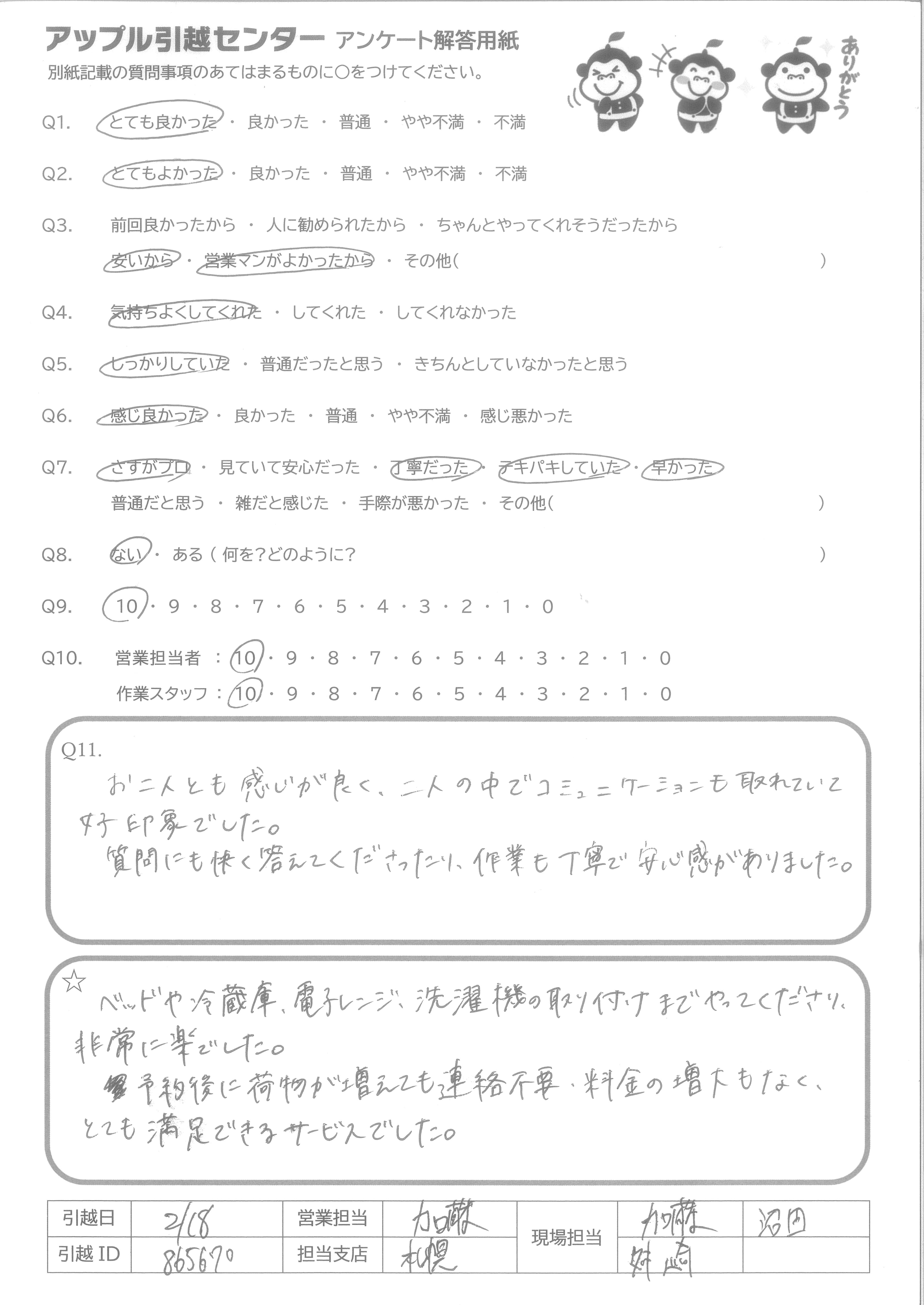 A.また引越しする際はぜひお願いしたいと思います。ありがとうございました。