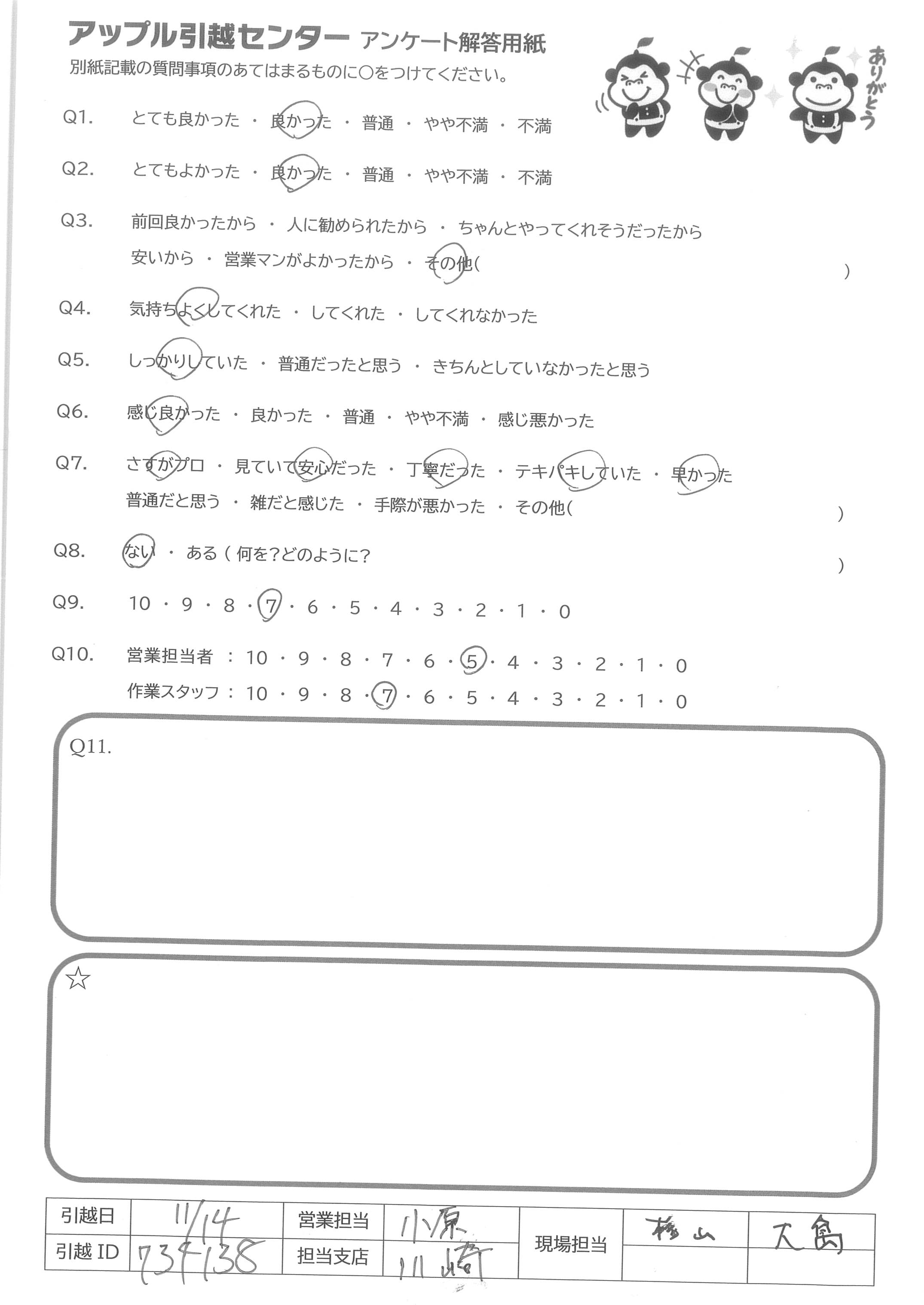 引越し日:2020年11月14日 エリア:神奈川県相模原市中央区