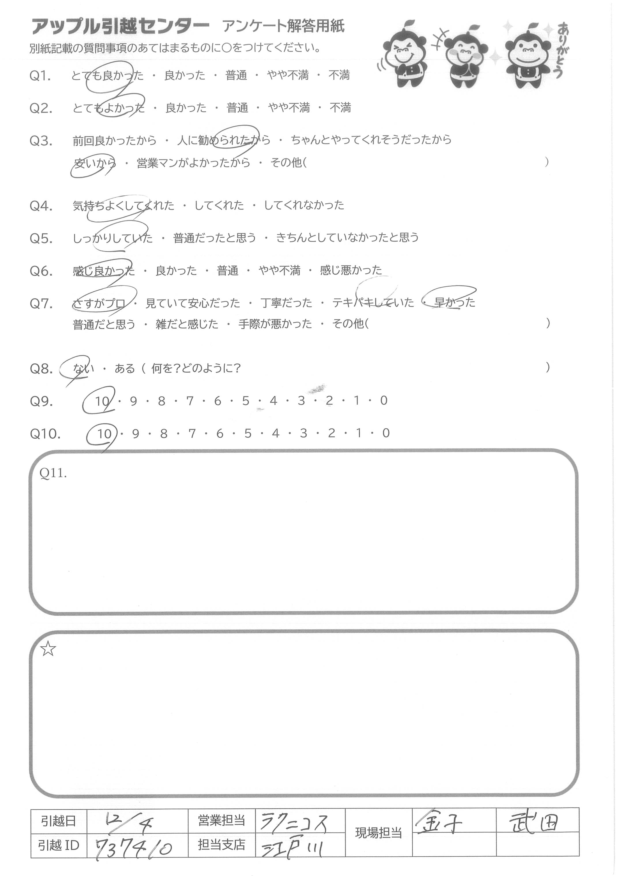 引越し日:2020年12月04日 エリア:千葉県浦安市