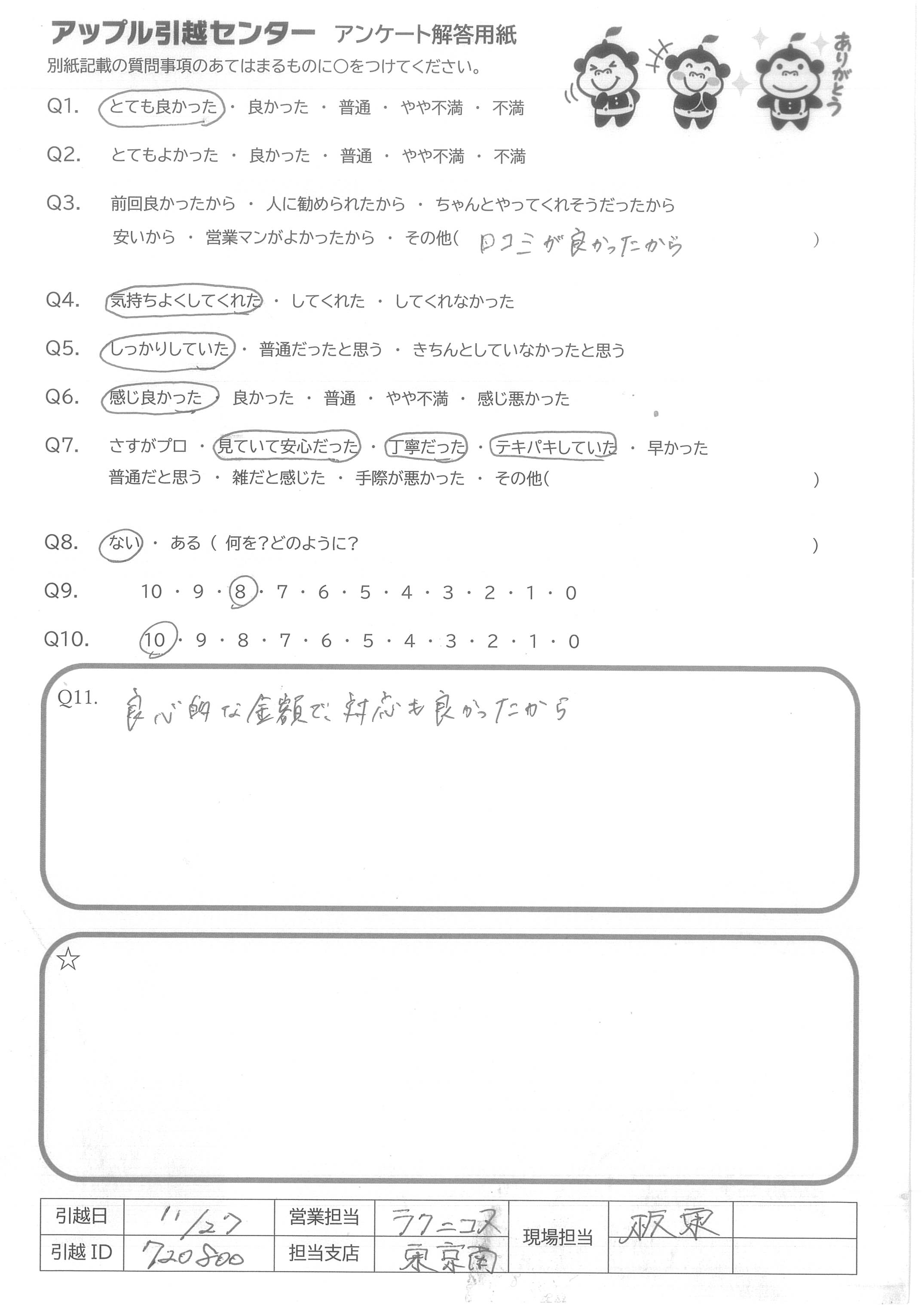 引越し日:2020年11月27日 エリア:東京都豊島区