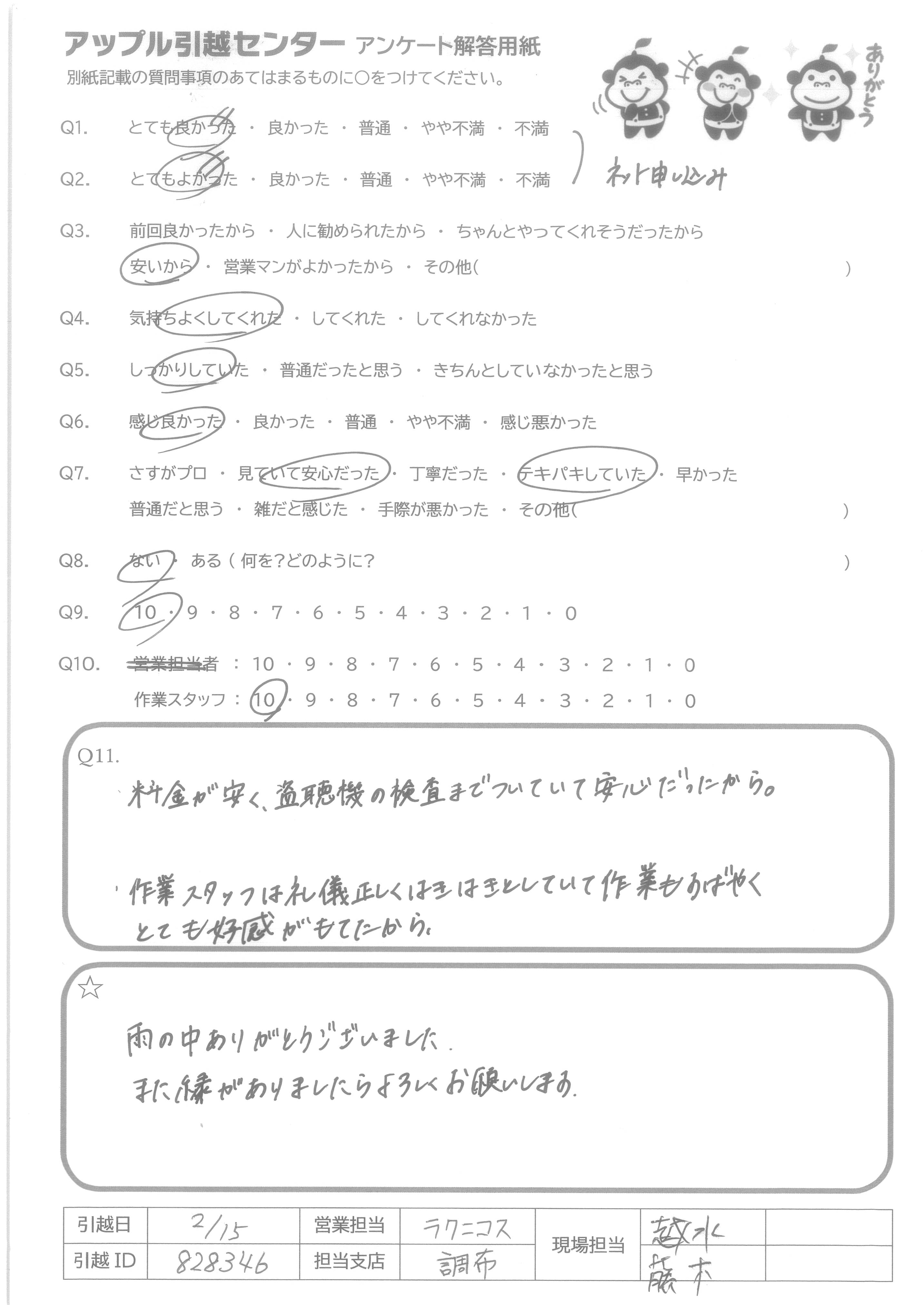 A.今回の担当者が親切で良かった 料金も一番安かった。