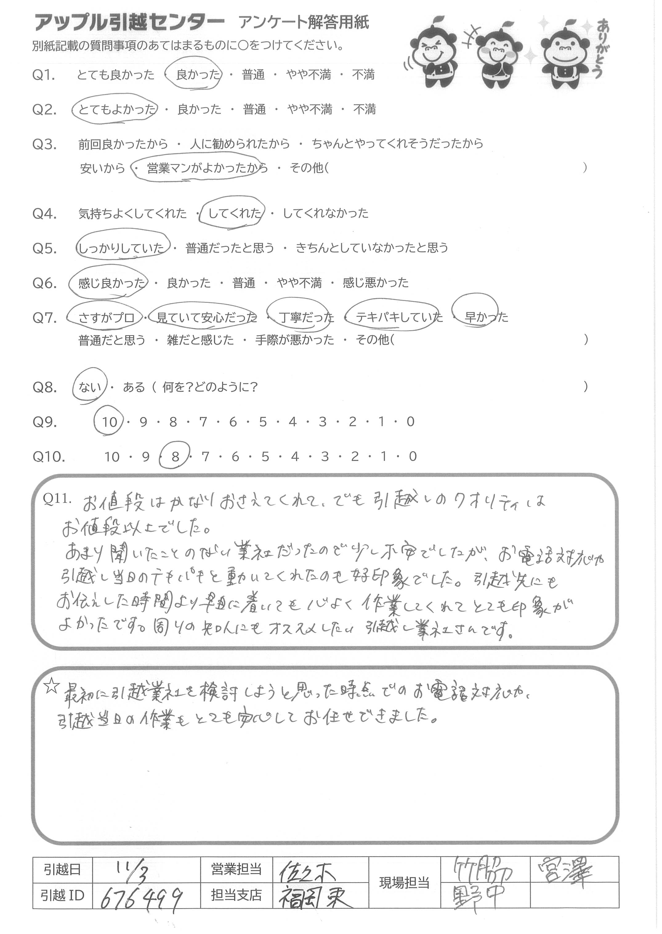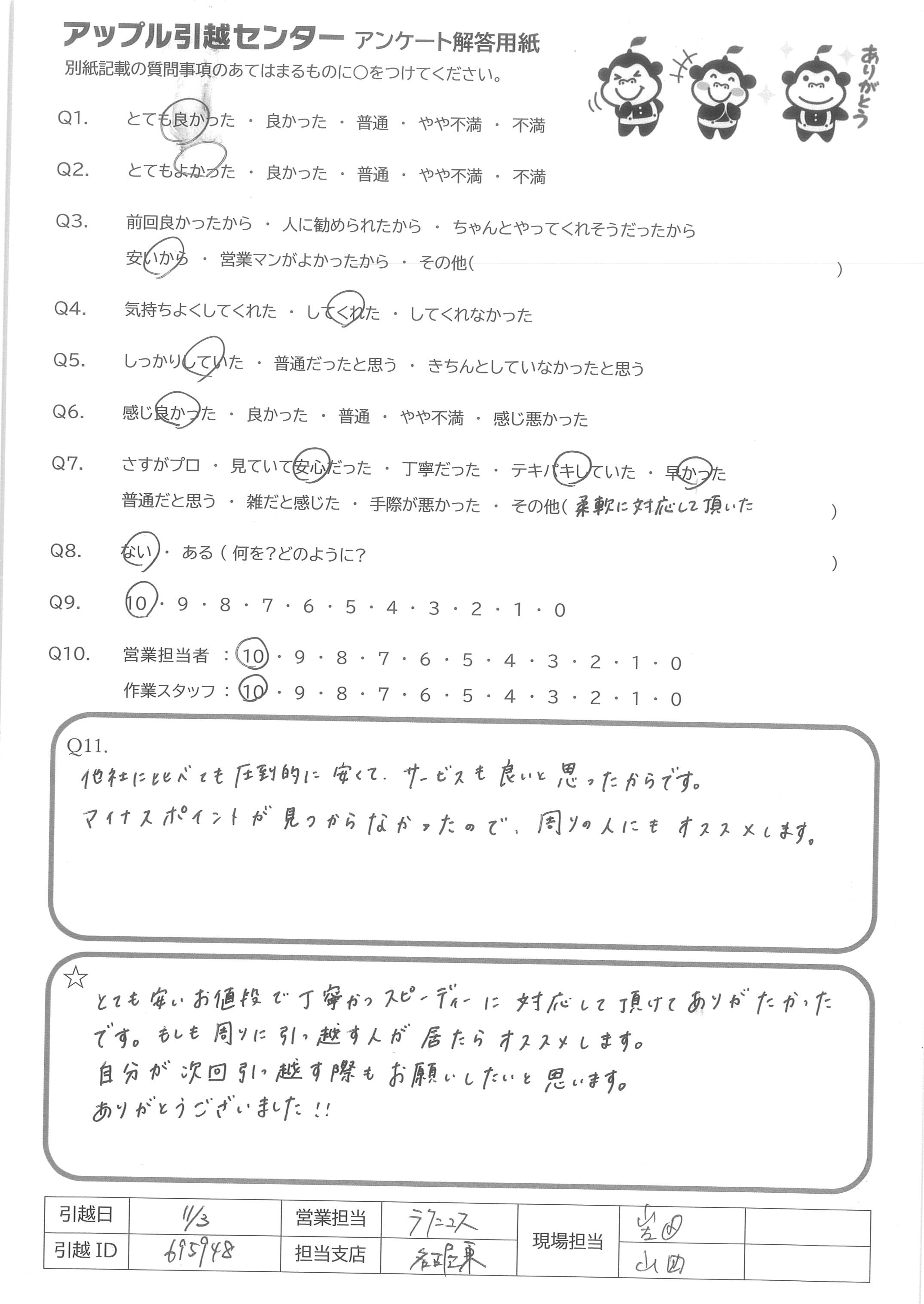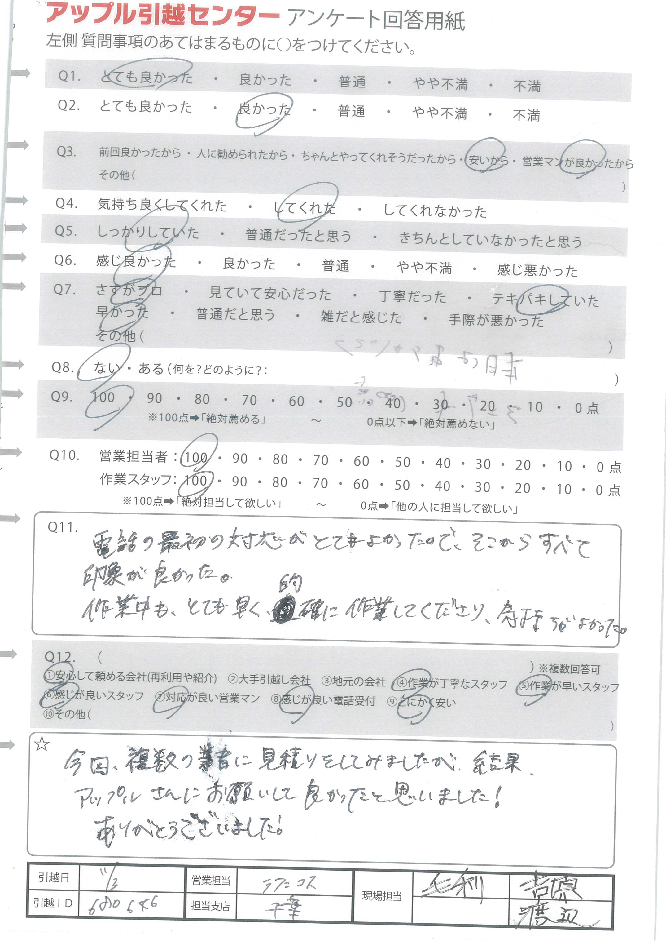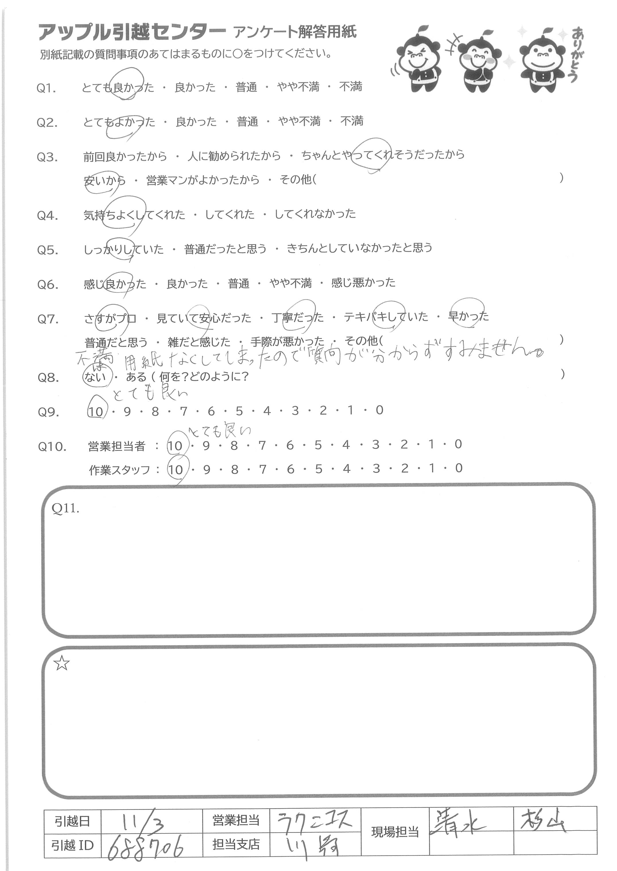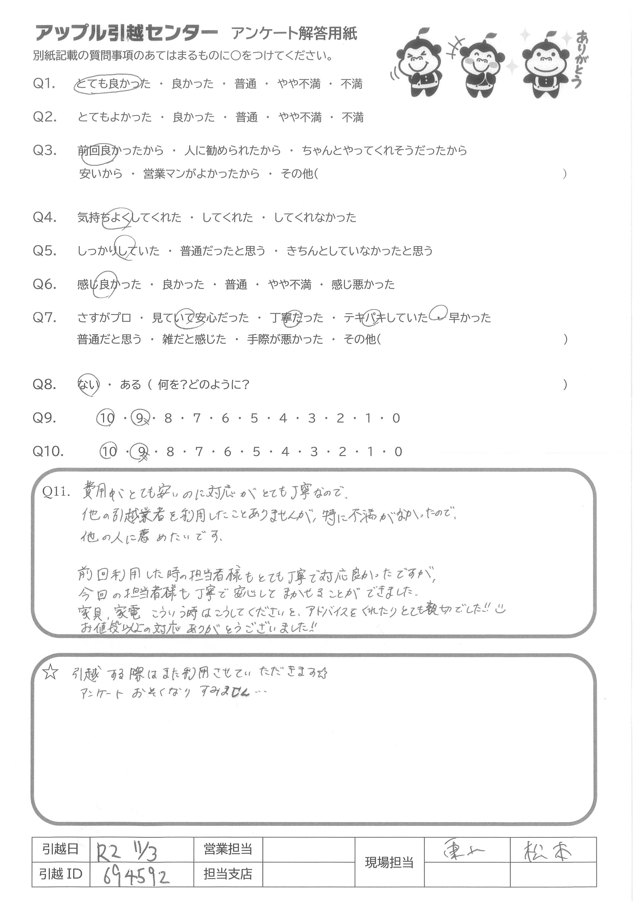 A.引越する際はまた利用させていただきます アンケートおそくなりすみません・・・