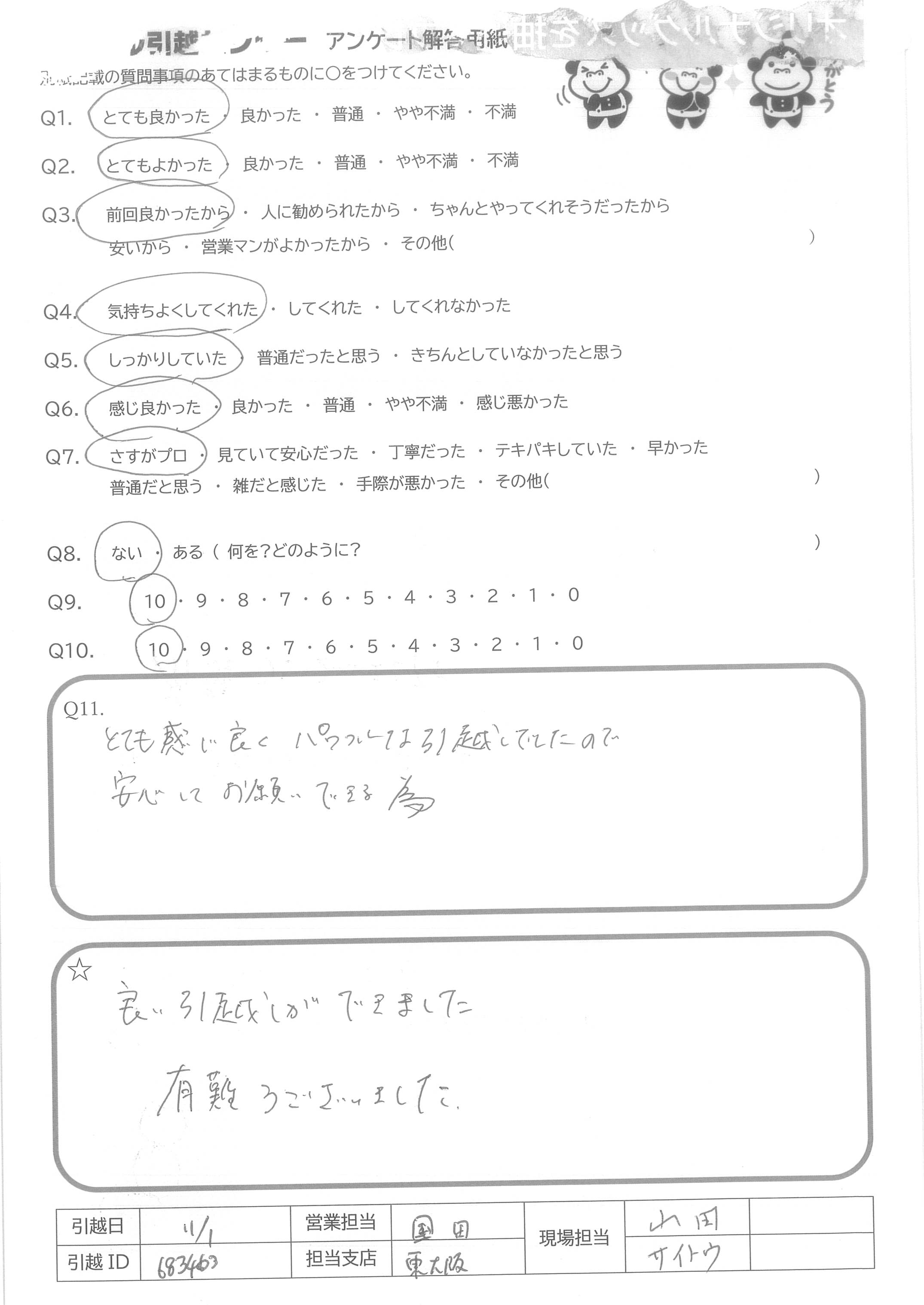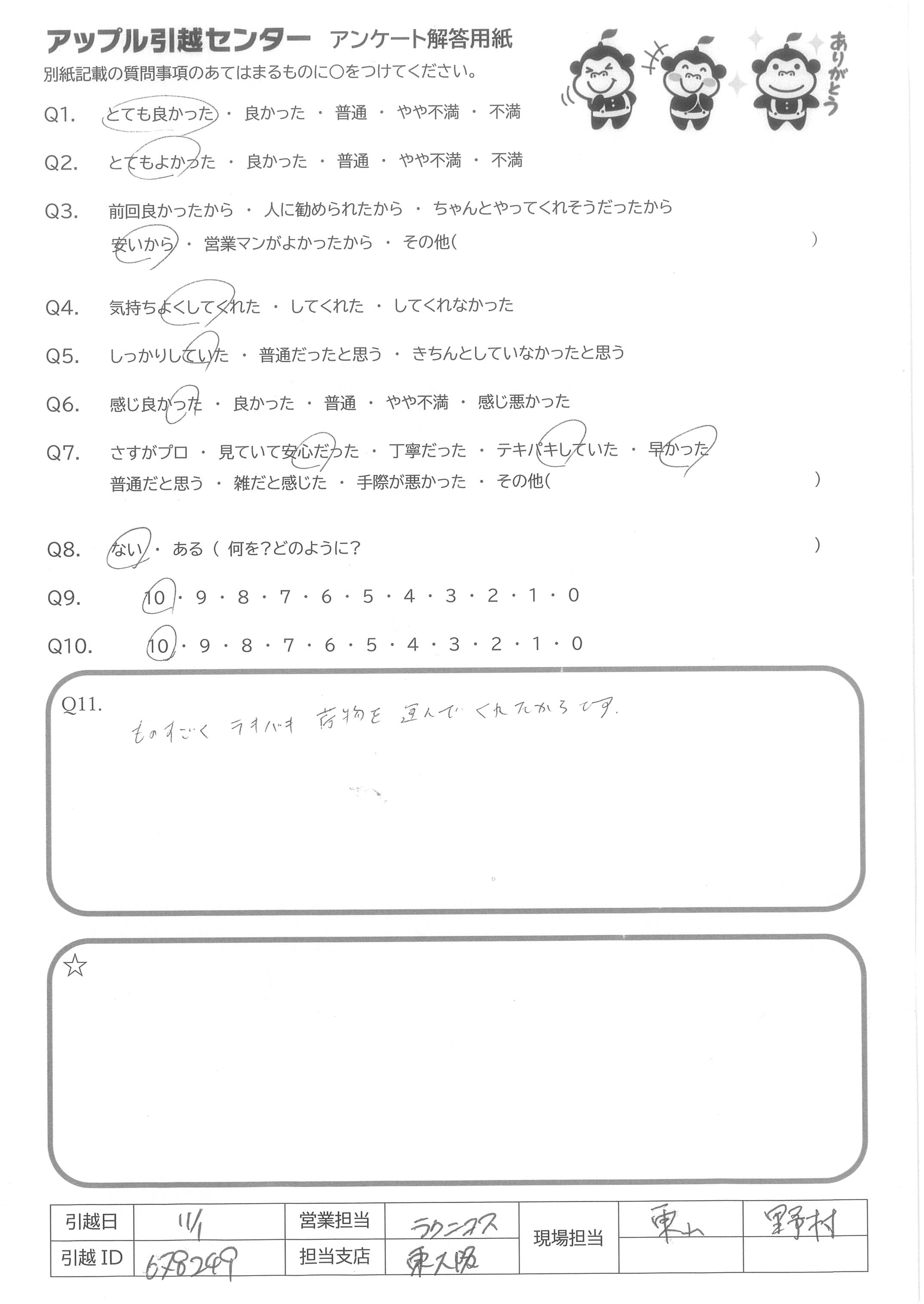 A.良い引越しができました 有難うございました