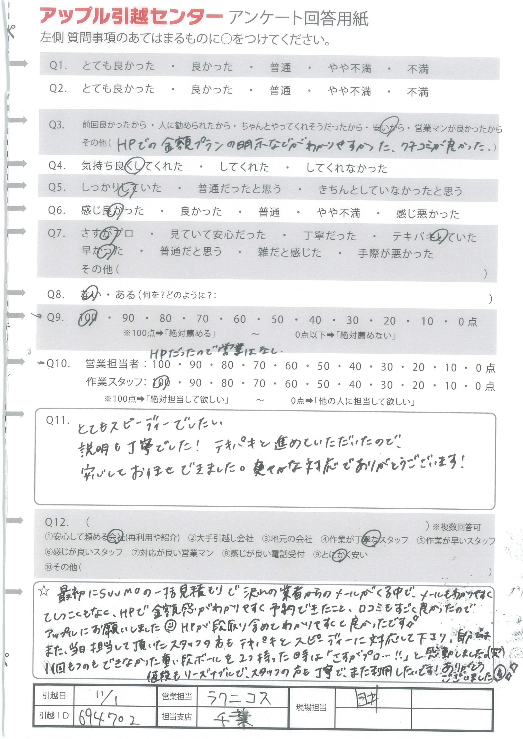 アップル引越センターでは、面映いお褒めの言葉も、胸に突き刺さるお叱りのコメントも、