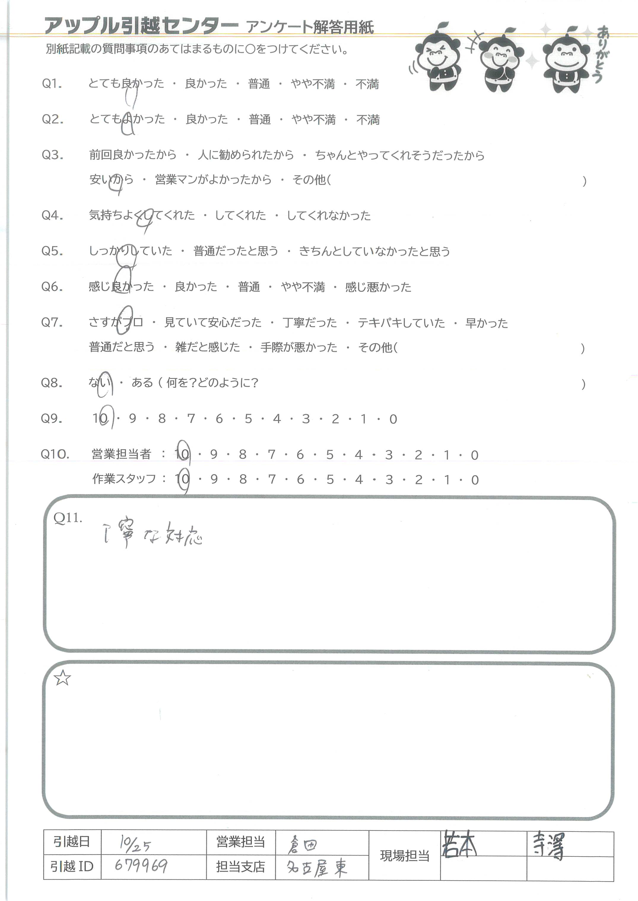 引越し日:2020年10月25日 エリア:愛知県名古屋市北区