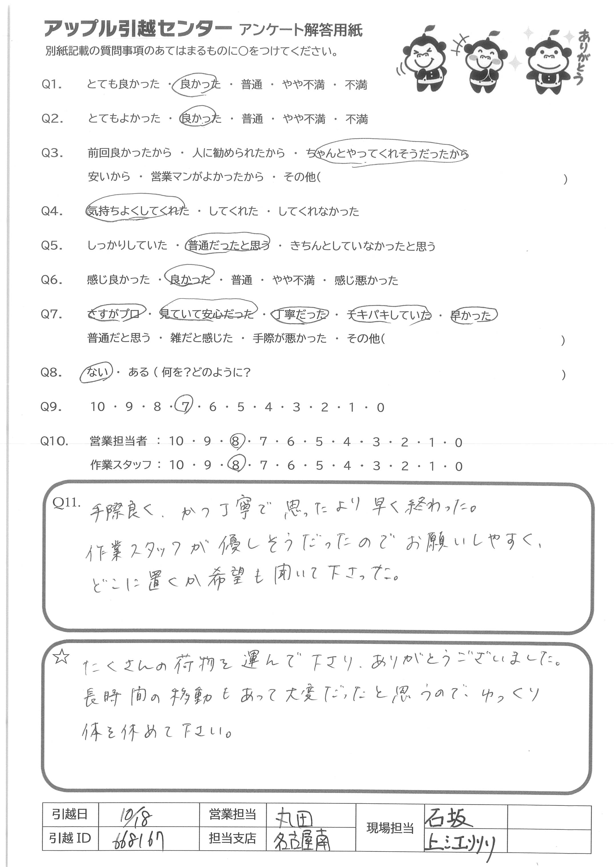 引越し日:2020年10月18日 エリア:愛知県名古屋市天白区