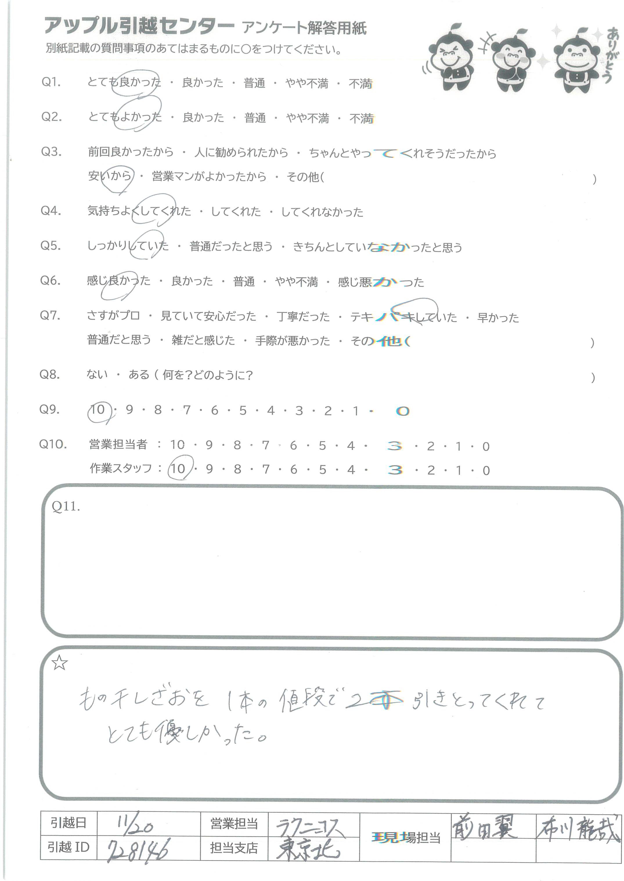 引越し日:2020年11月19日 エリア:東京都葛飾区