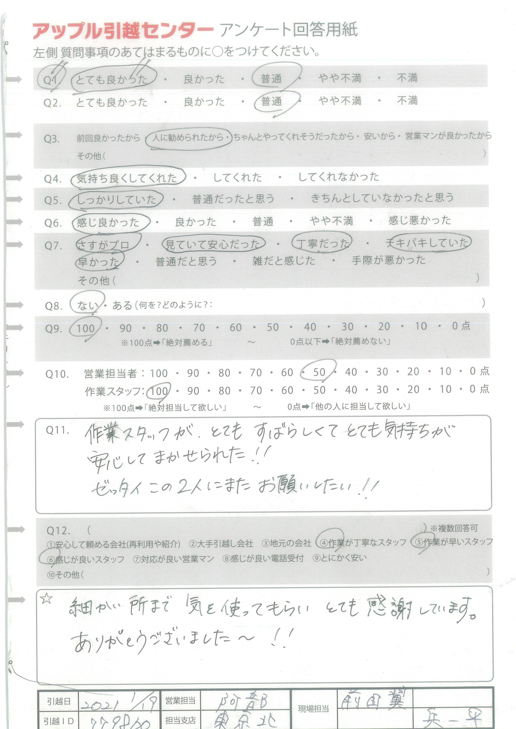 引越し日:2021年01月19日 エリア:東京都墨田区