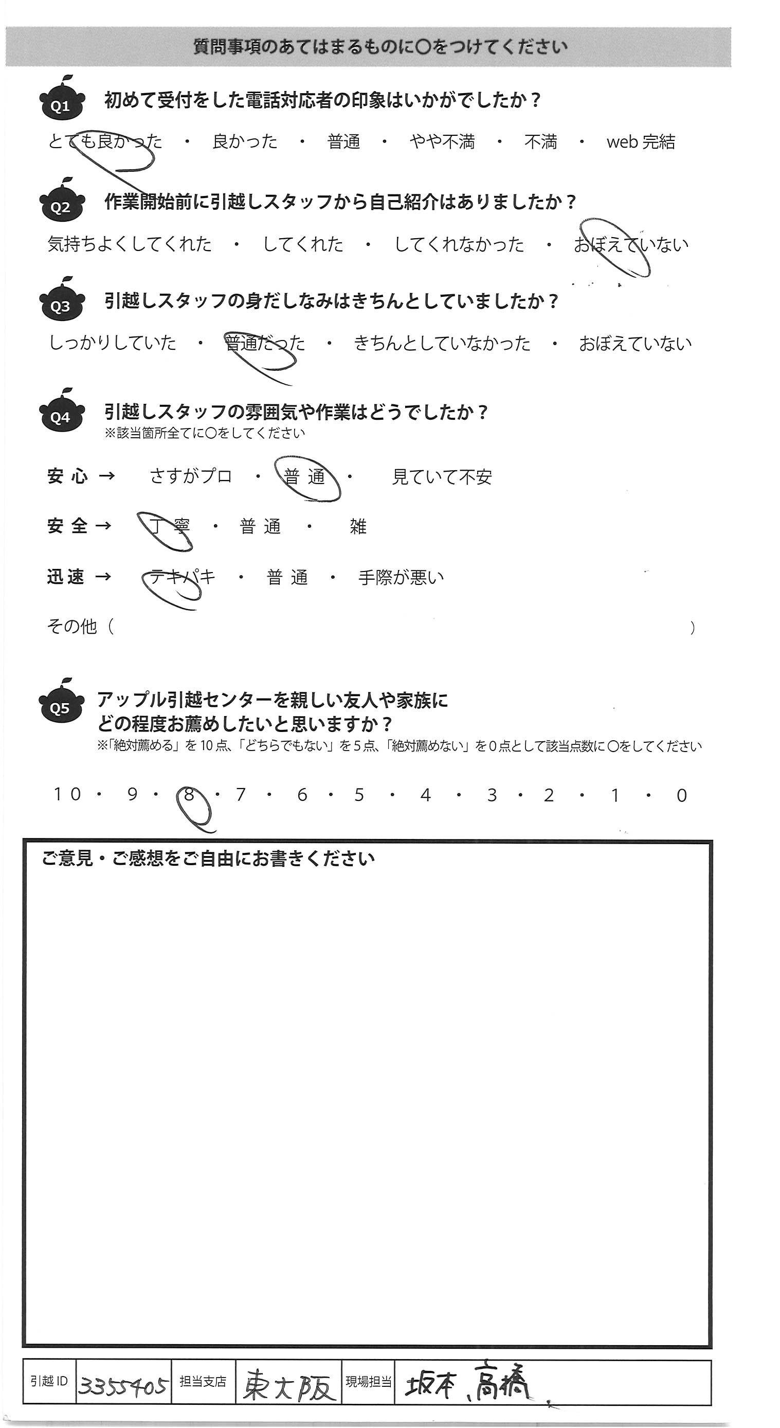 アップル引越センターでは、面映いお褒めの言葉も、胸に突き刺さるお叱りのコメントも、