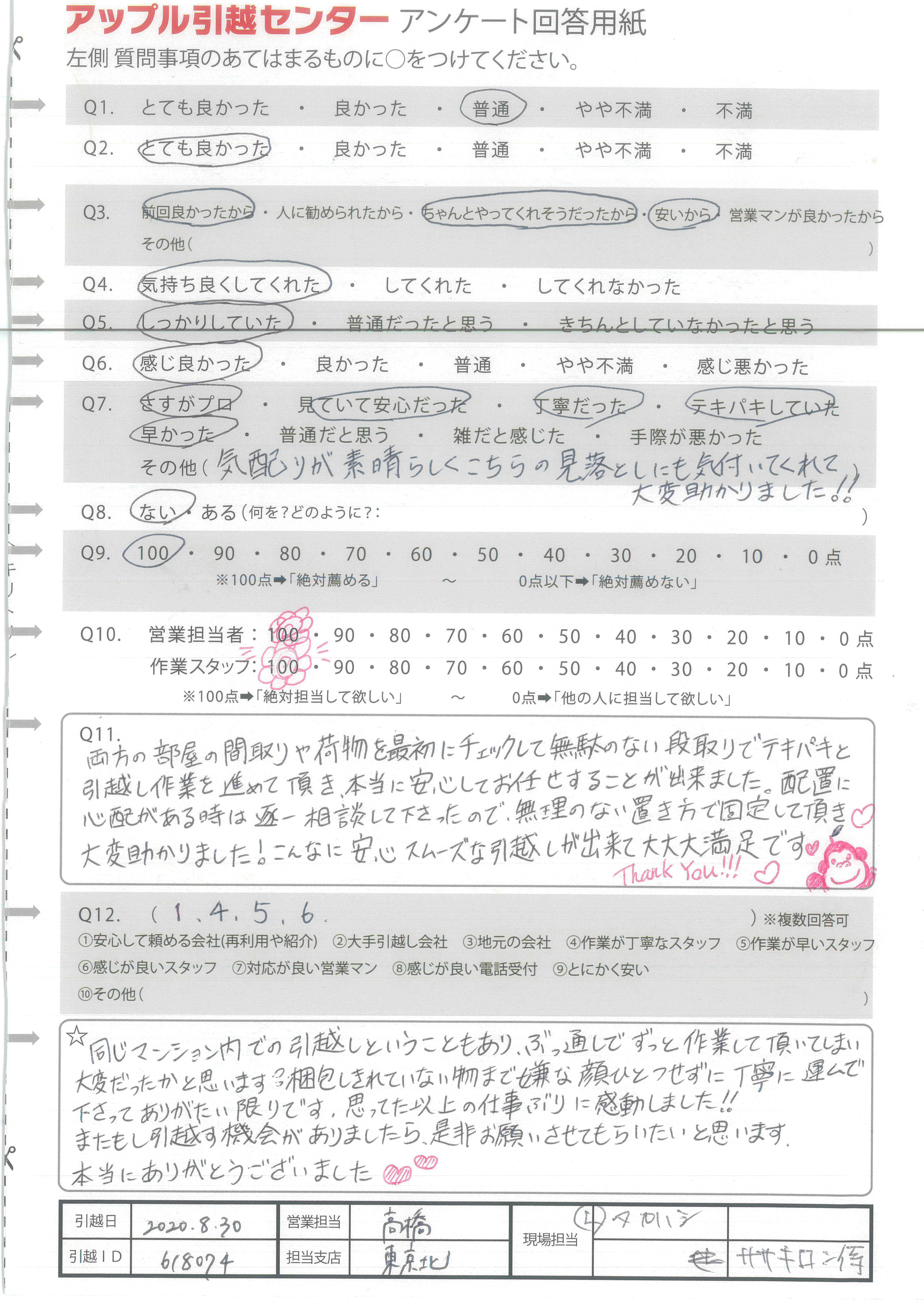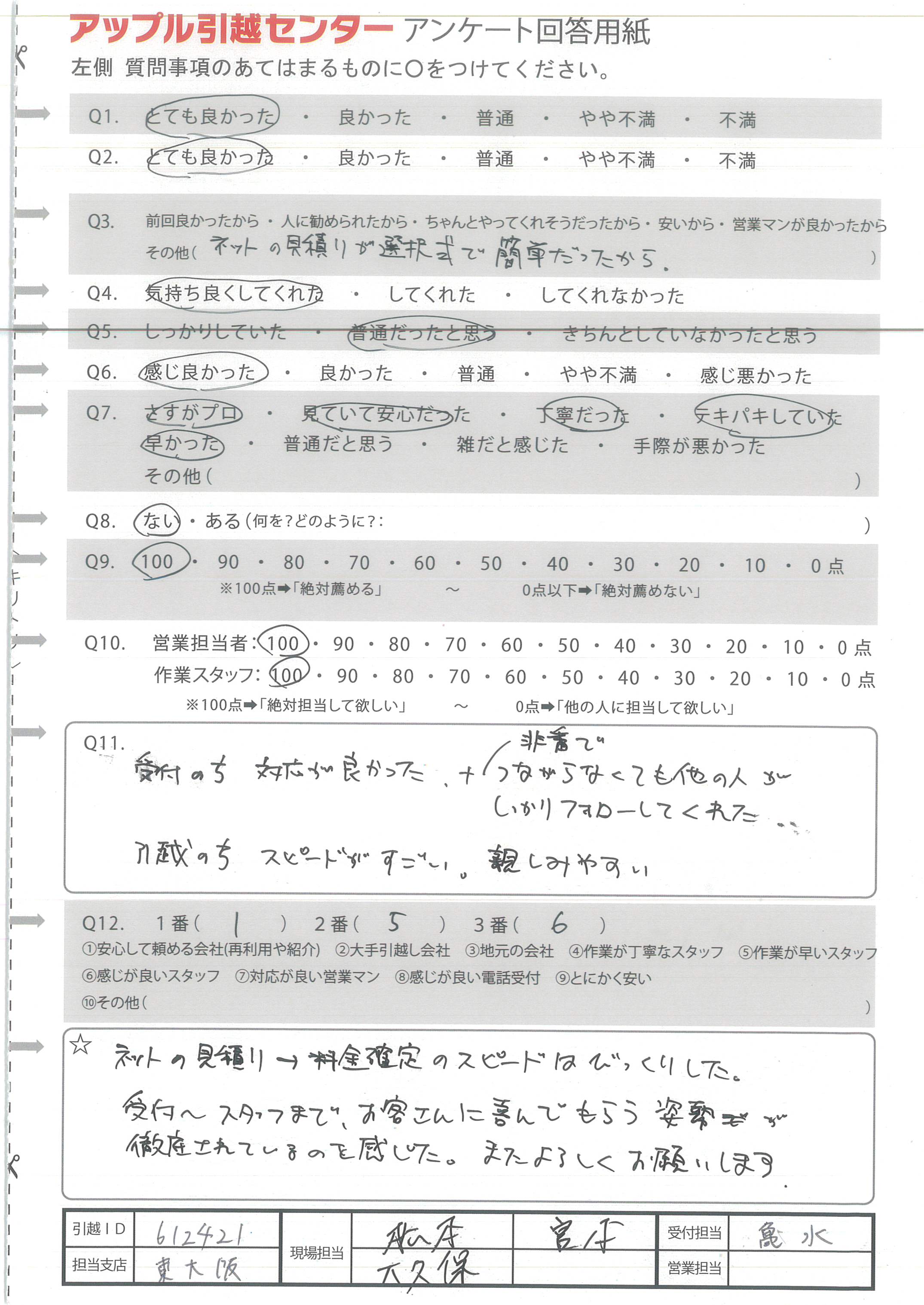 アップル引越センターでは、面映いお褒めの言葉も、胸に突き刺さるお叱りのコメントも、