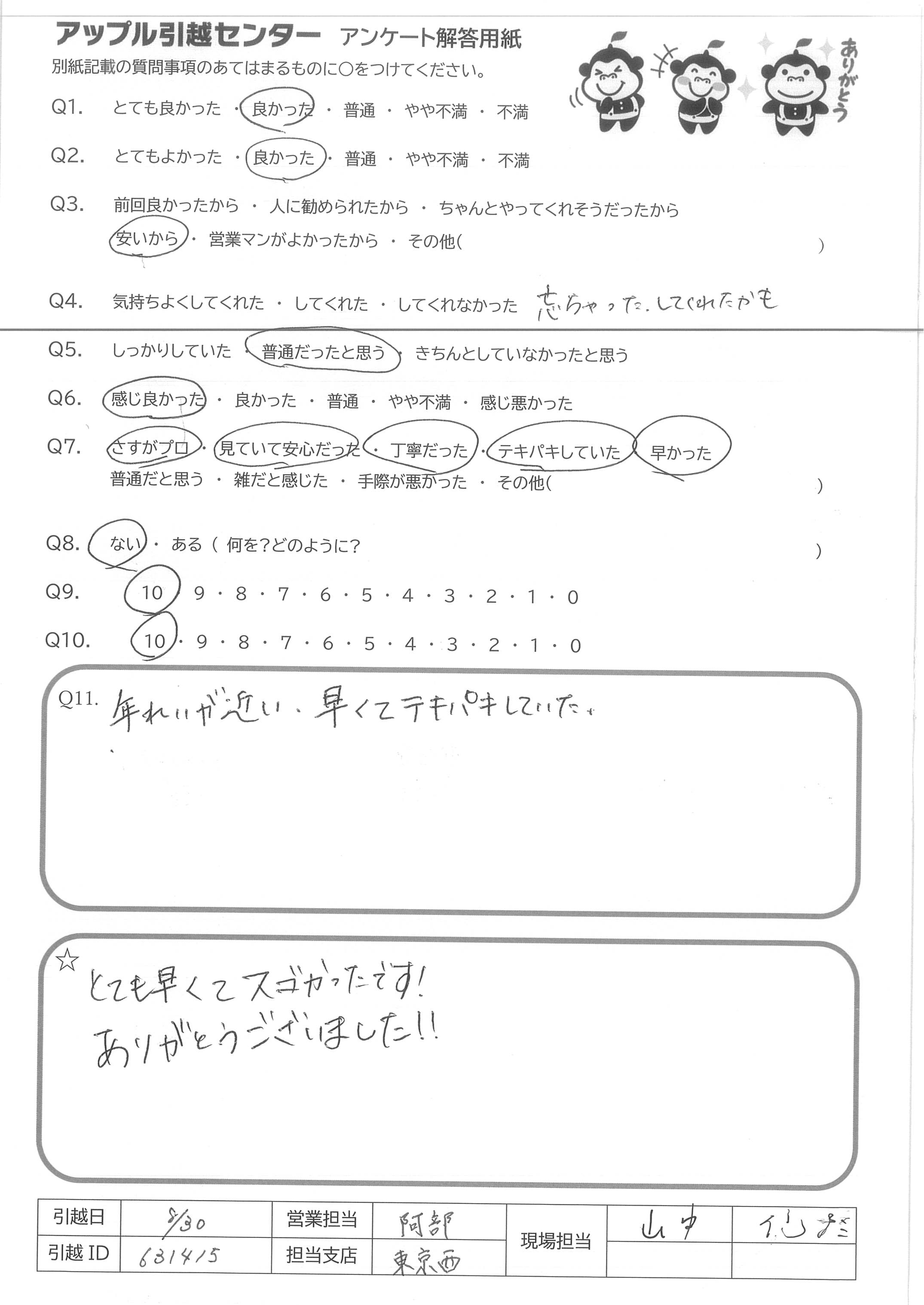 A.とても早くてスゴかったです! ありがとうございました!!