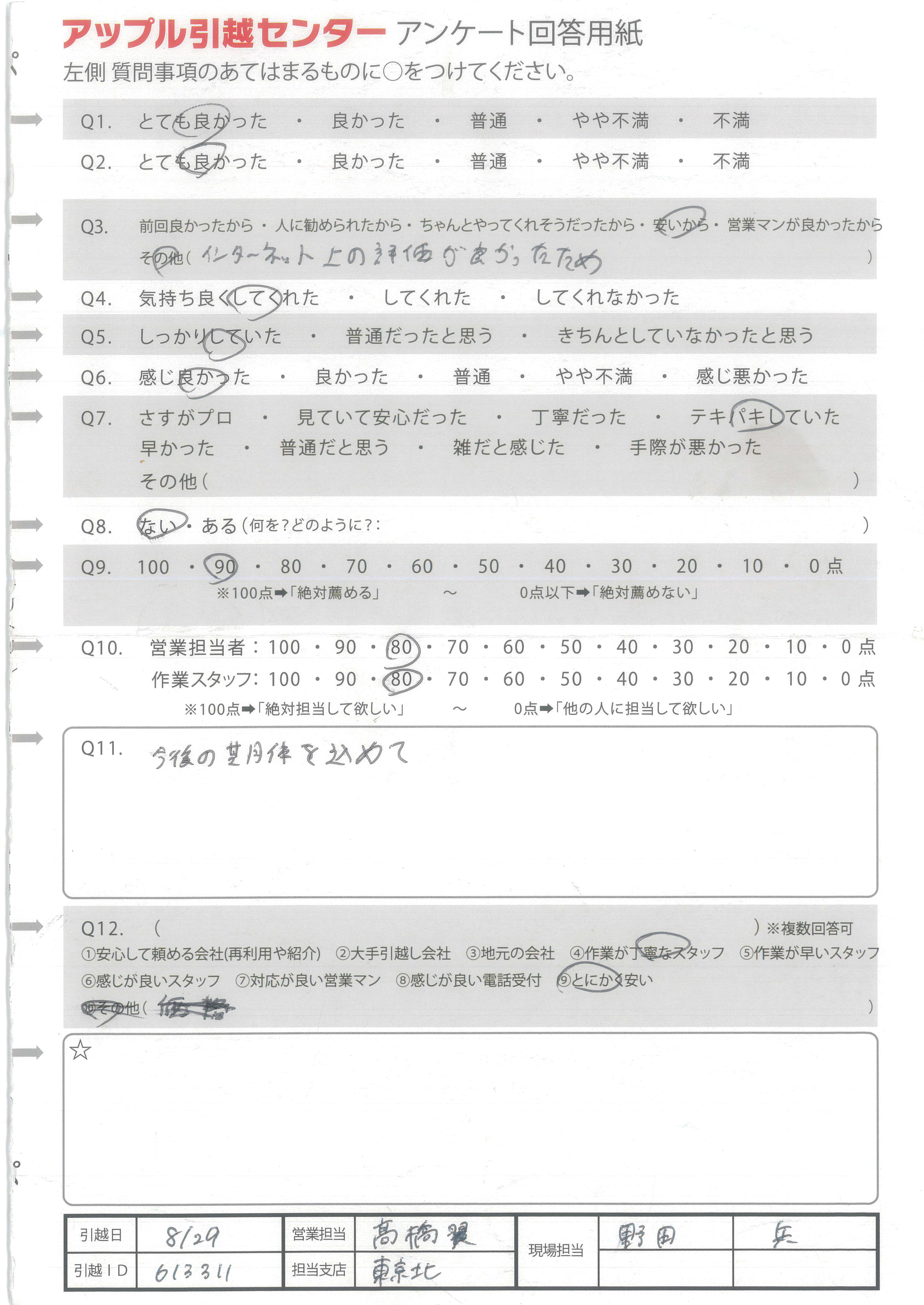 引越し日:2020年08月29日 エリア:東京都豊島区