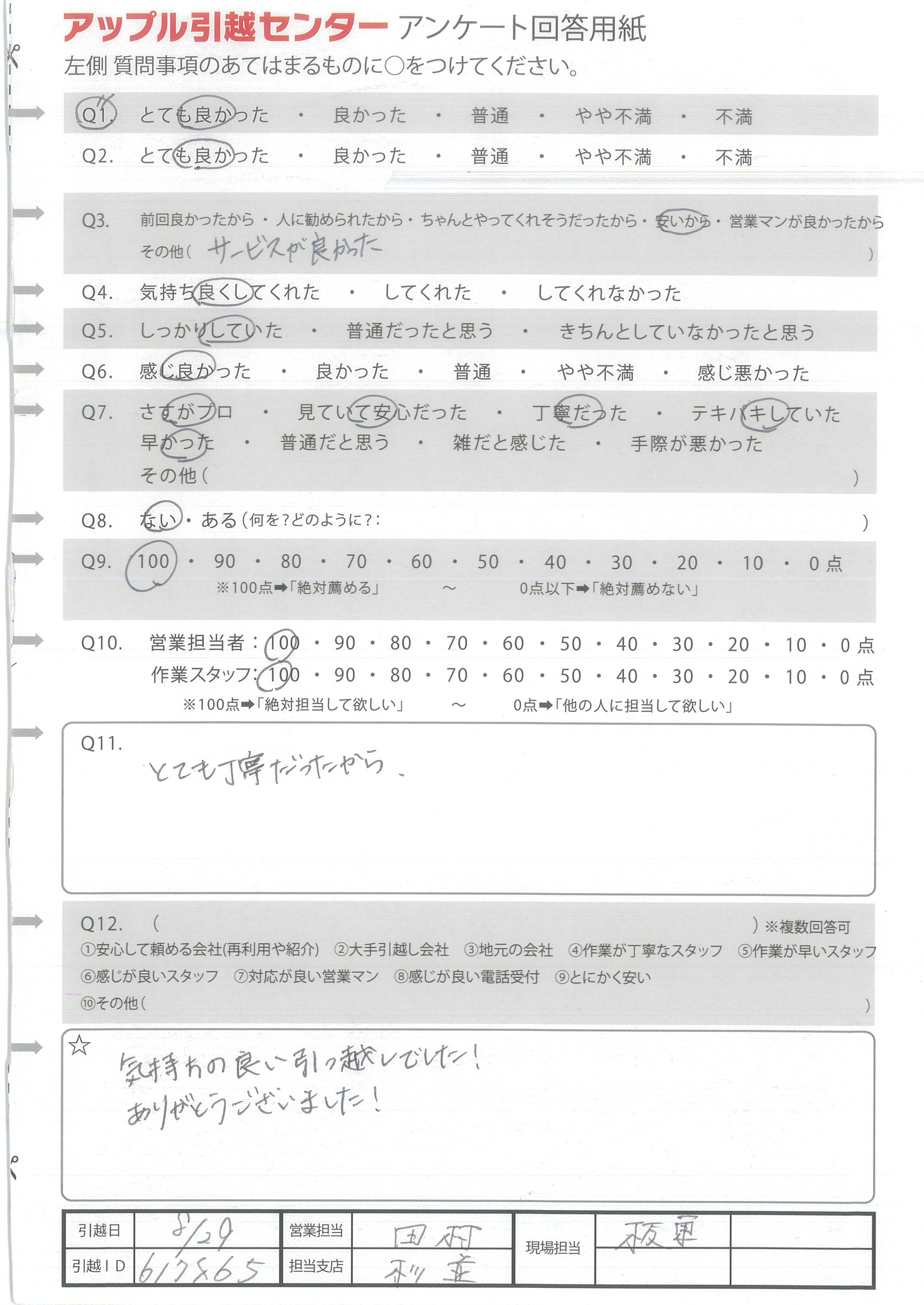 A.気持ちの良い引っ越しでした! ありがとうございました!