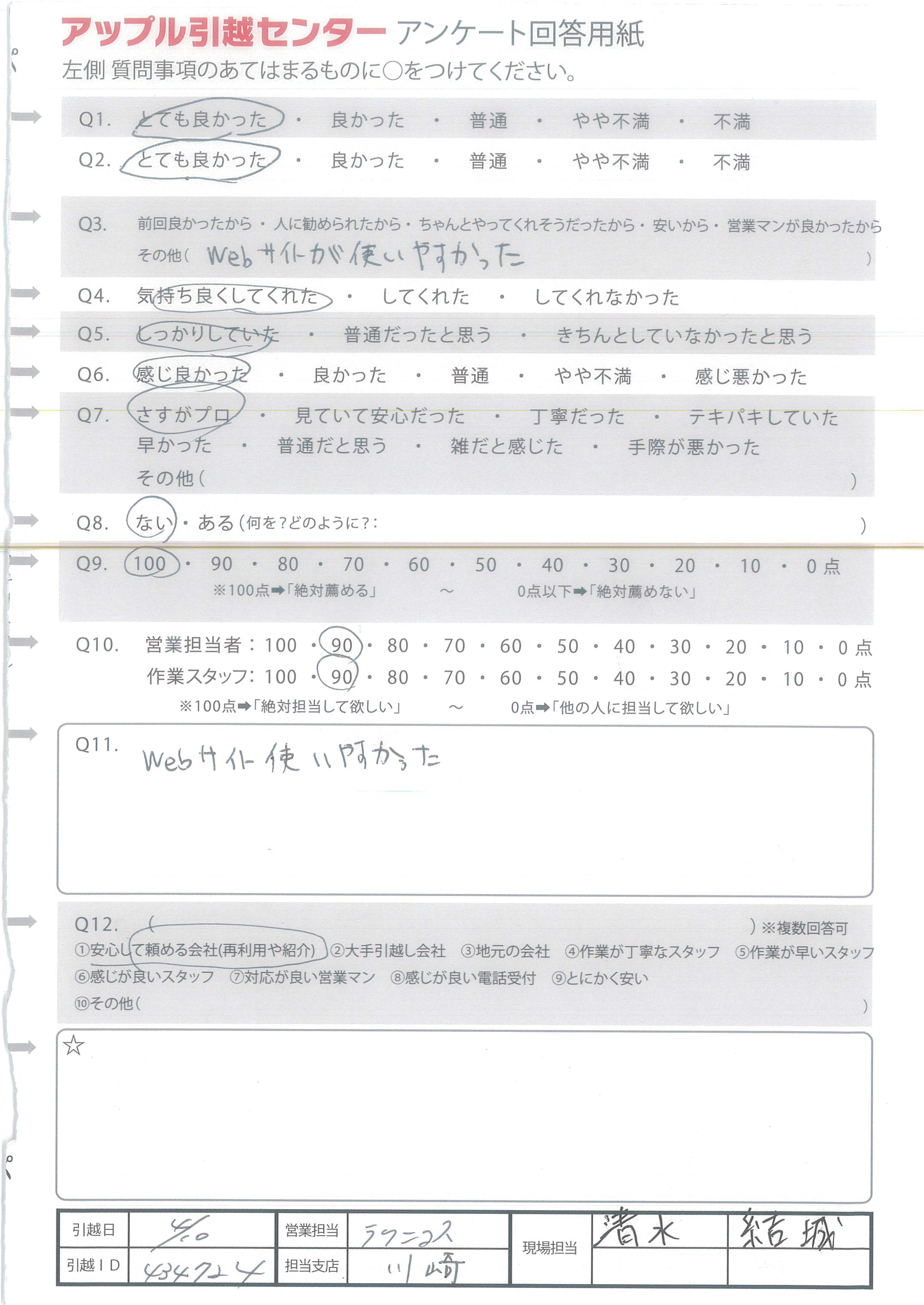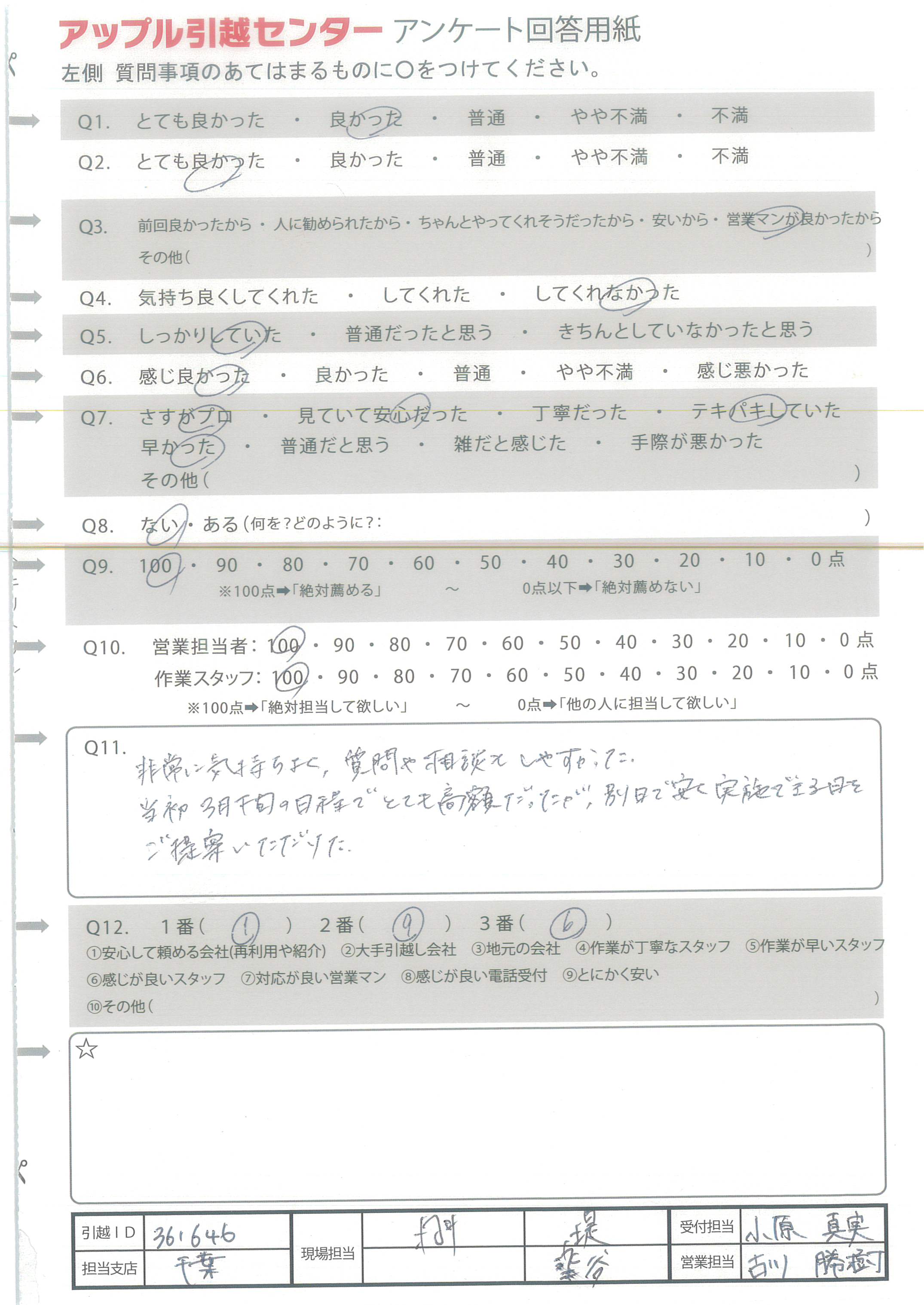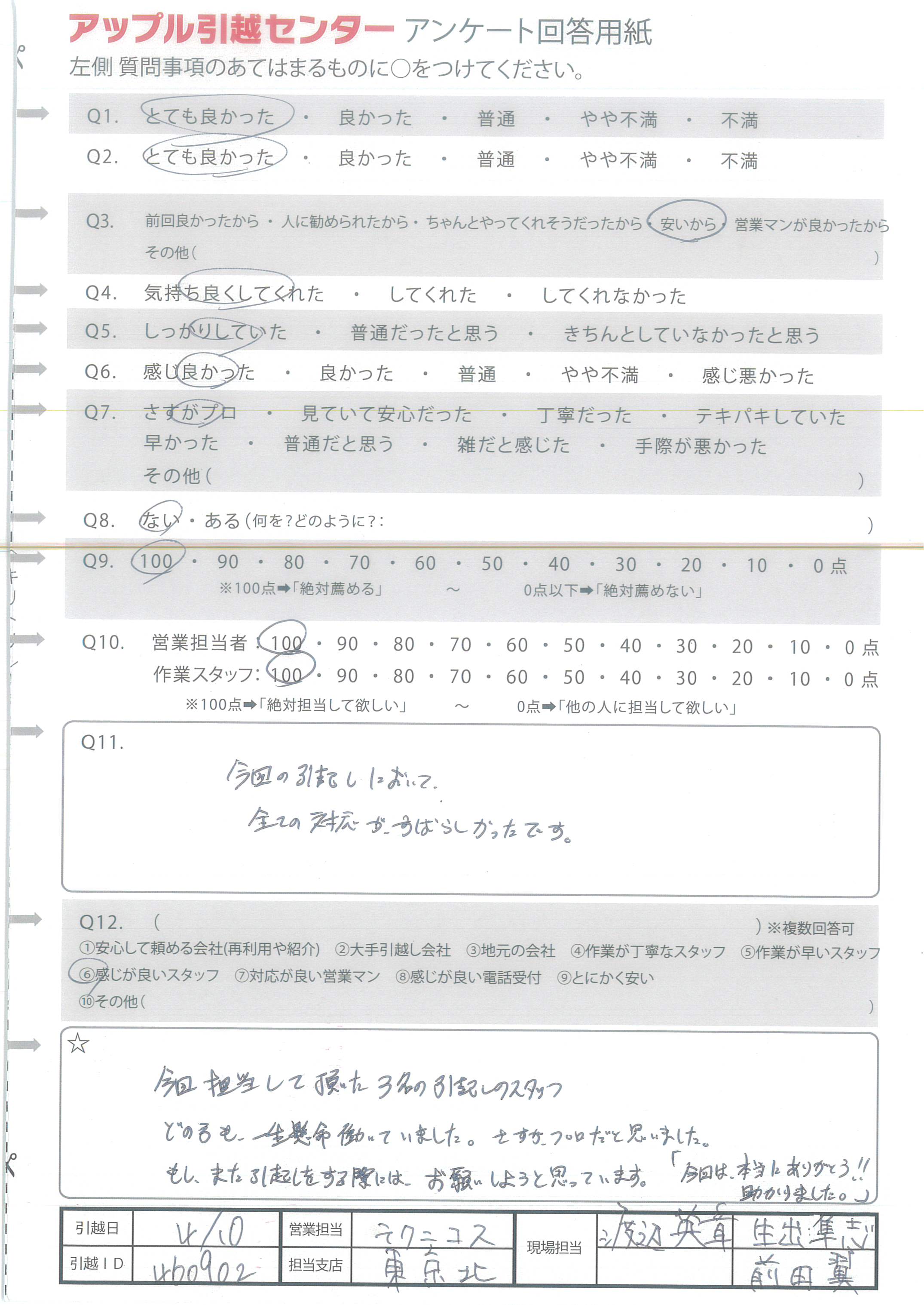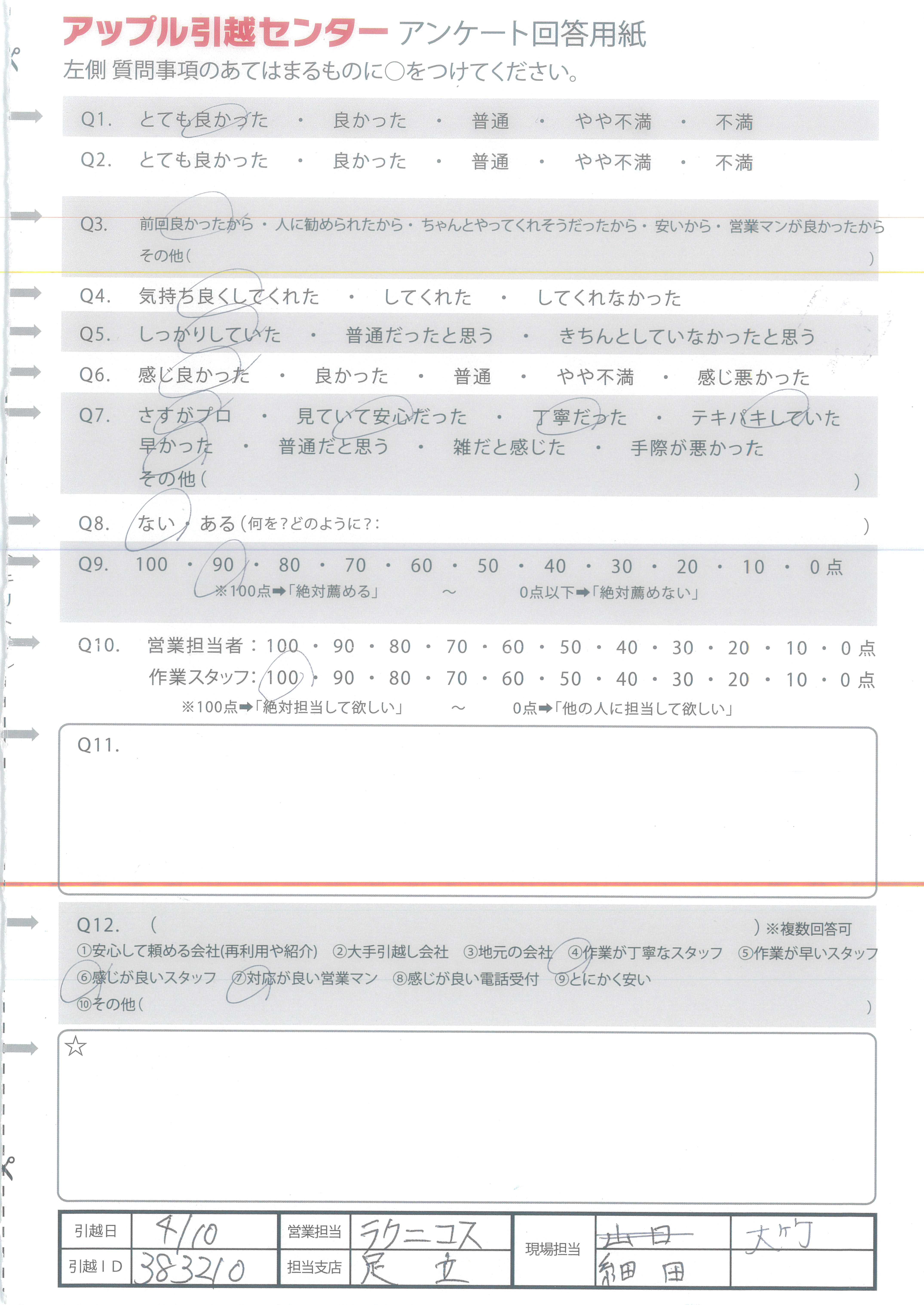 A.今回の引越しにおいて、全ての対応が、すばらしかったです。