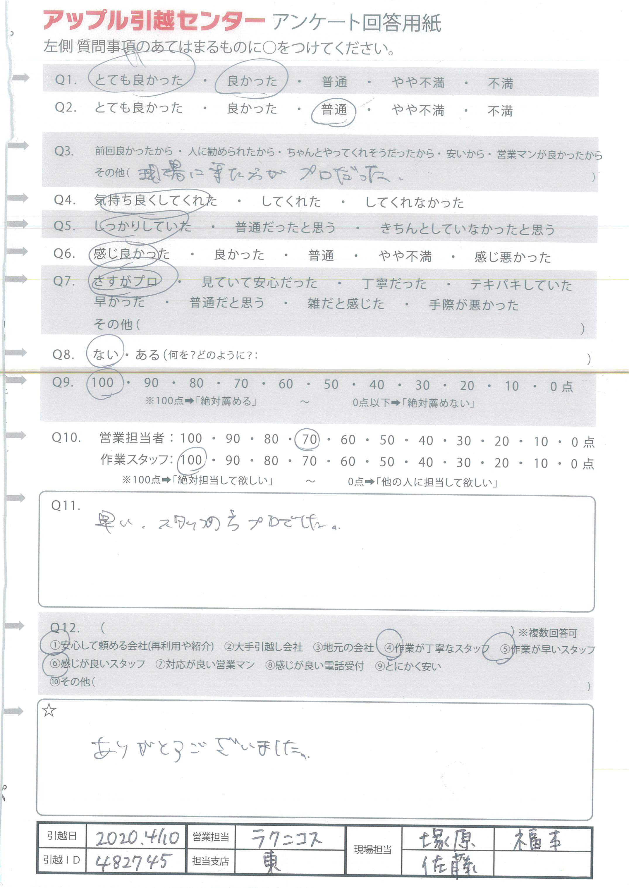 引越し日:2020年04月10日 エリア:東京都杉並区