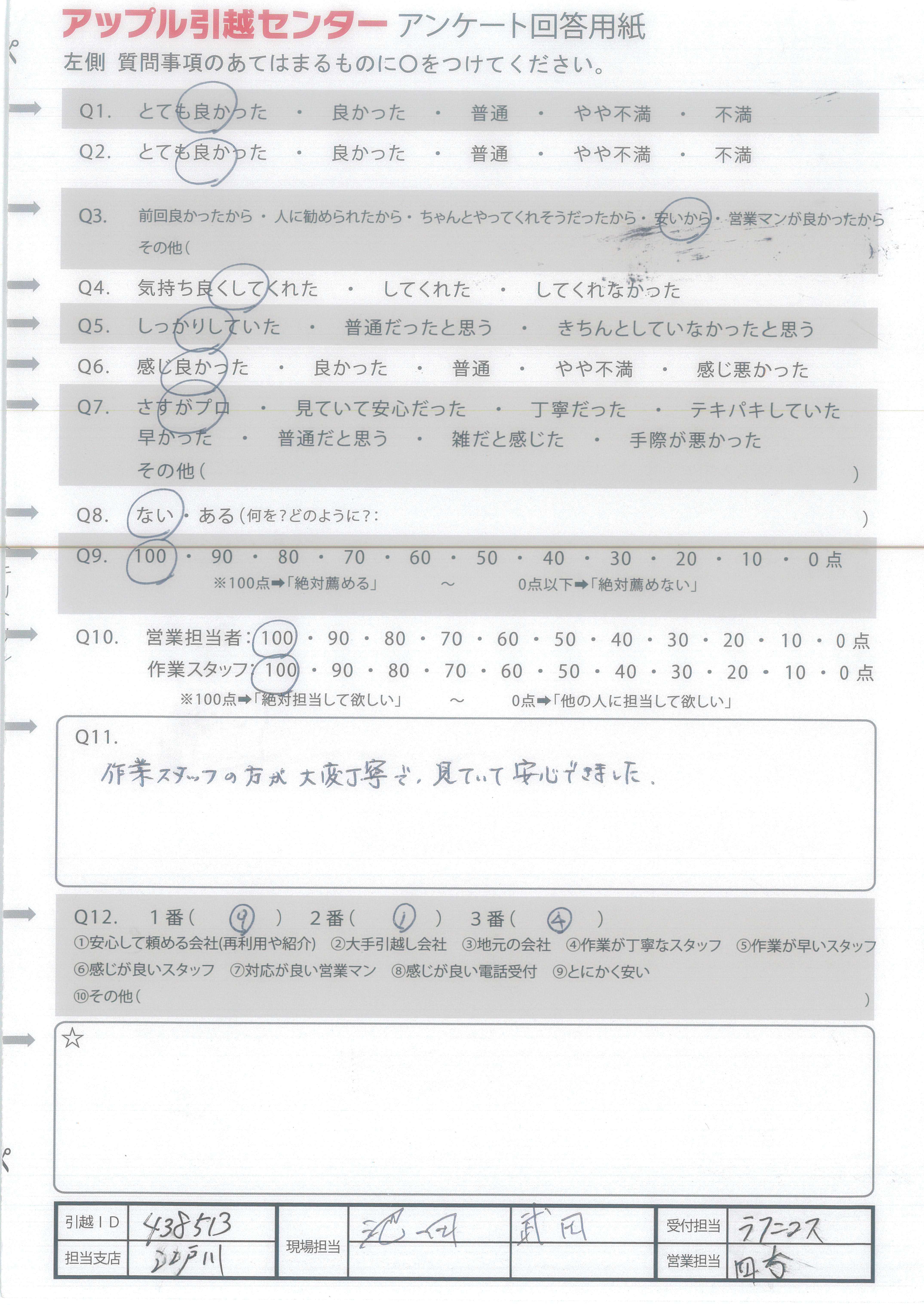 A.対応が良く、安心して引っ越しできました。