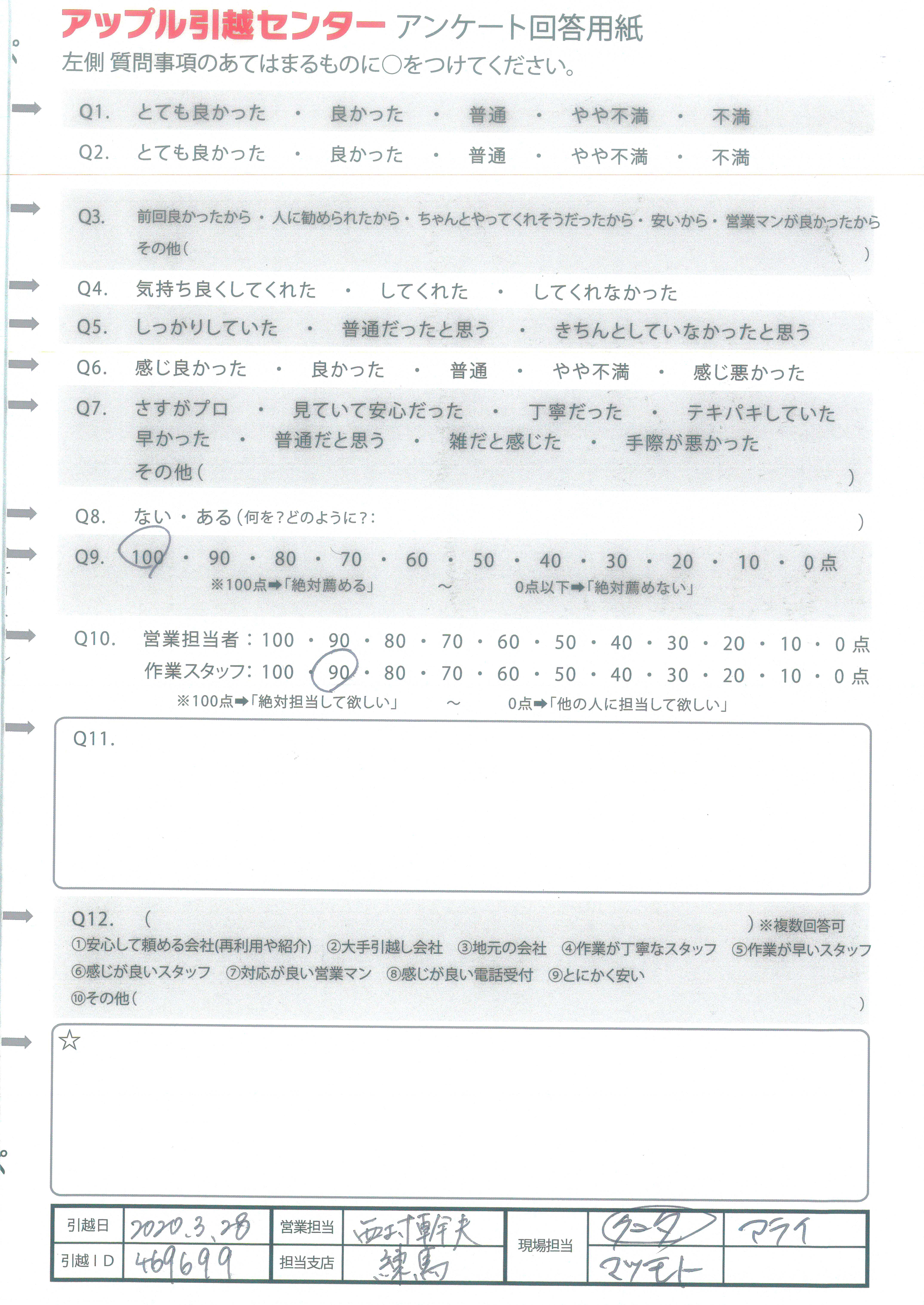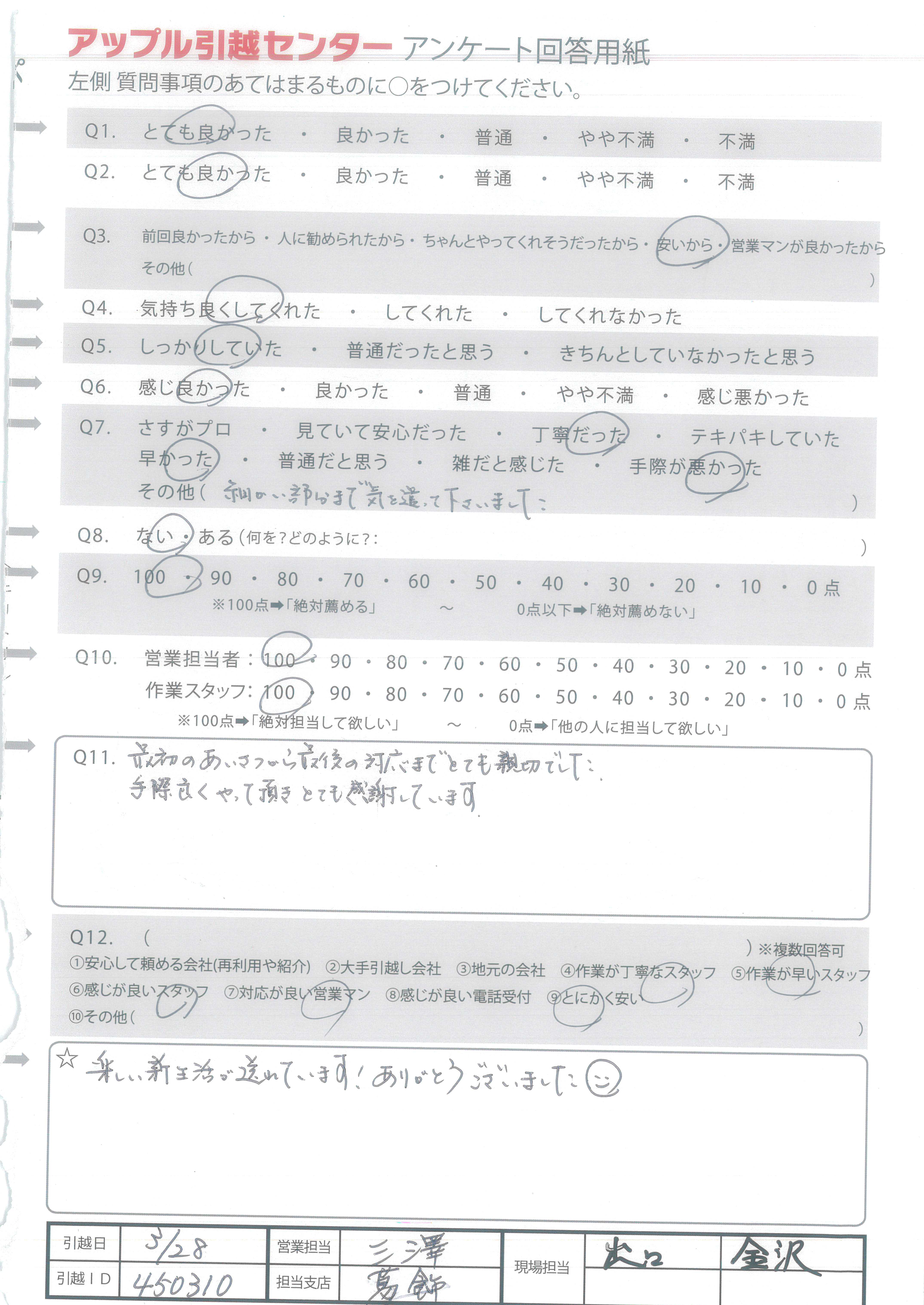 A.次回また引越しをする際も、アップルさんにお願いしたいと思いました。