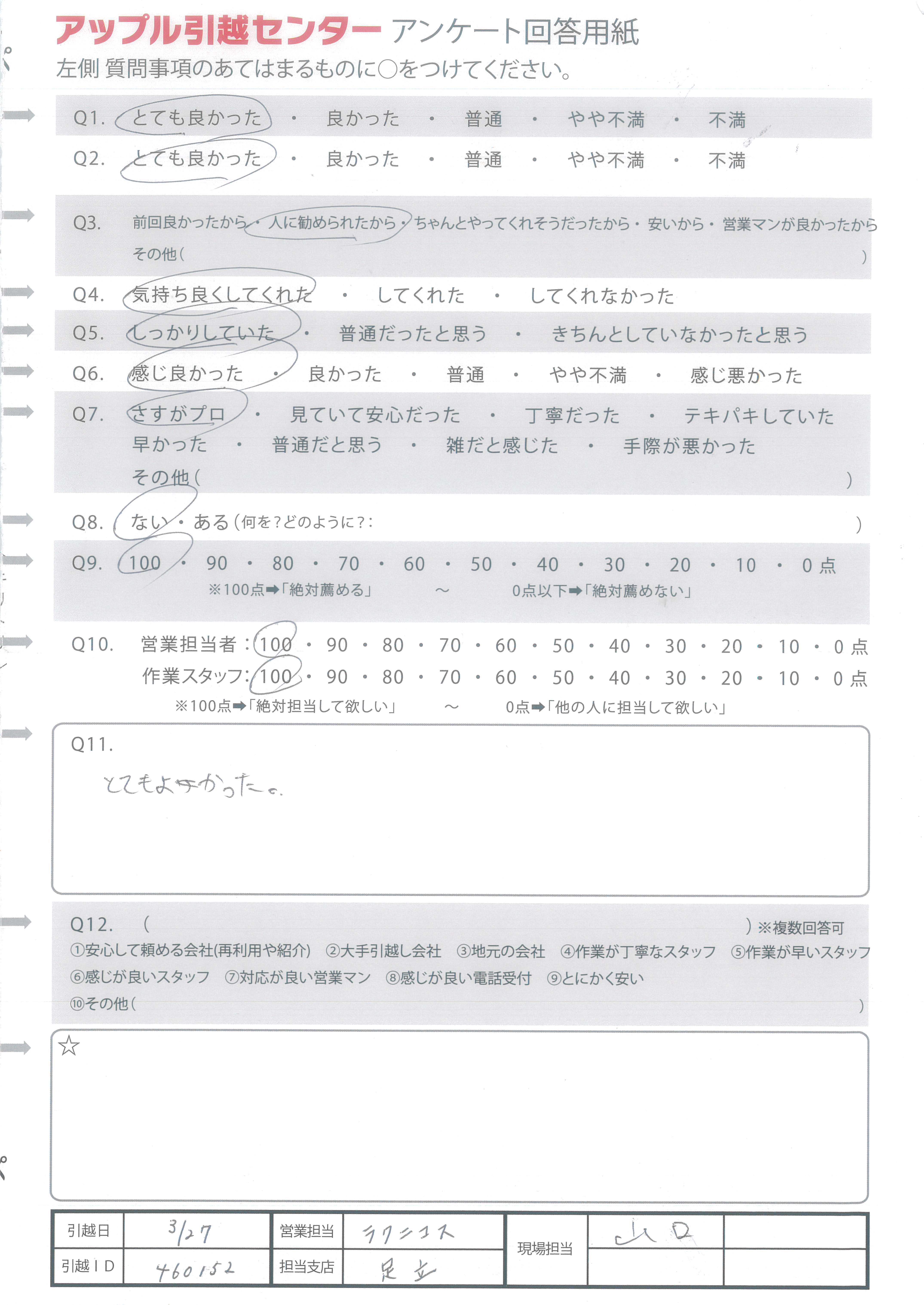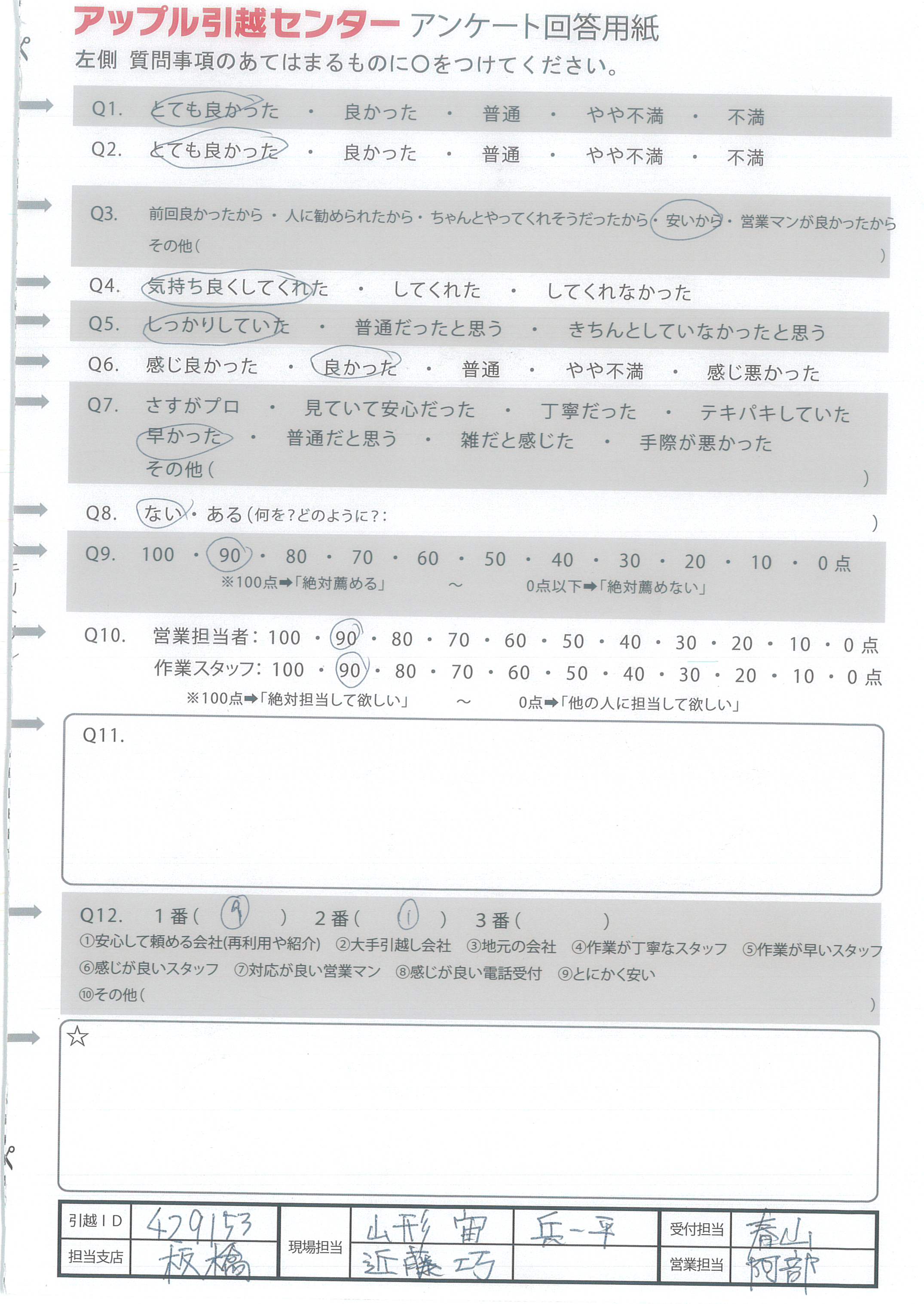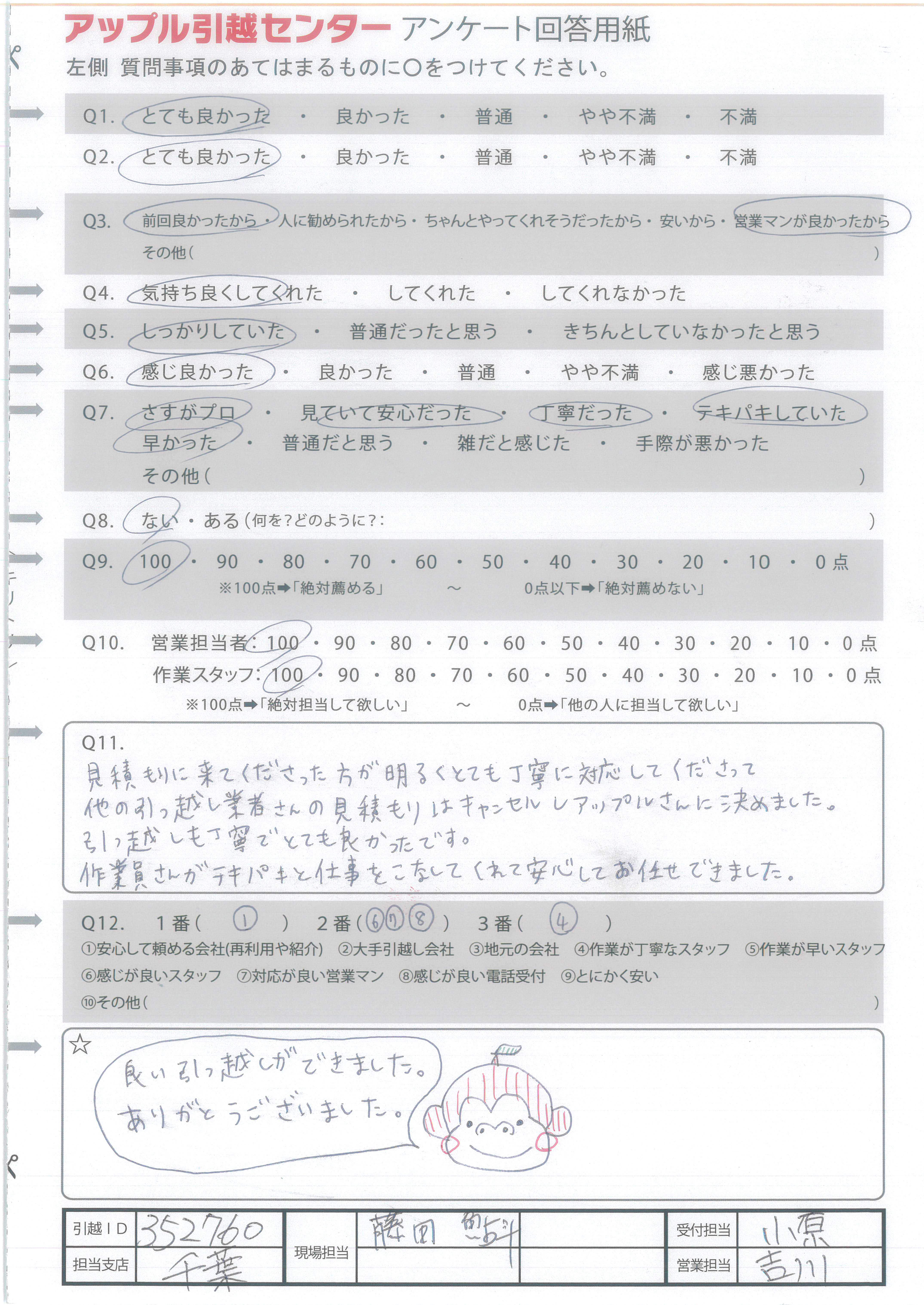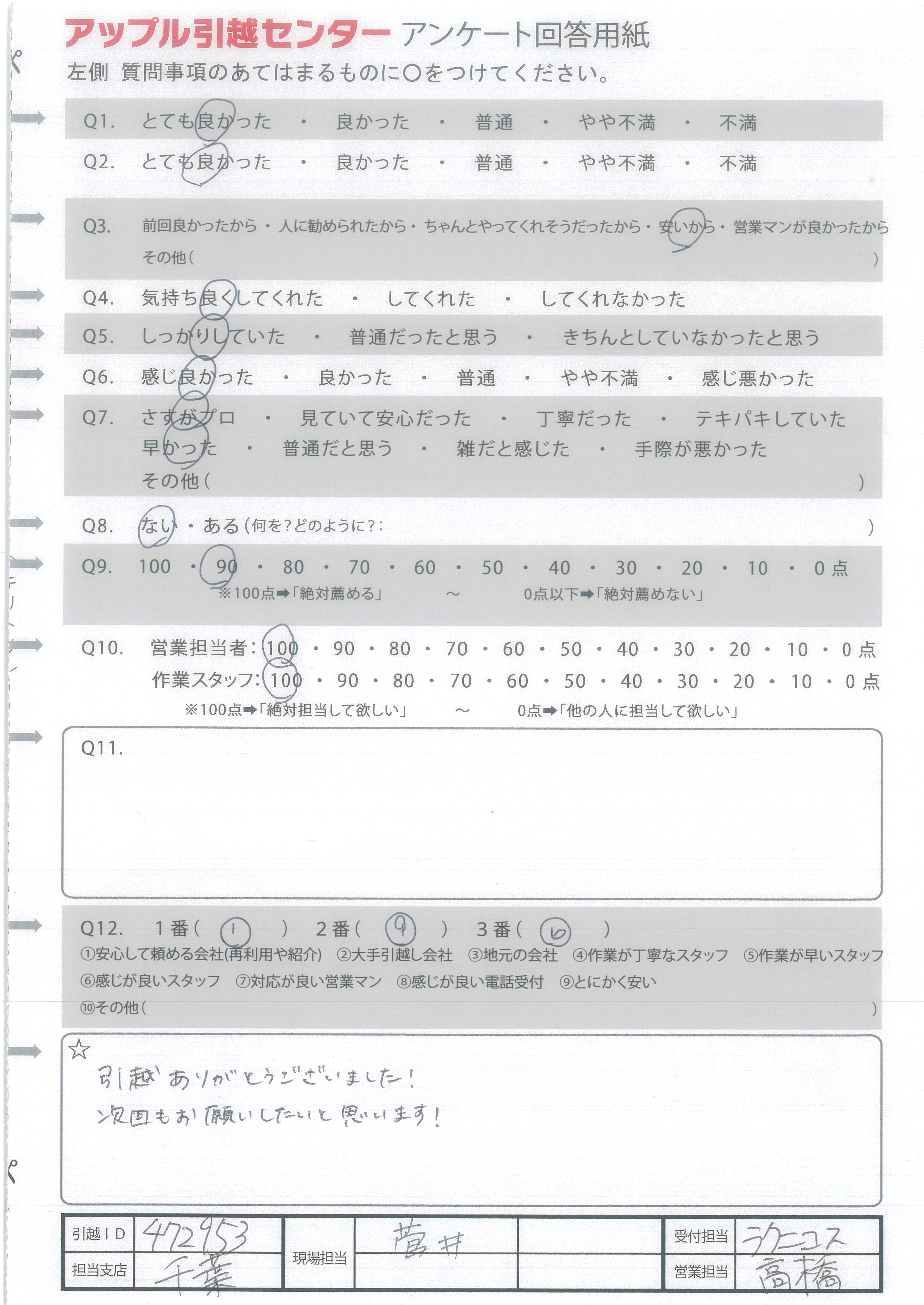 A.引越ありがとうございました! 次回もお願いしたいと思います!