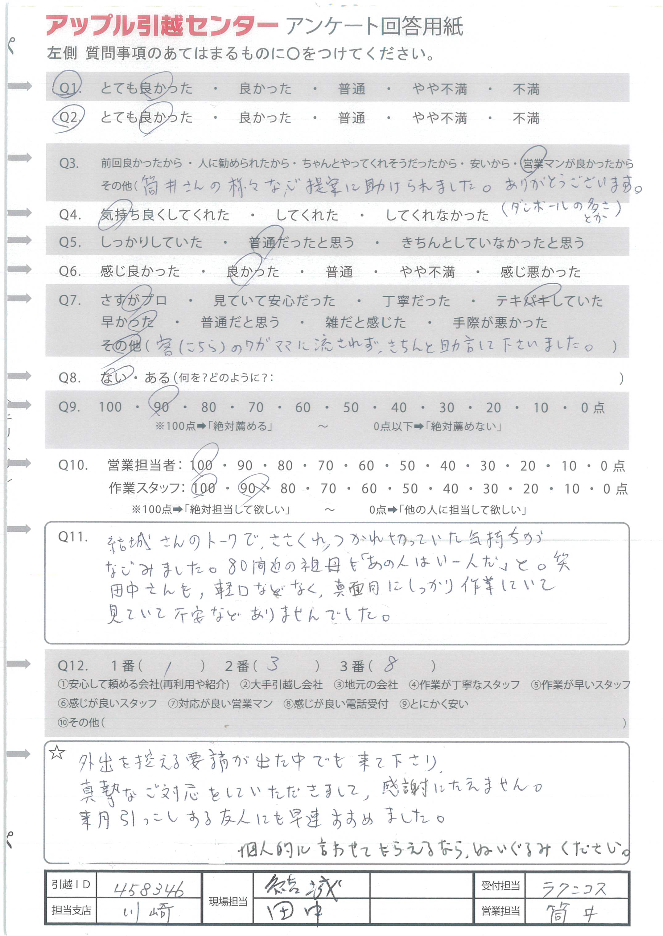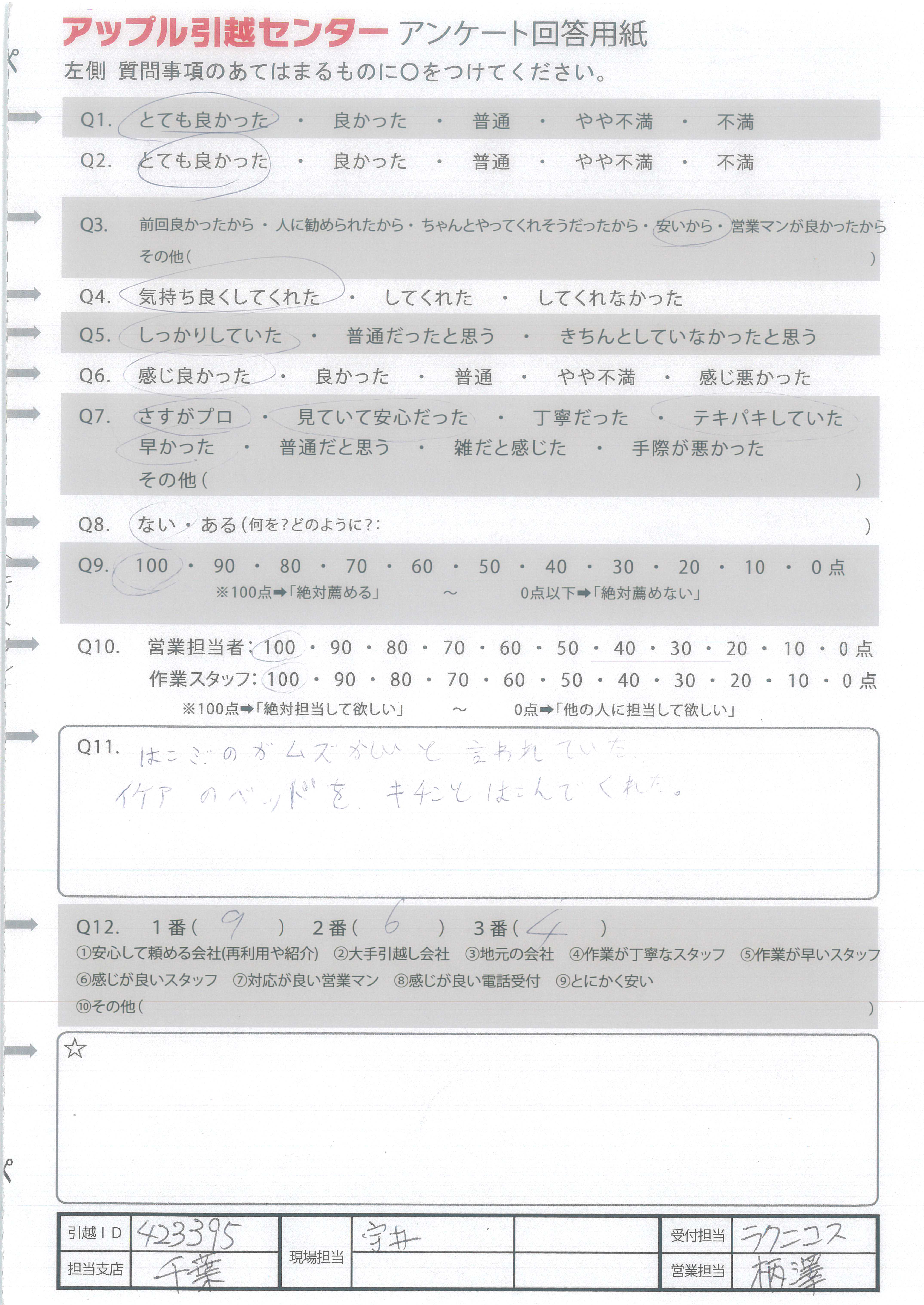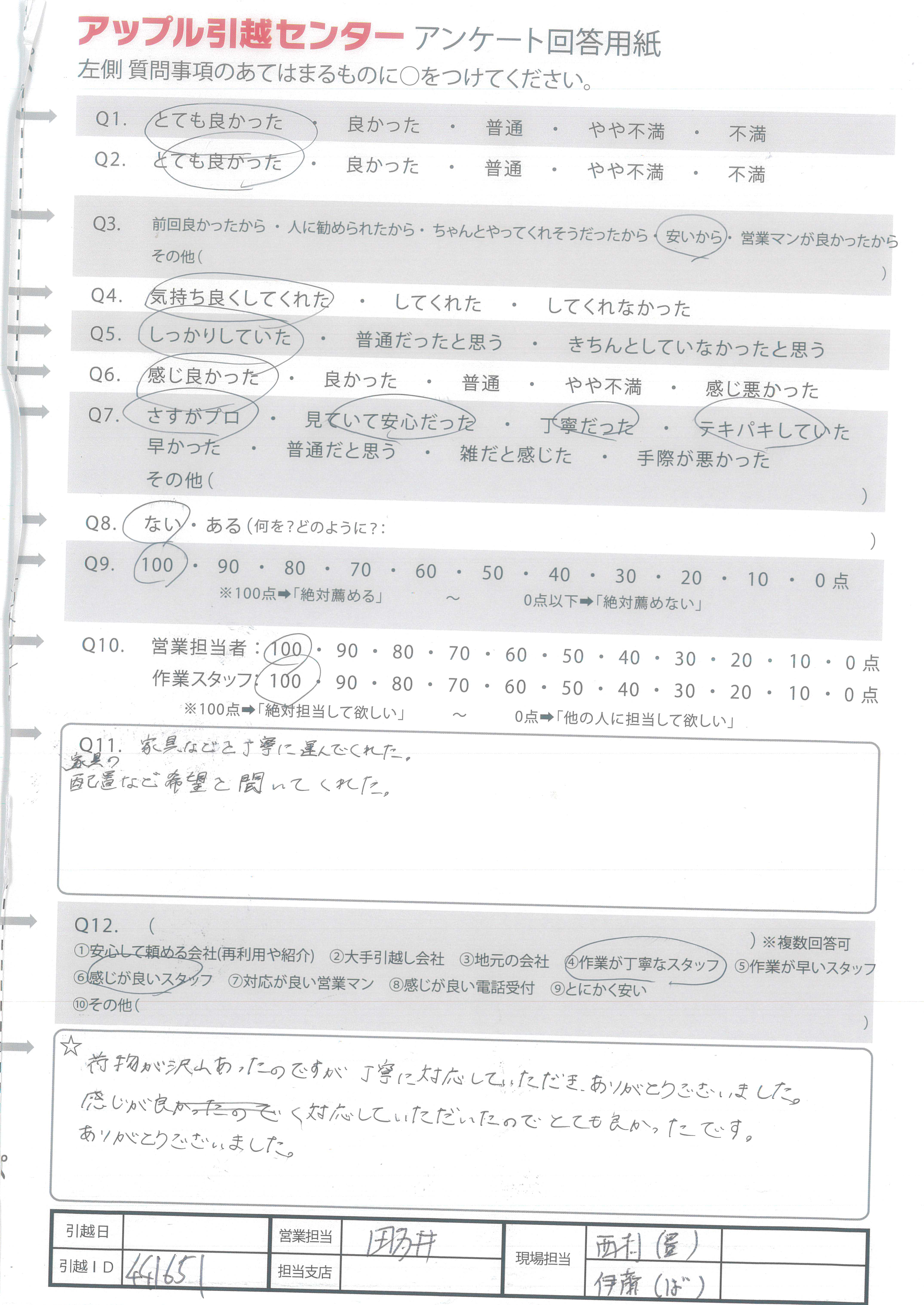 A.良い引っ越しができました。ありがとうございました。