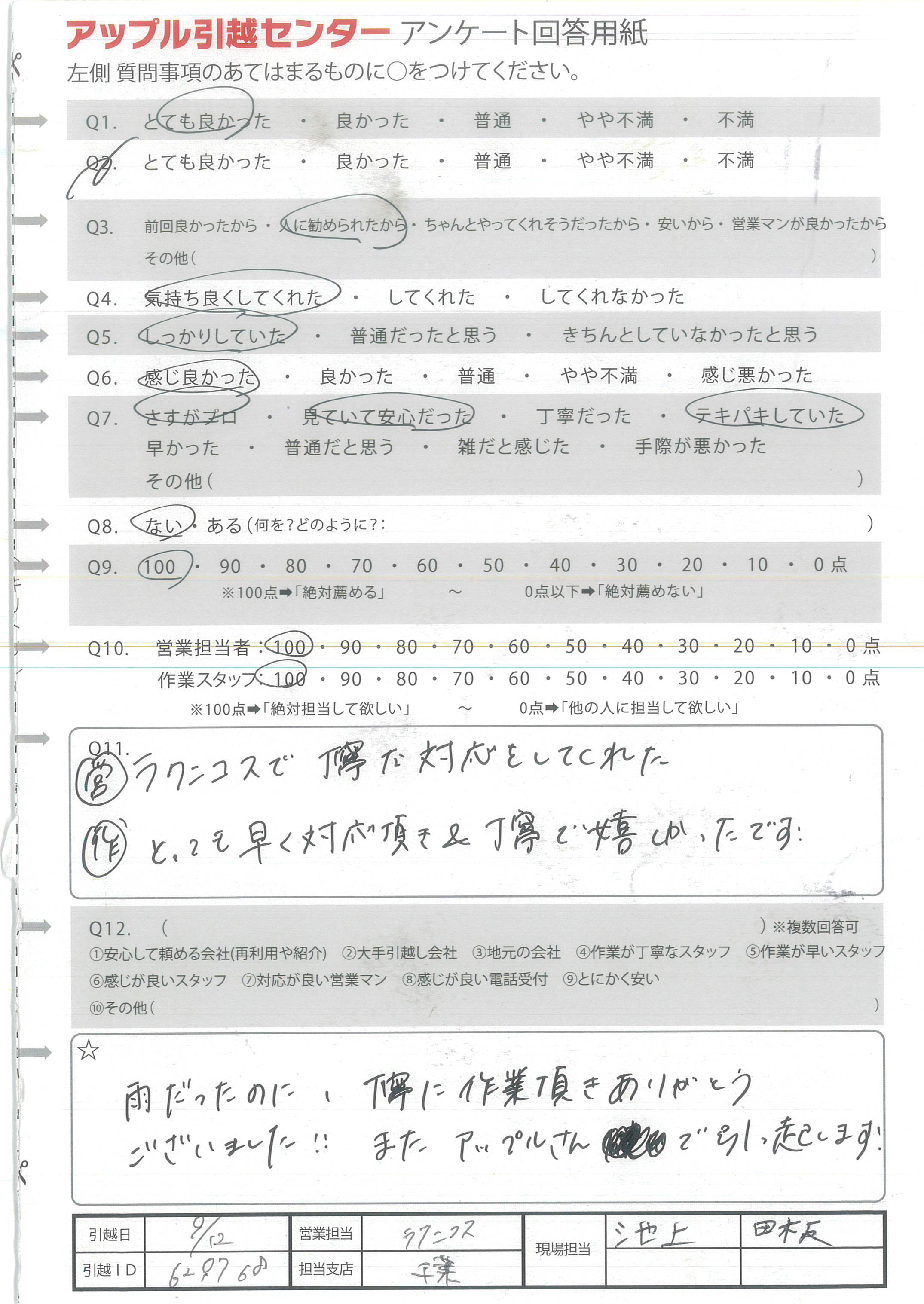 アップル引越センターでは、面映いお褒めの言葉も、胸に突き刺さるお叱りのコメントも、