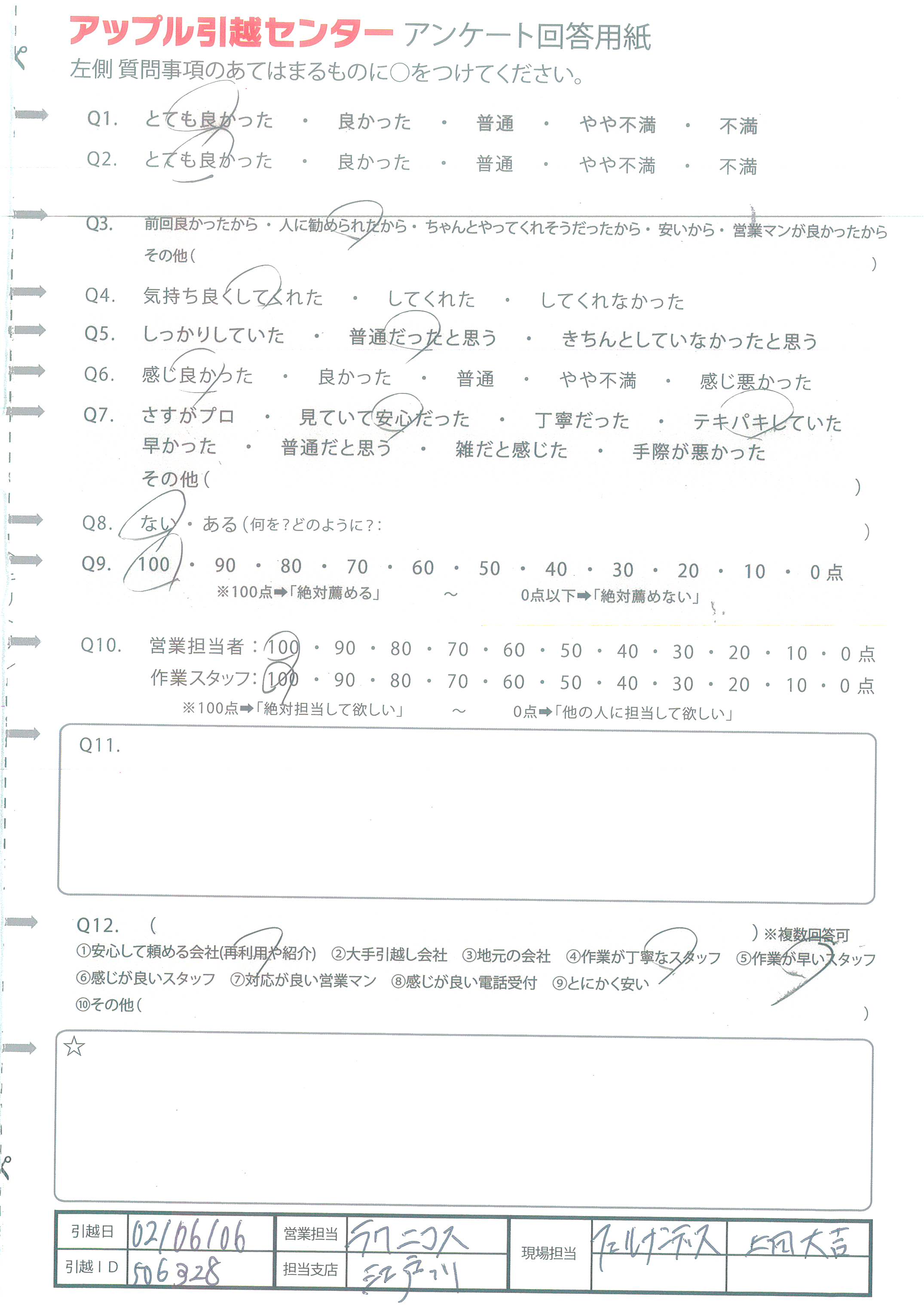A.Webの申し込みもわかりやすく、電話対応も当日の担当の方もとても感じが良くて安心して引っ越しできました。ありがとうございました。