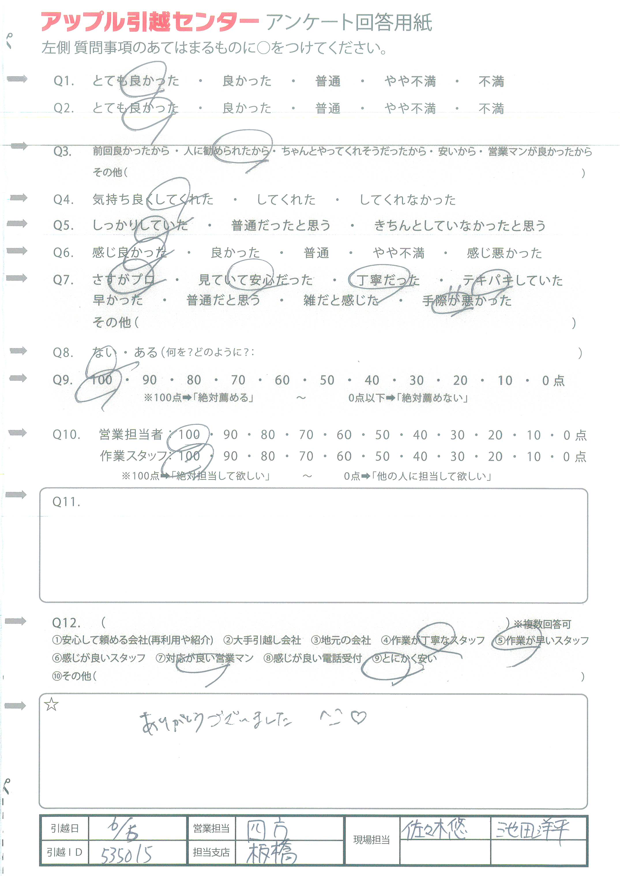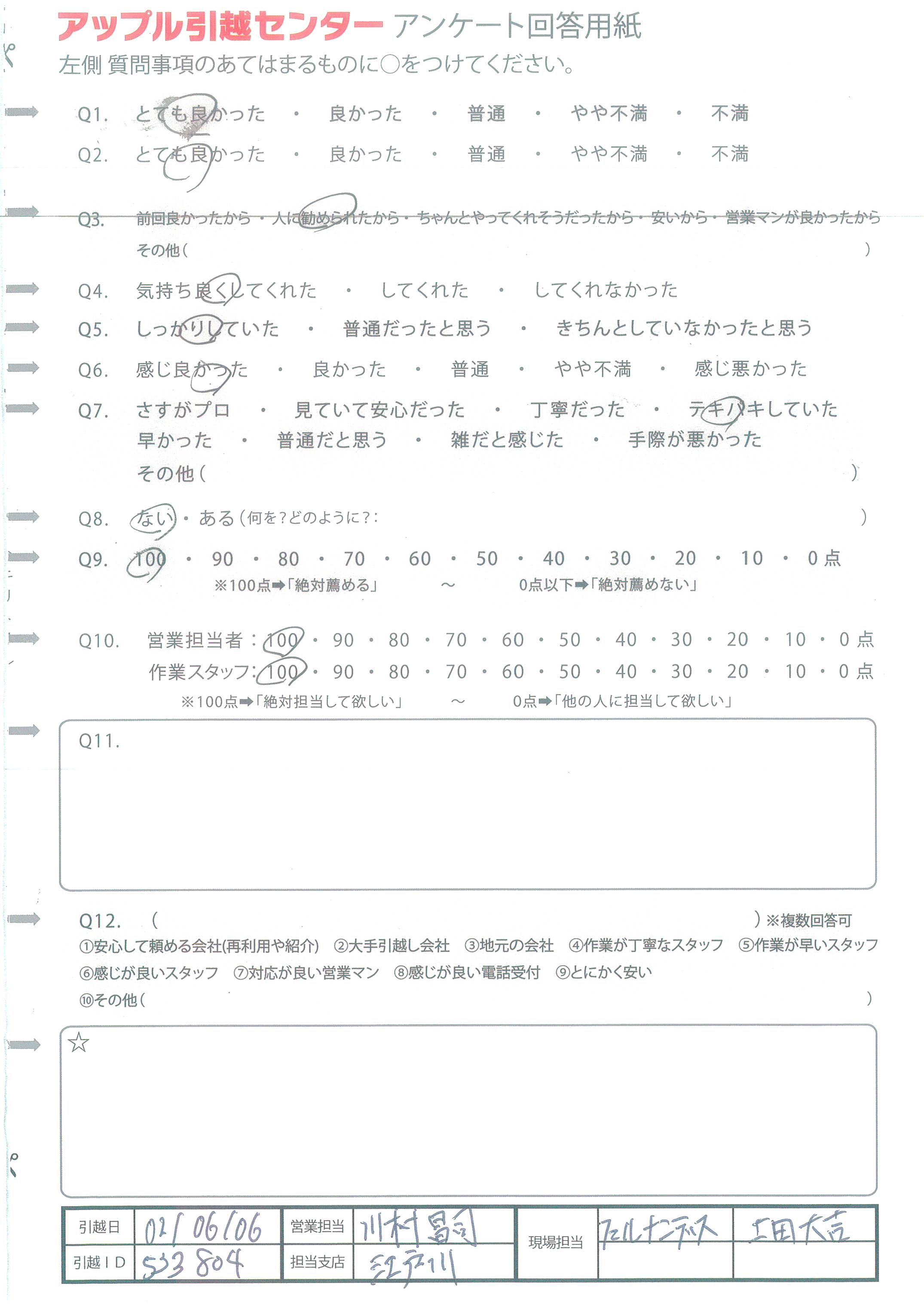 アップル引越センターでは、面映いお褒めの言葉も、胸に突き刺さるお叱りのコメントも、