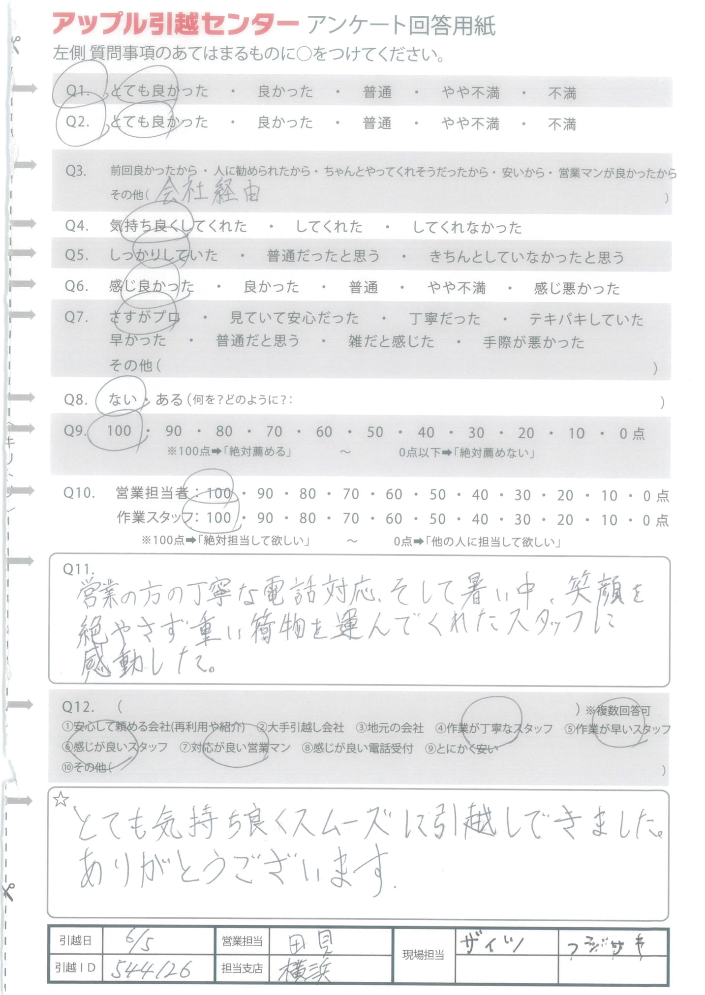 アップル引越センターでは、面映いお褒めの言葉も、胸に突き刺さるお叱りのコメントも、