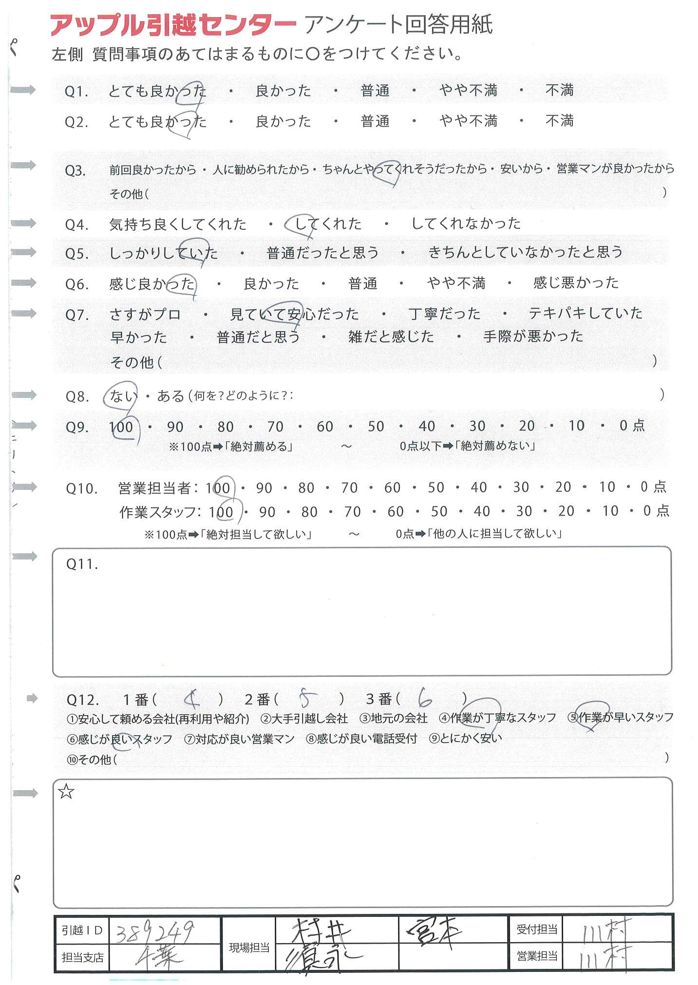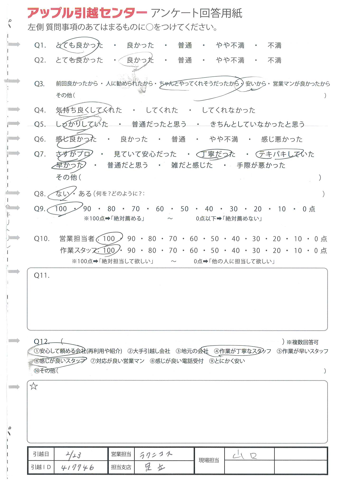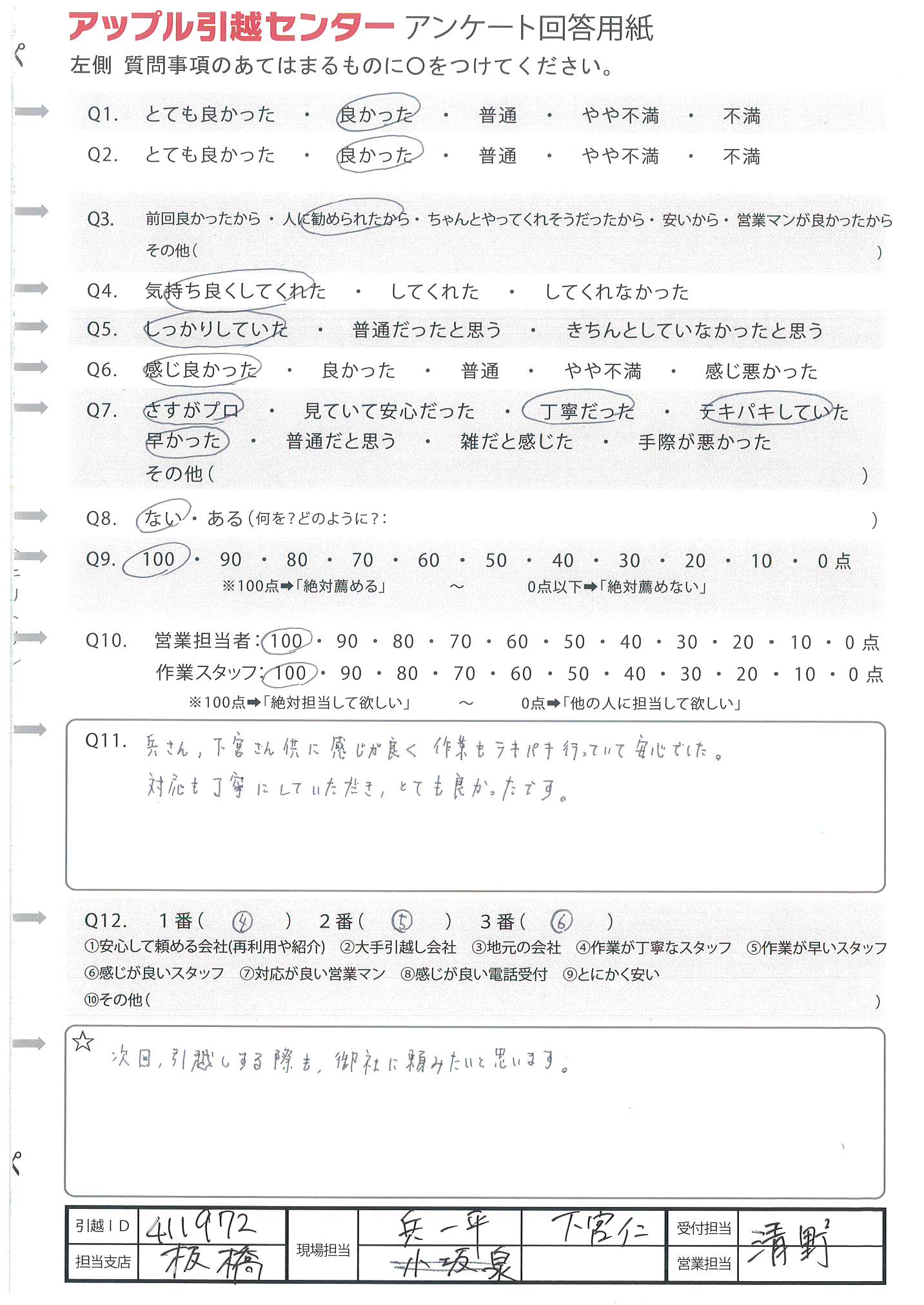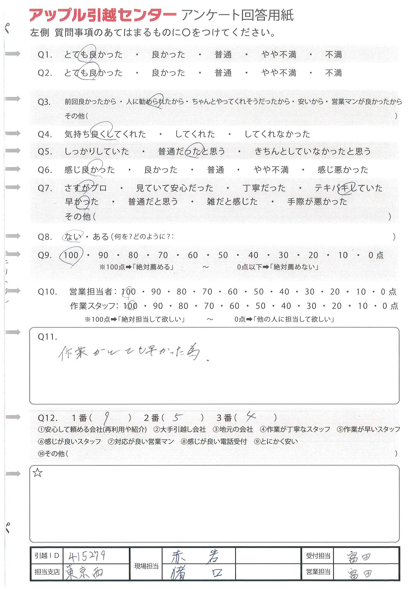 アップル引越センターでは、面映いお褒めの言葉も、胸に突き刺さるお叱りのコメントも、