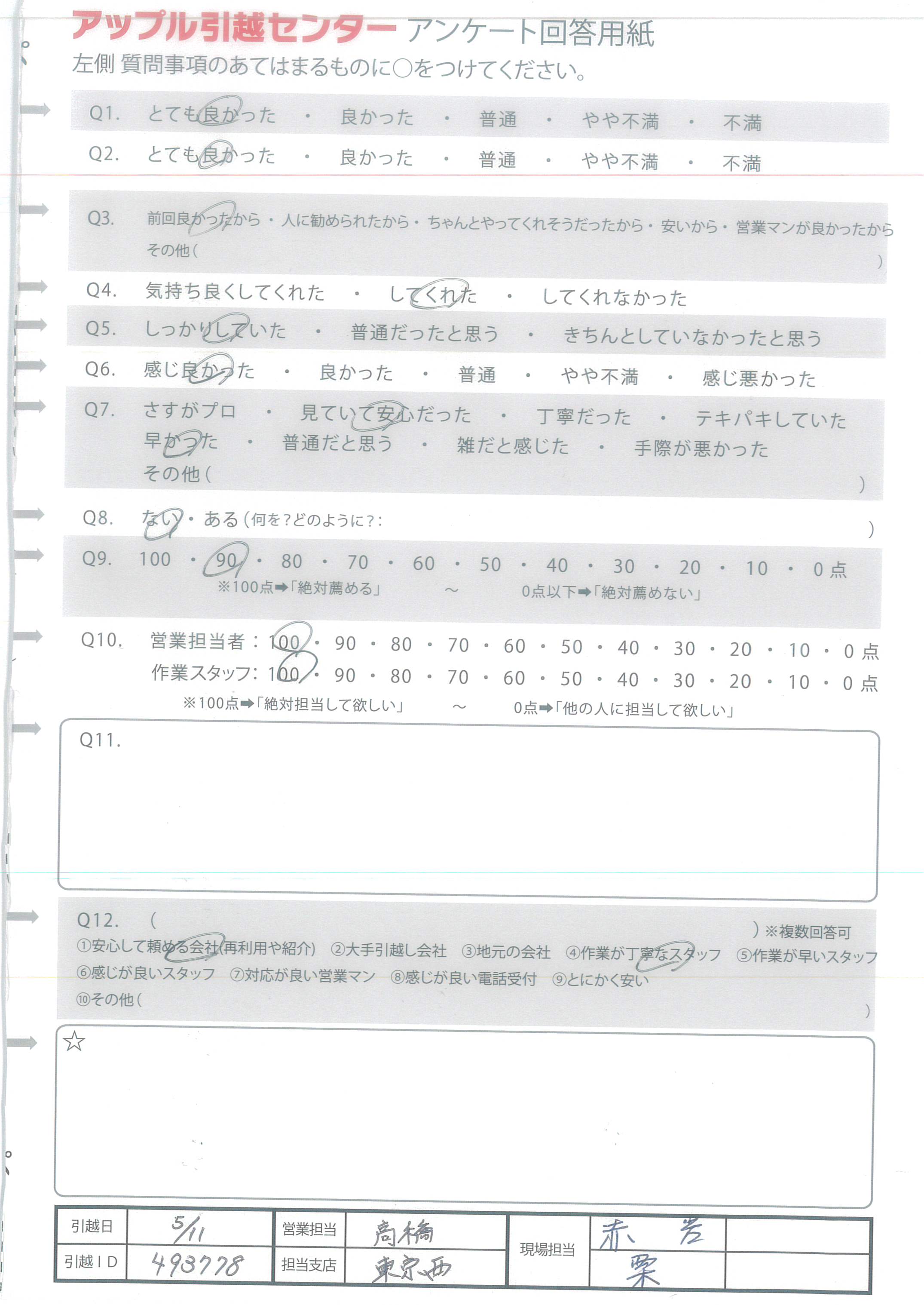 A.気持ち良く引越し出来ました。ありがとうございます。