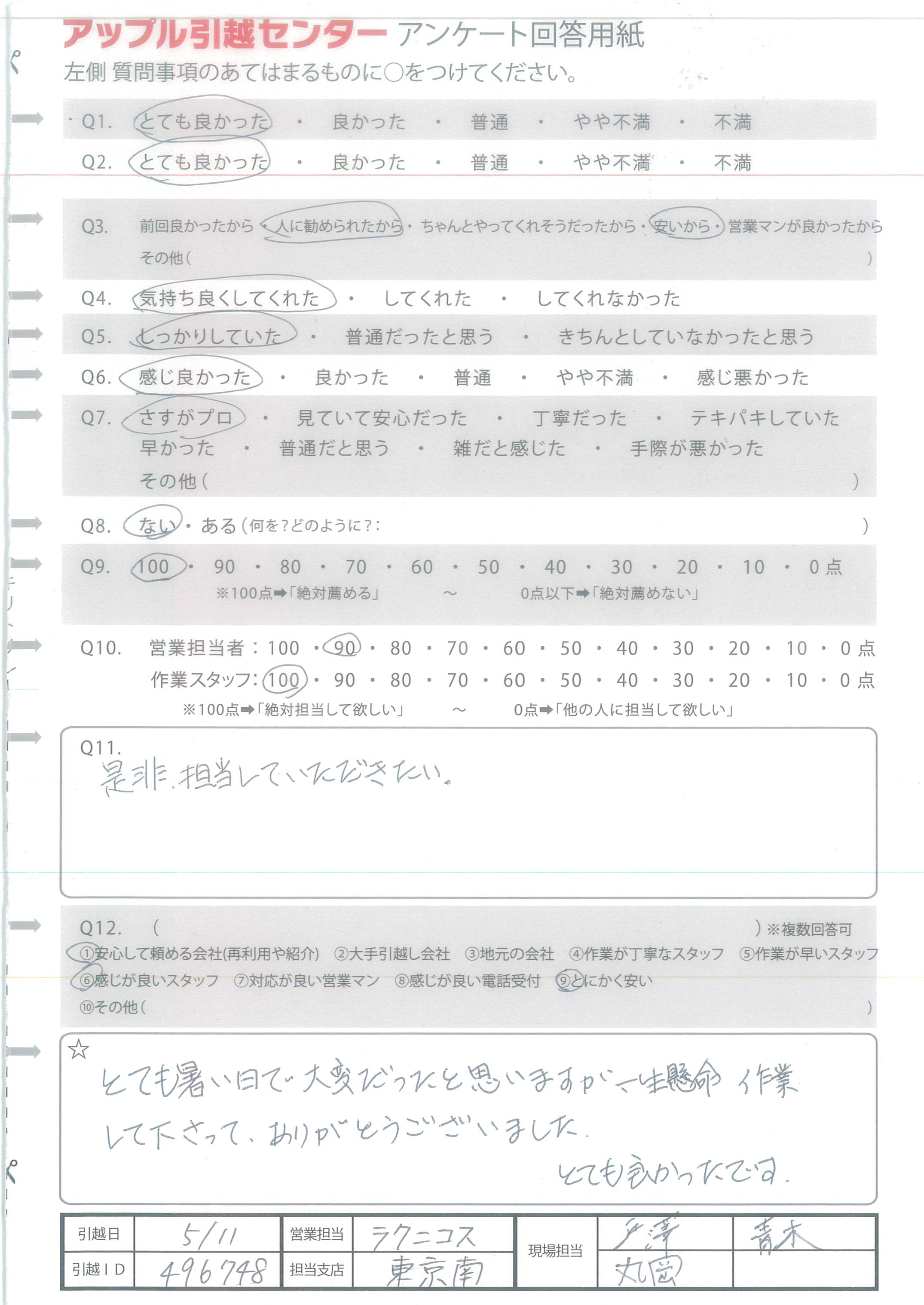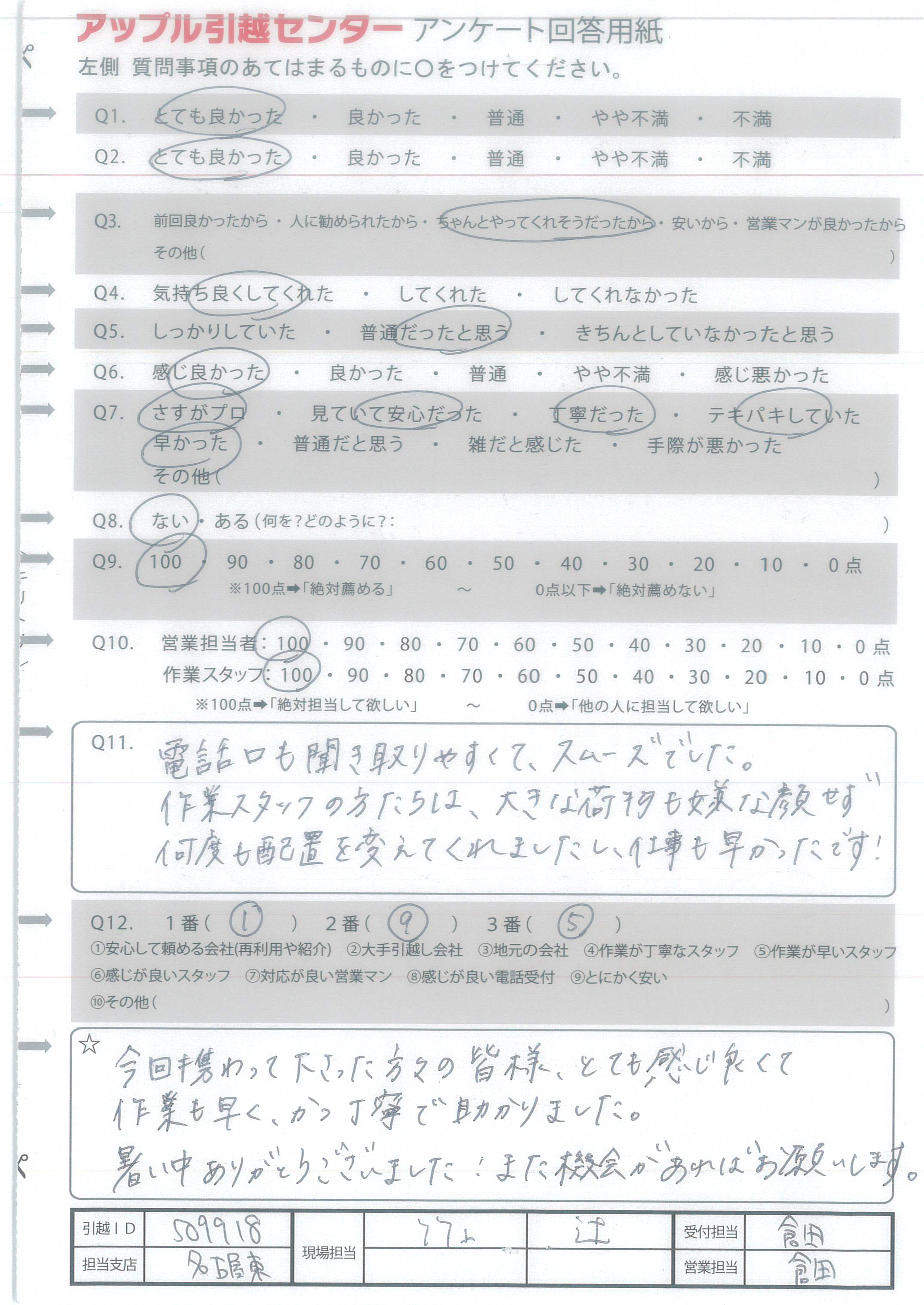 アップル引越センターでは、面映いお褒めの言葉も、胸に突き刺さるお叱りのコメントも、