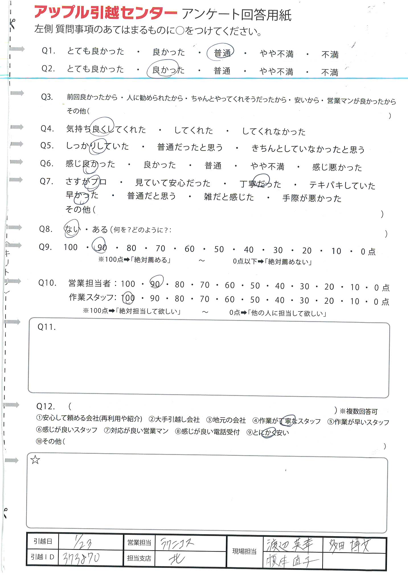 A.トラブル無く、無事、引越すことが出来ました。 ありがとうございました。