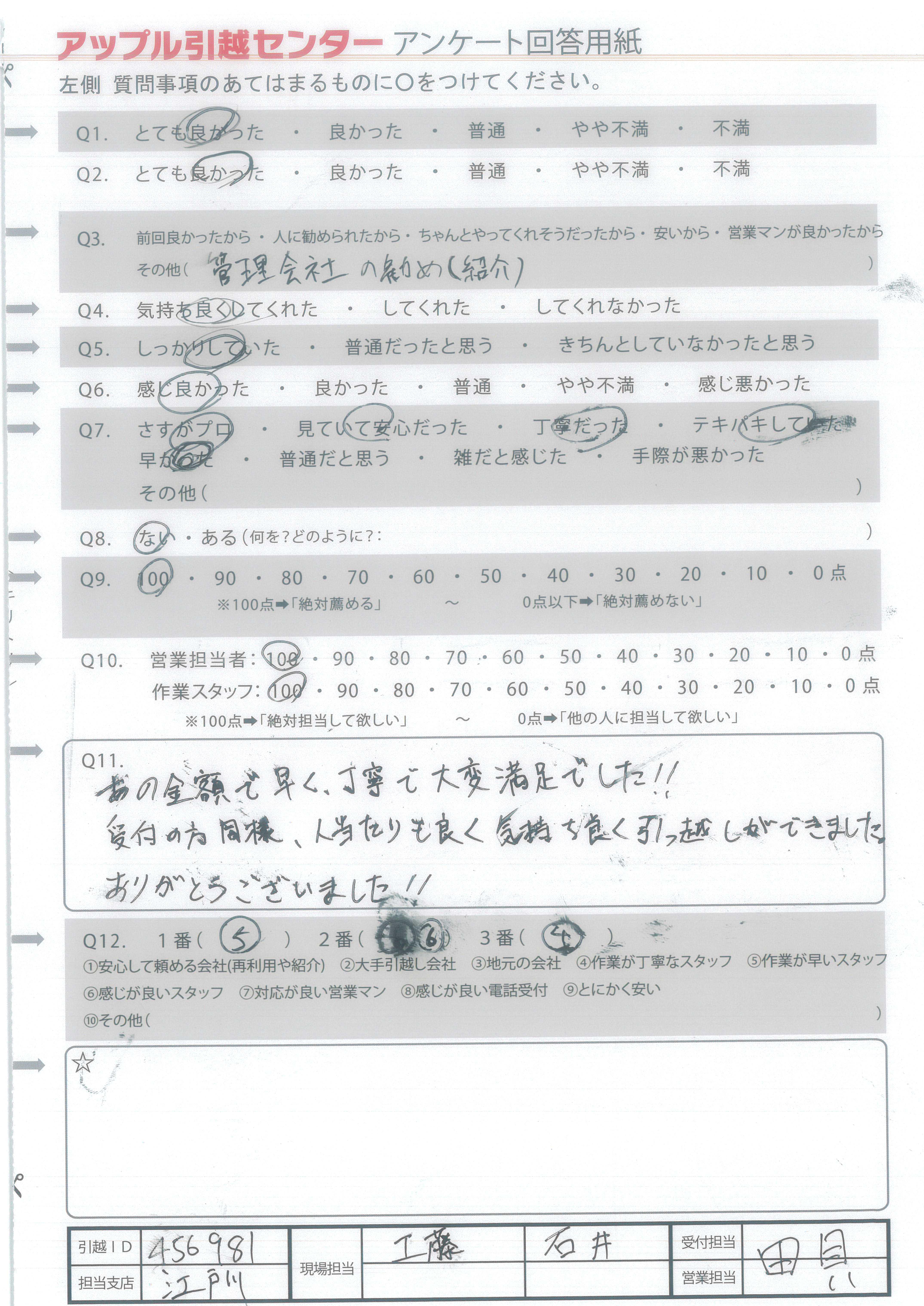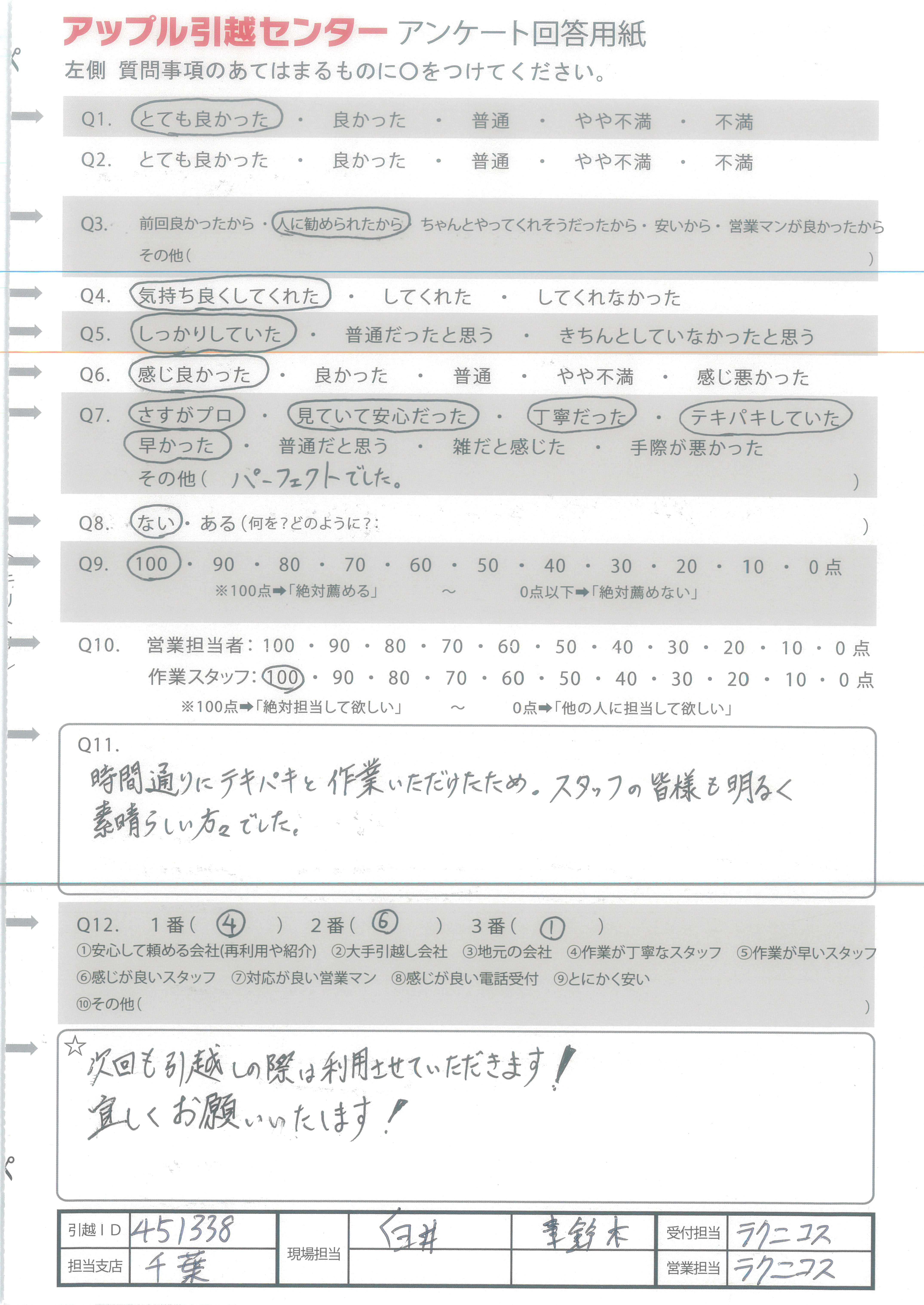 A.次回も引越しの際は利用させていただきます! 宜しくお願いいたします!