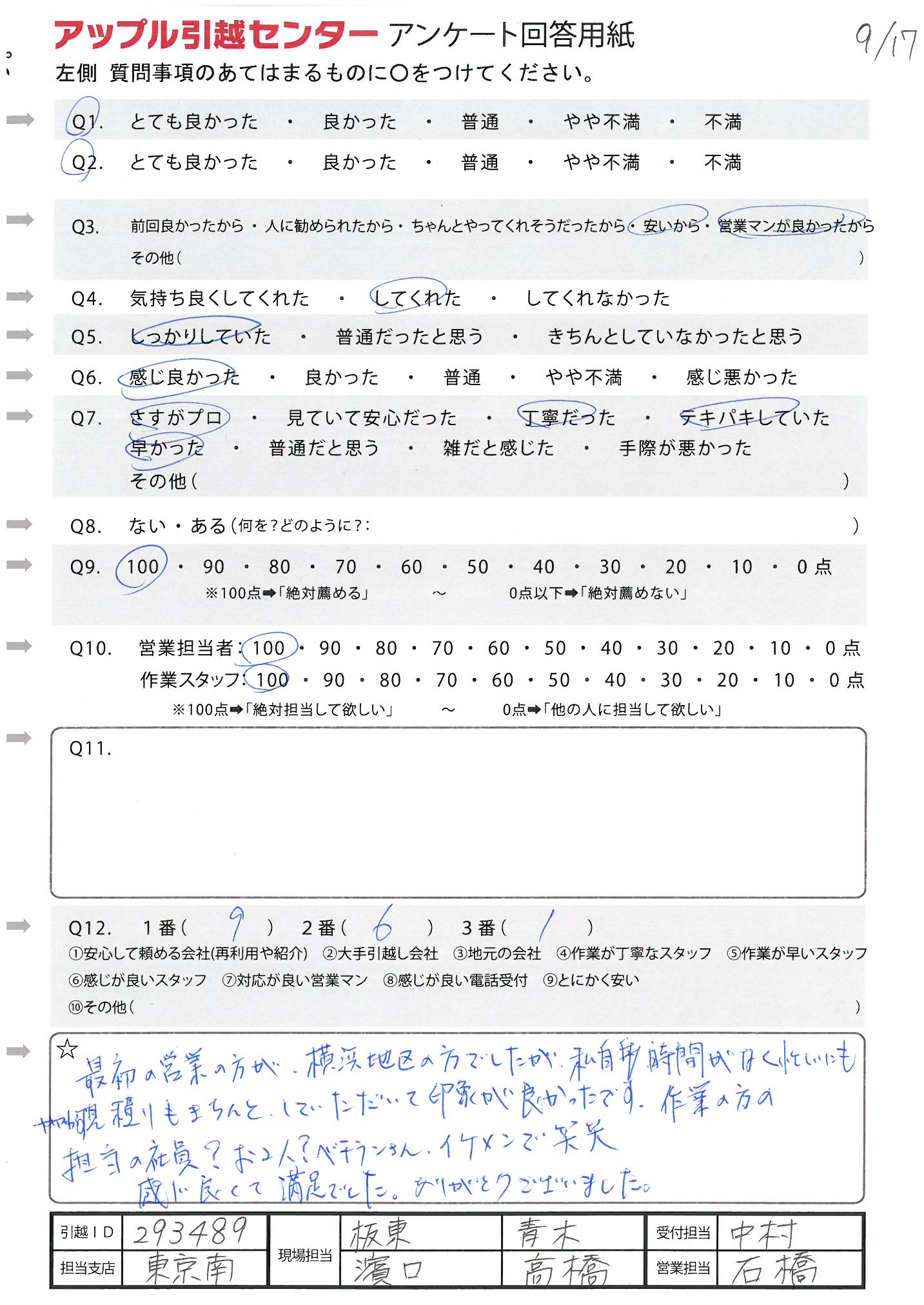引越し日:2019年09月17日 エリア:神奈川県横浜市港北区