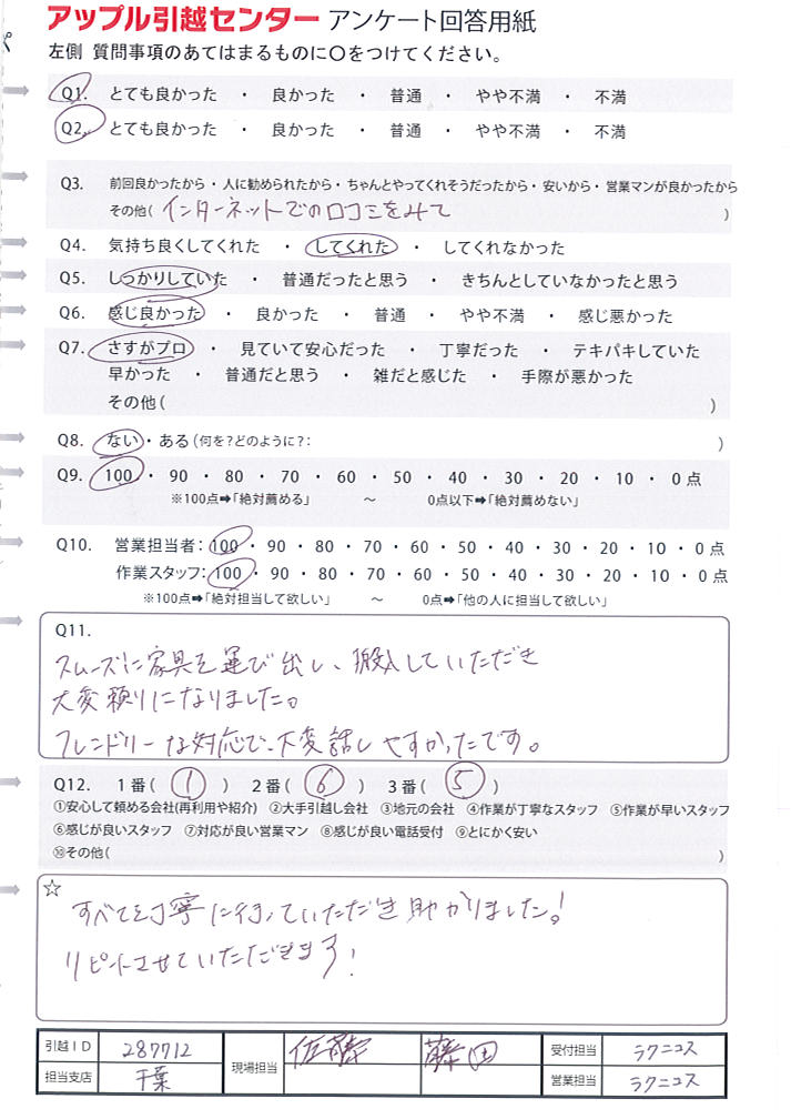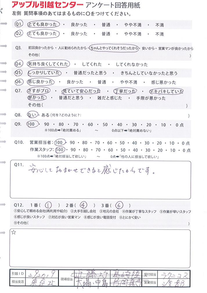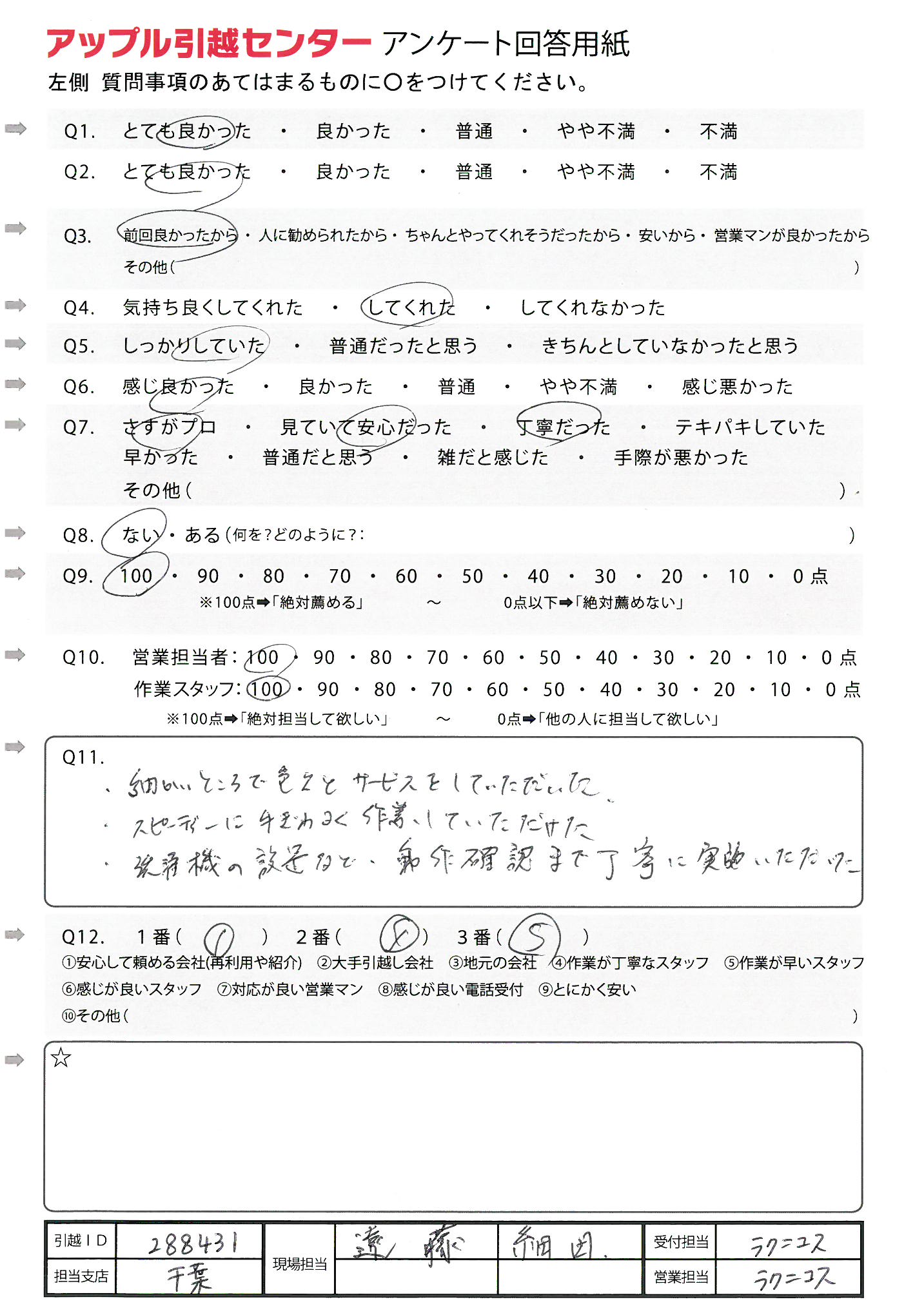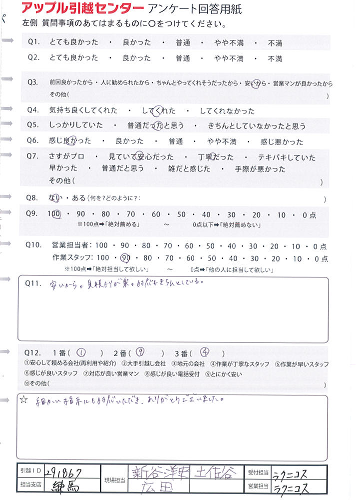 アップル引越センターでは、面映いお褒めの言葉も、胸に突き刺さるお叱りのコメントも、